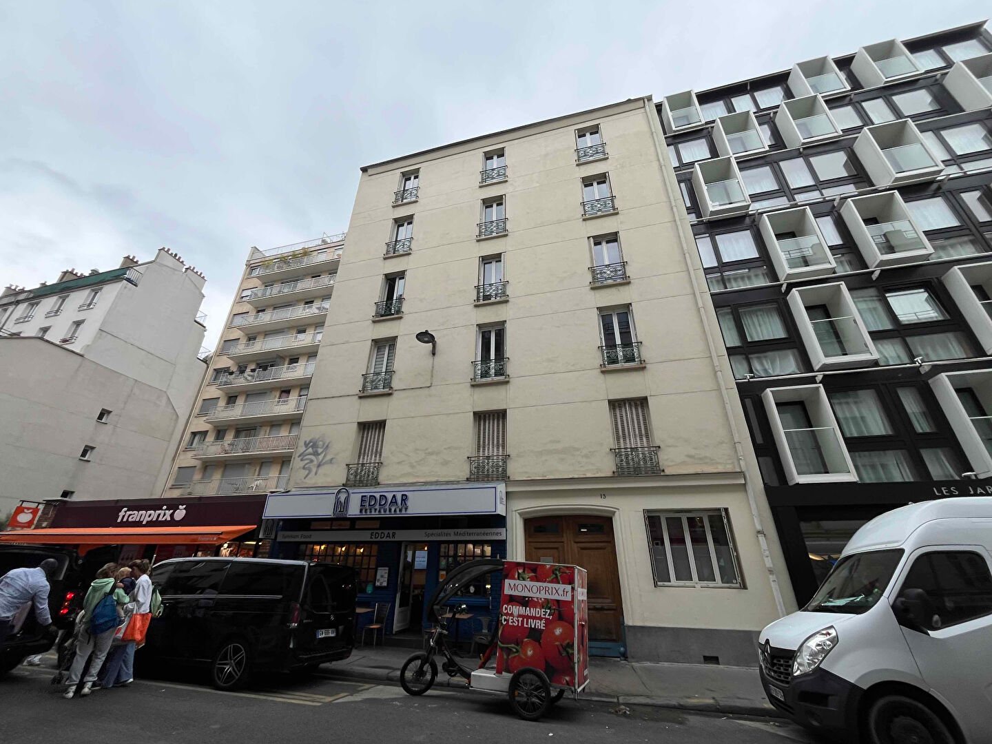 Rue Mademoiselle, immeuble ancien, 3ème étage sans ascenseur, appartement refait à neuf (peinture) composé d'une entrée, séjour, cuisine ouverte, salle d'eau, wc séparés, deux chambres, placards, chauffage individuel électrique