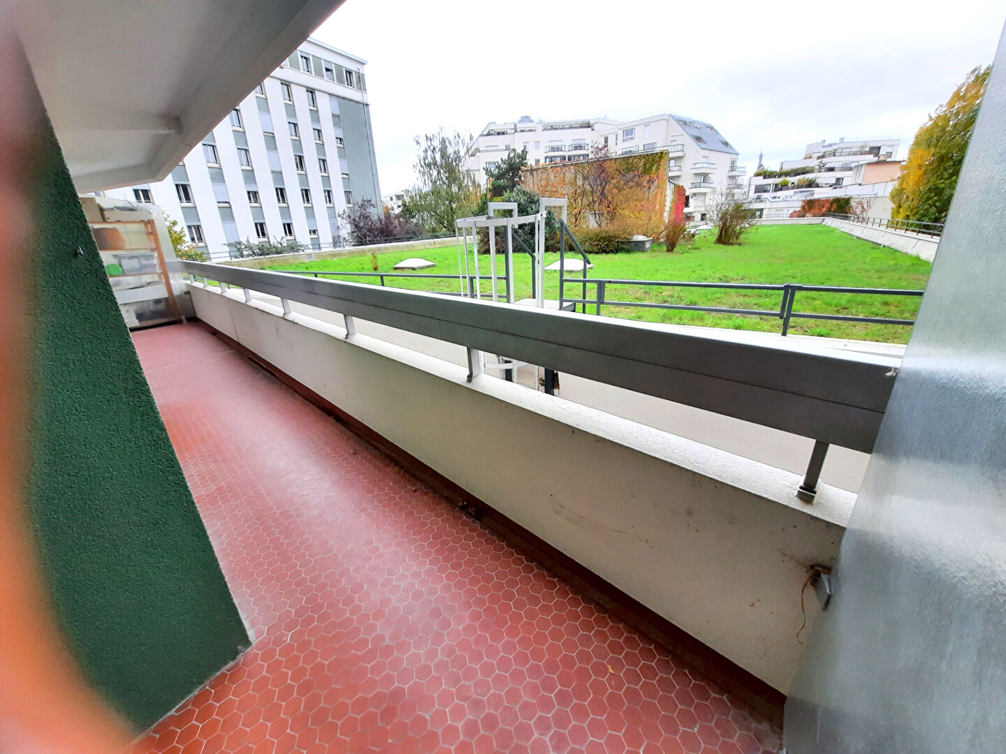 Rue du Cotentin. Dans un bel immeuble récent ravalé, au 1er étage ascenseur avec vue dégagée sur verdure, calme et agréable 2 Pièces de 50,36m2 repeint à neuf + 12,10m2 de balcon/ terrasse. Il se compose d'un beau séjour ouvert sur la cuisine et avec baie vitrée sur le balcon terrasse sans vis à vis, d'une cuisine aménagée et semi-équipée, d'une chambre sur balcon/terrasse, d'une salle d'e bains attenante, de WC séparés, d'un vrai dressing et d'un petit placard. Chauffage coll