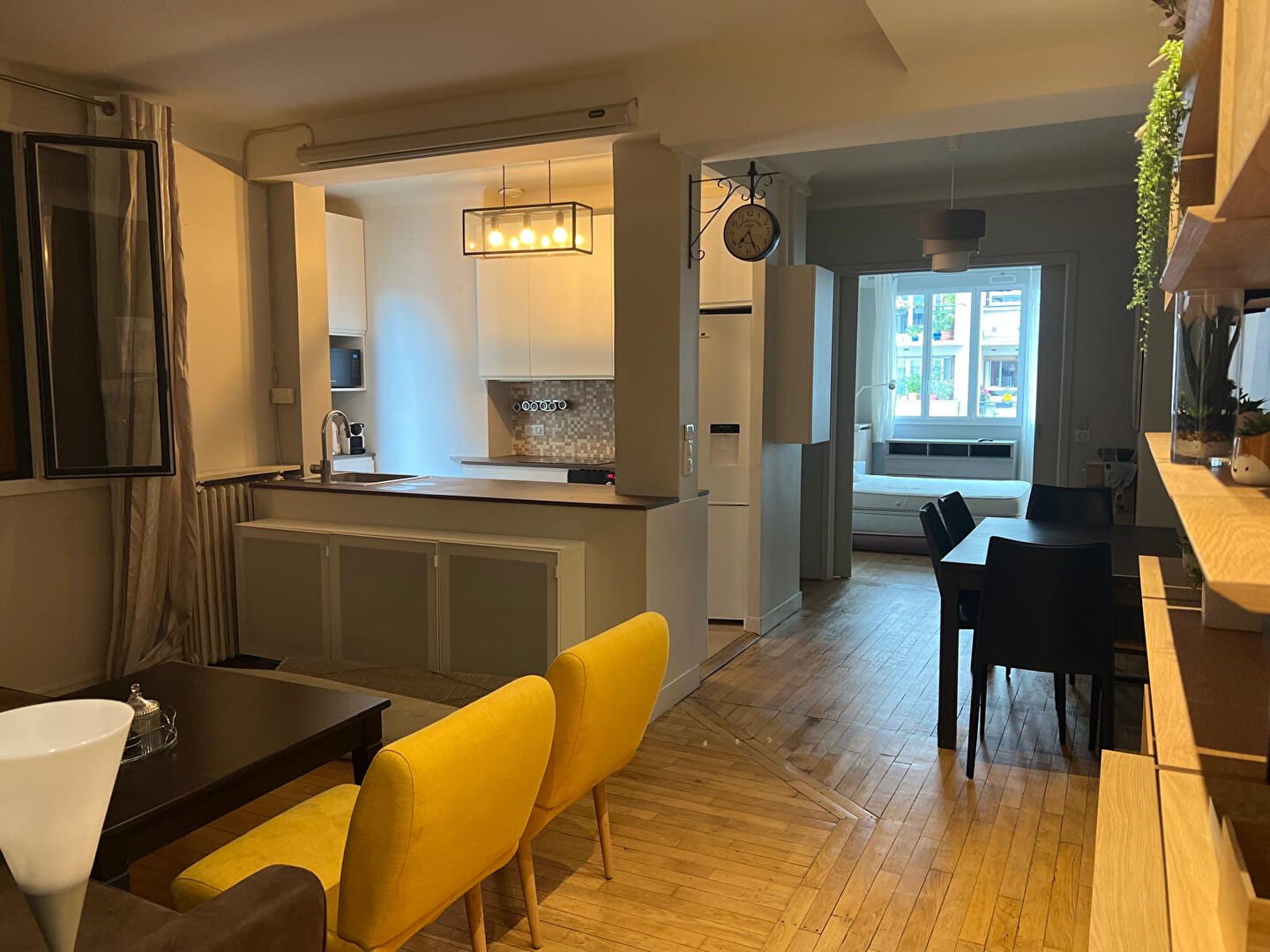 Paris 15ème, entre Boucicaut et Convention, dans une petite rue recherchée pour son calme, proche des commerces et des transports, dans un immeuble des années 1930, appartement de 2 pièces de 43.56m² au 1er étage avec ascenseur composé de : entrée avec penderie, pièce à vivre sans vis à vis, avec cuisine ouverte, chambre, salle d'eau avec WC, cave. Immeuble calme sécurisé avec gardien et digicode. Chauffage collectif, eau chaude individuelle. Loyer mensuel 1452 euros charges compri