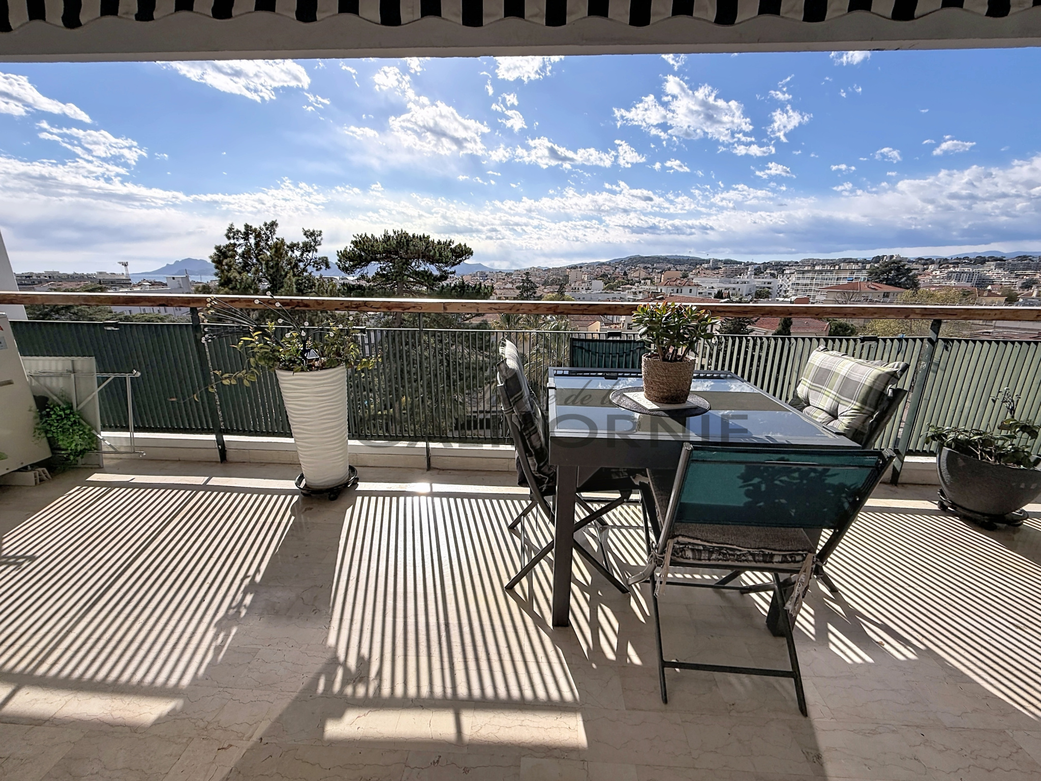 co-EXCLUSIVITE, l'agence de la Californie vous propose dans une résidence recherchée, magnifique appartement traversant de 106,22 m2L.C., en étage élevé, 29 m2 de terrasses, double séjour de 45 m2, vue dégagée aperçu mer, parking, box fermé, cave.