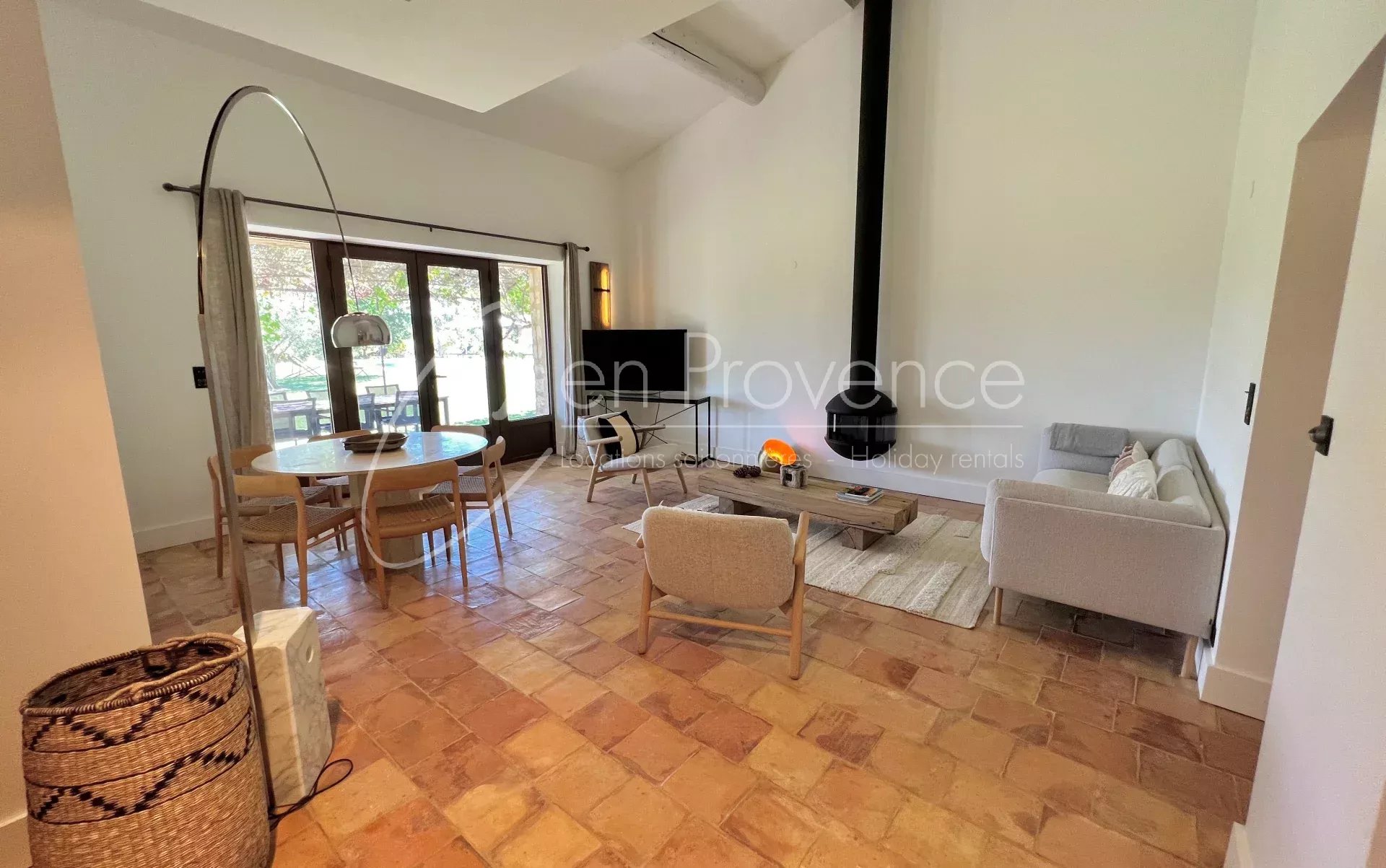 Chaque maison bénéficie de sa propre terrasse privative mais la propriété dispose également proche de la piscine d’une grande terrasse ombragée avec un salon, espace idéal pour partager des moments entre amis et en famille.