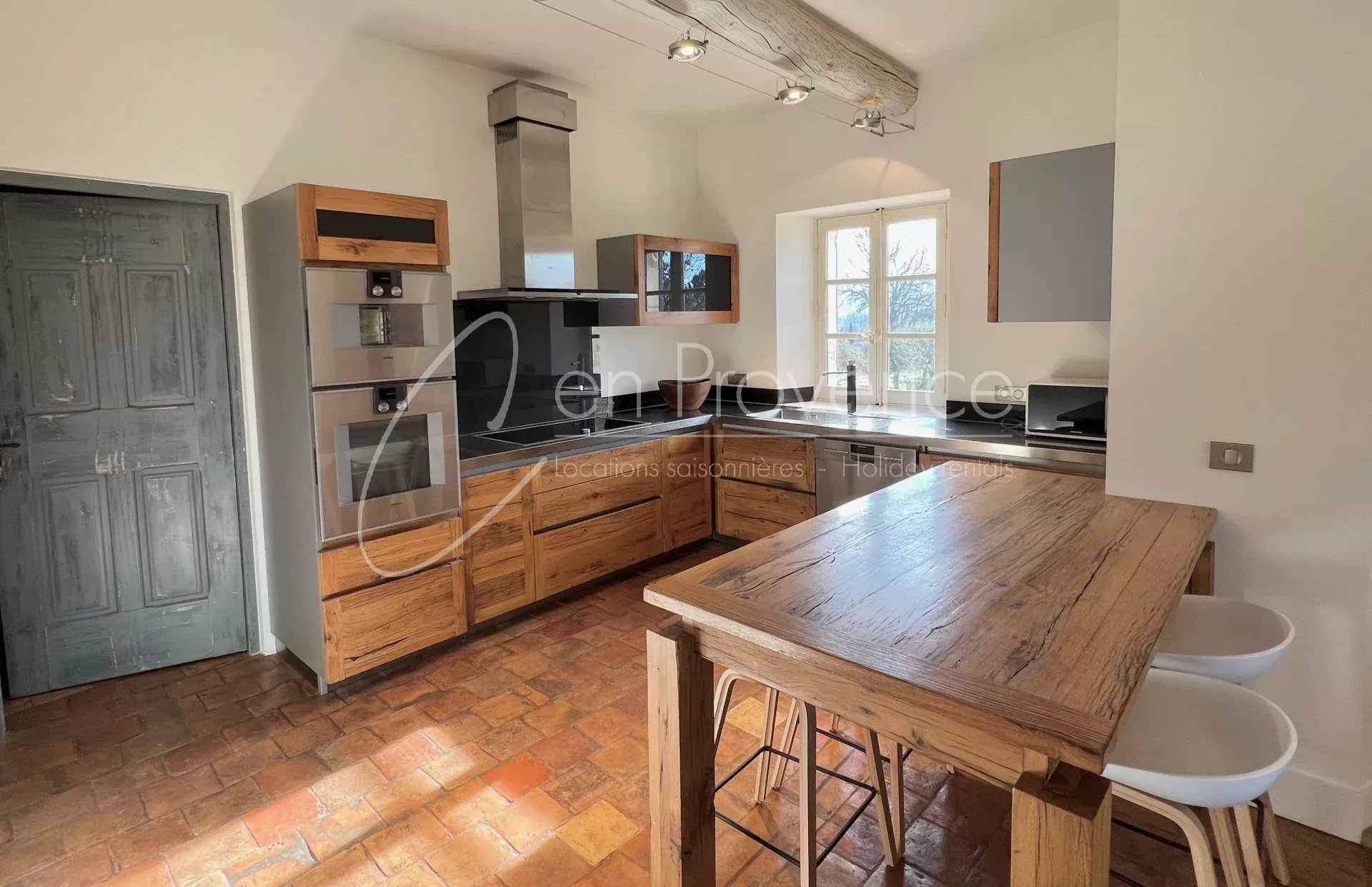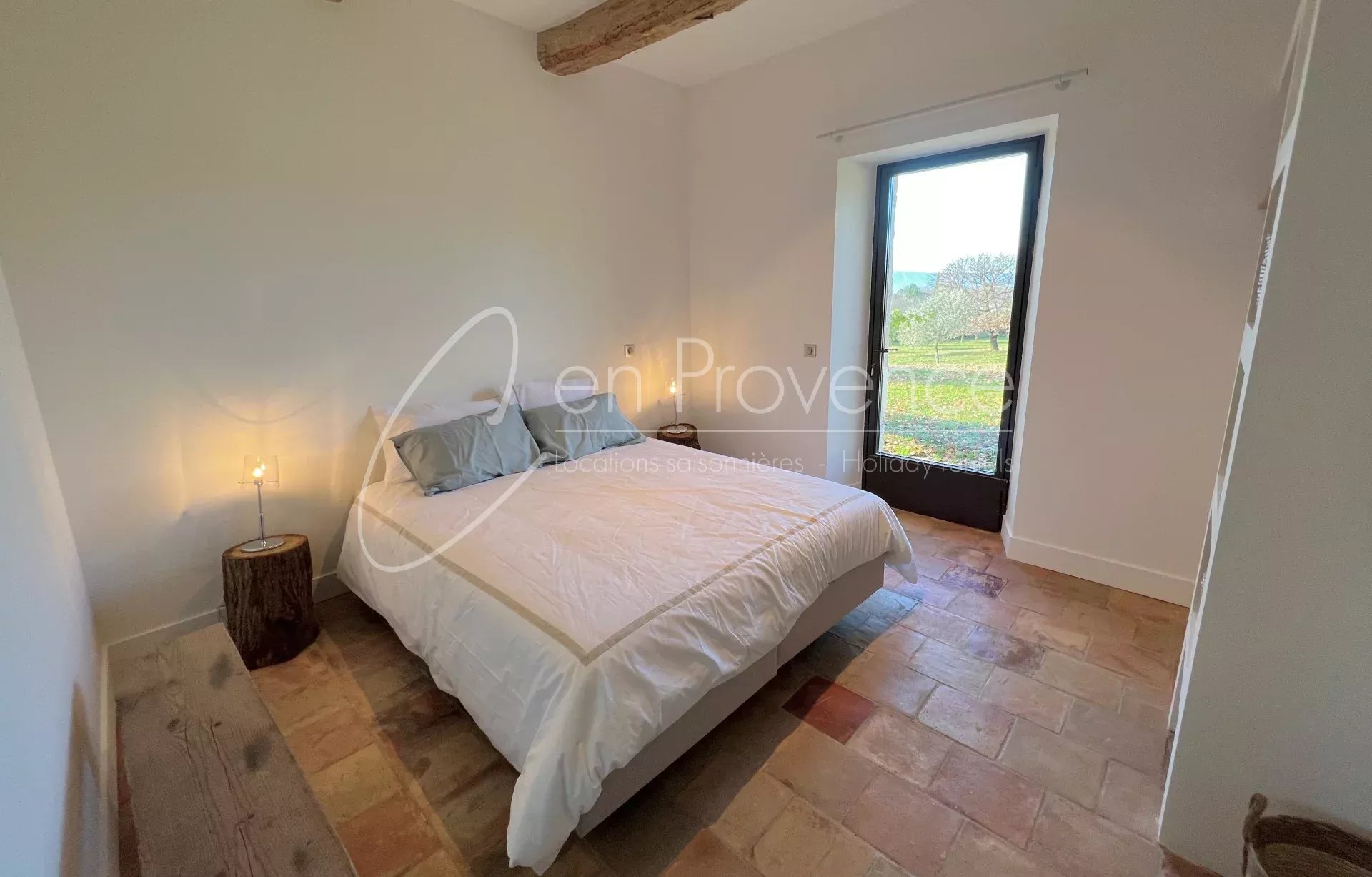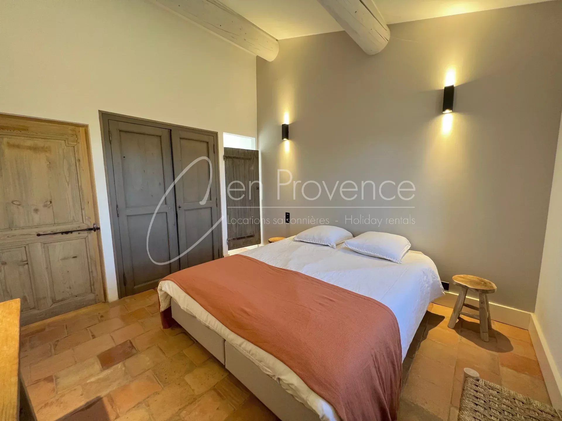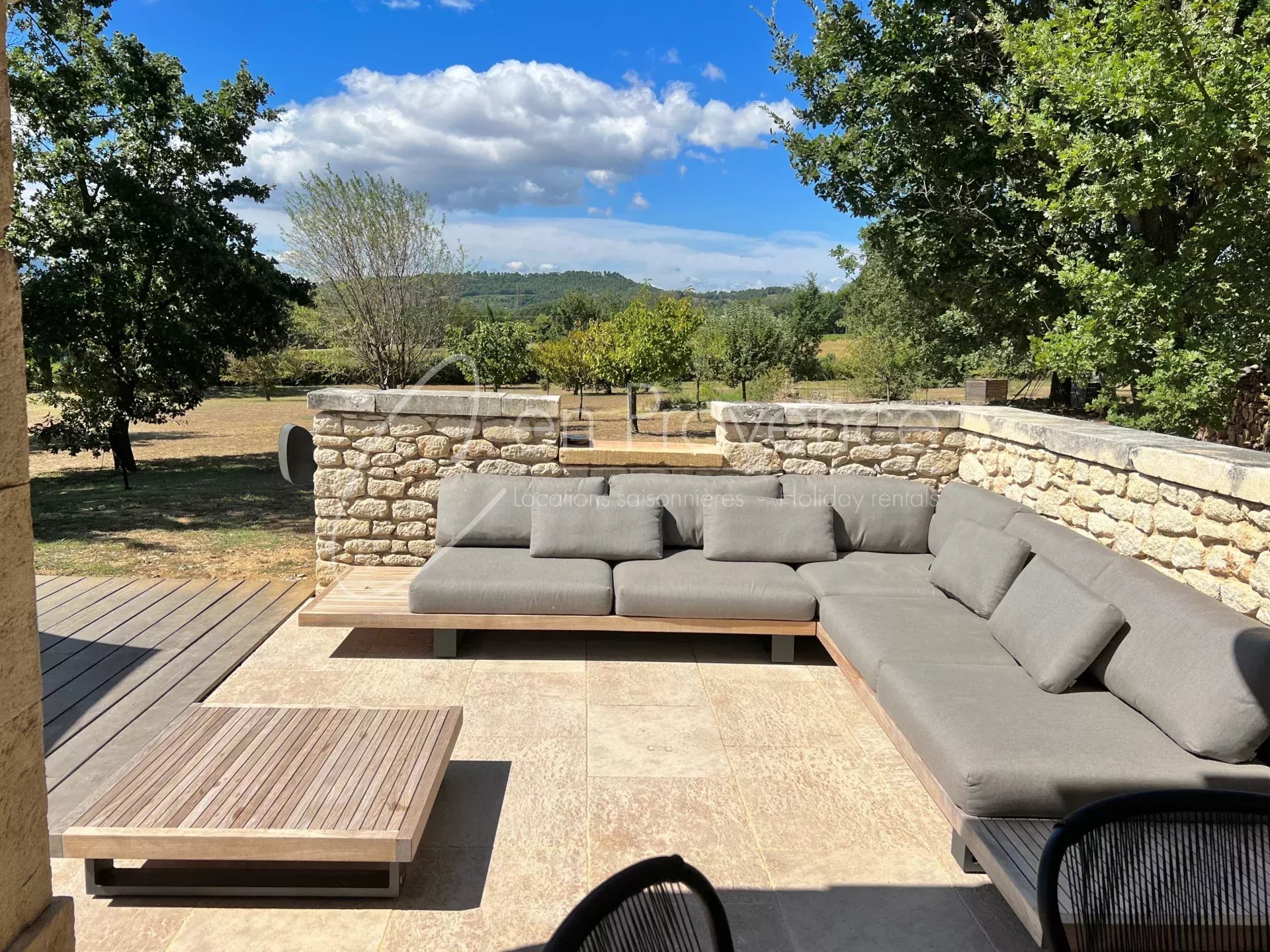 Face au Luberon, en campagne bordé de vignes, cet ancien mas en pierre, récemment rénové, se trouve proche des villages perchés de Roussillon, Bonnieux et Lacoste.