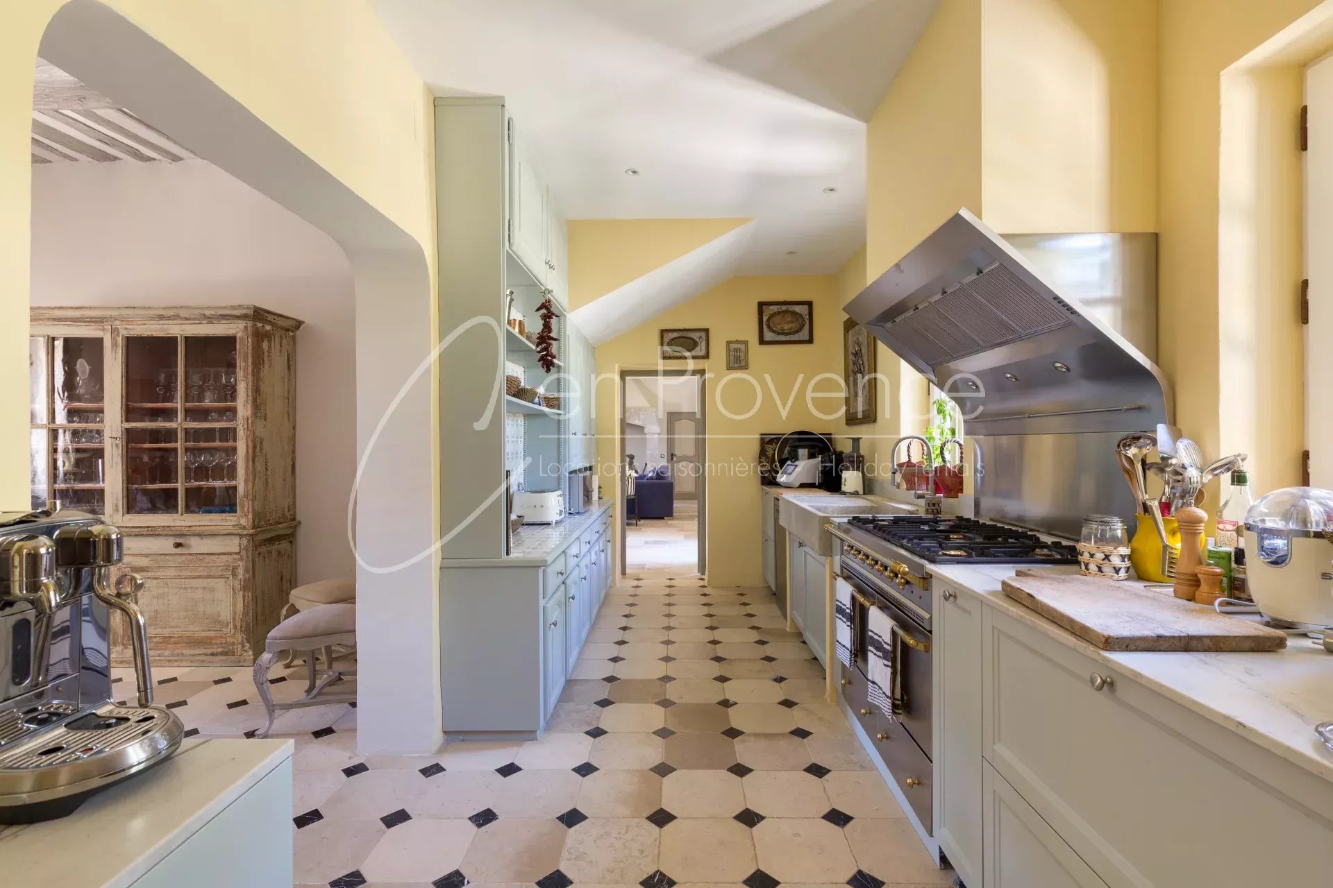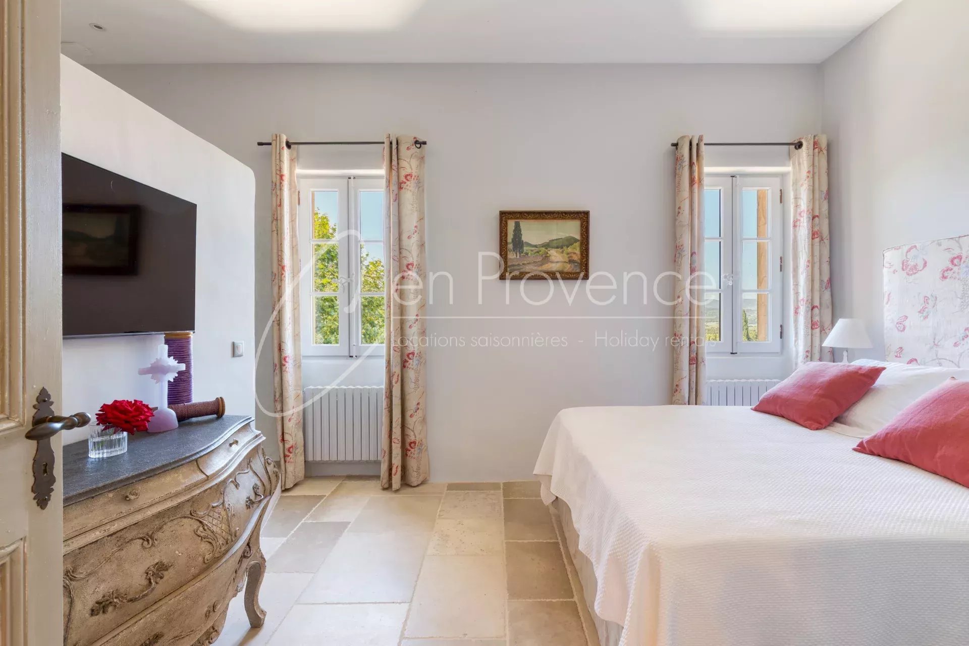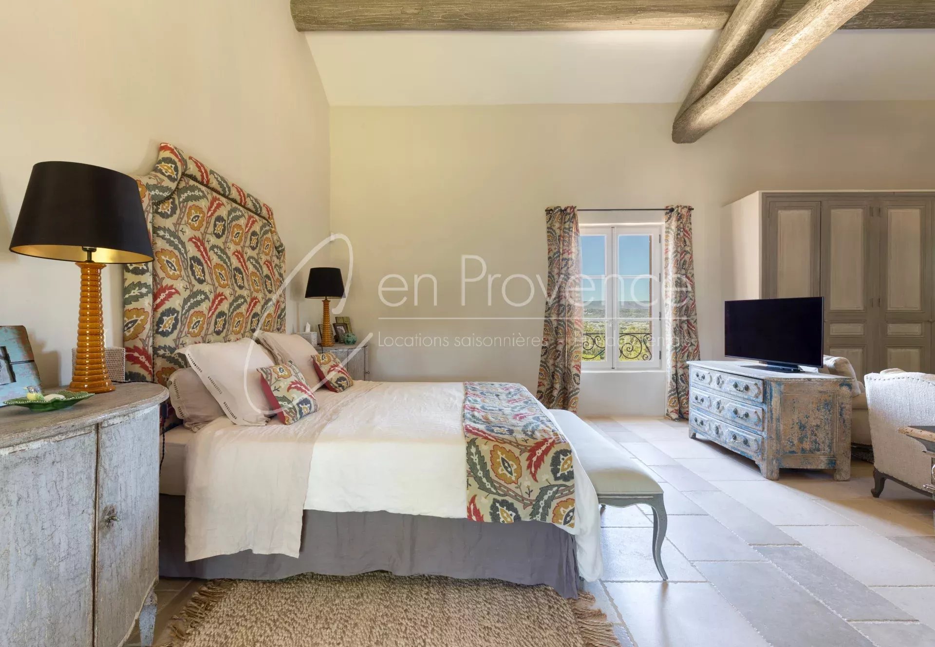 Face au Luberon, proche de Bonnieux et Roussillon, cet ancien mas rénové est le lieu de vacances idéal pour se détendre et profiter de la beauté de la Provence. Rénovée avec raffinement et des matériaux de qualité,, une belle piscine, un pool house et un jardin paysager, ce havre de paix dispose d’une superbe vue dégagée sur les vignes, la vallée et Bonnieux, village perché du triangle d’or du Luberon. La propriété peut accueillir jusqu'à dix personnes dans cinq chambres climatisées avec salle de bains ensuite. 5 chambres climatisées - 5 salles de bain - 10 personnes - piscine - Vue Luberon - Bonnieux