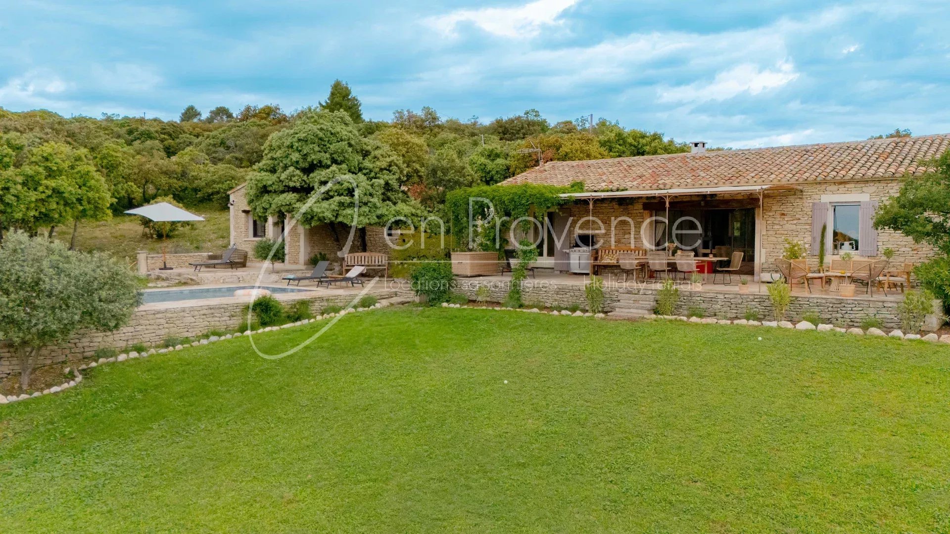 Cette belle villa en pierre typique de Gordes peut accueillir jusqu'à 8 personnes dans 4 chambres et ses 3 salles de bain. Climatisation dans les chambres, avec une piscine, une belle terrasse ombragée et vue panoramique sur Le Luberon et les Alpilles, cette location de vacances est située à proximité du village primé de Gordes. Villa de plain pied à 1,5km de Gordes - Luberon - Vue sur les Alpilles - Au calme - Maison de vacances avec piscine.