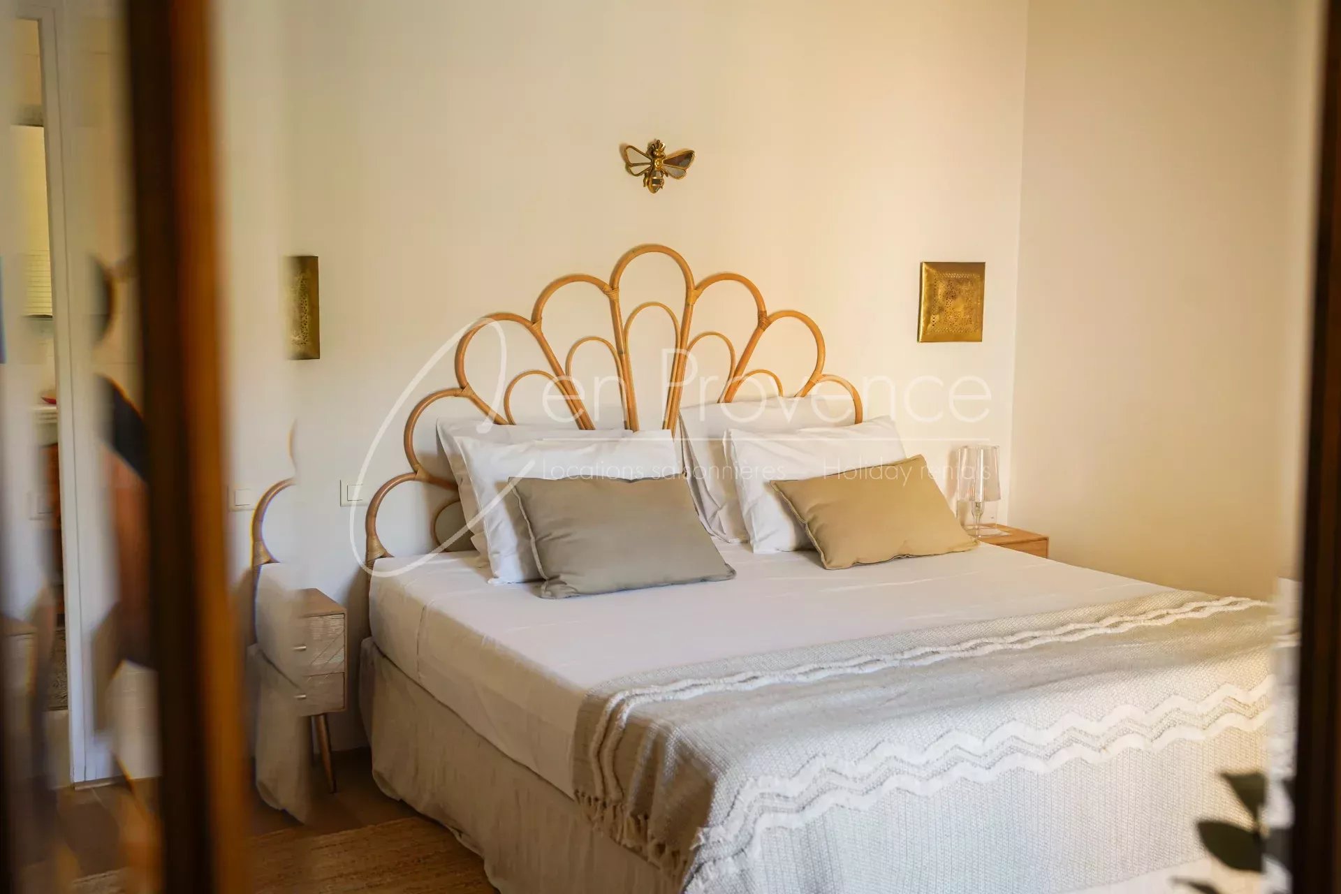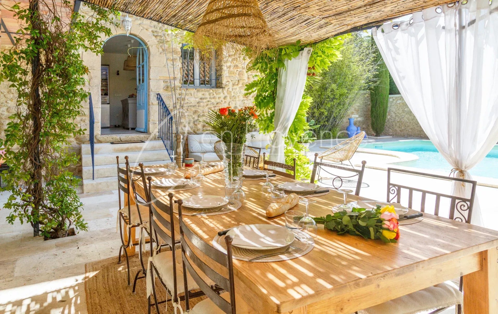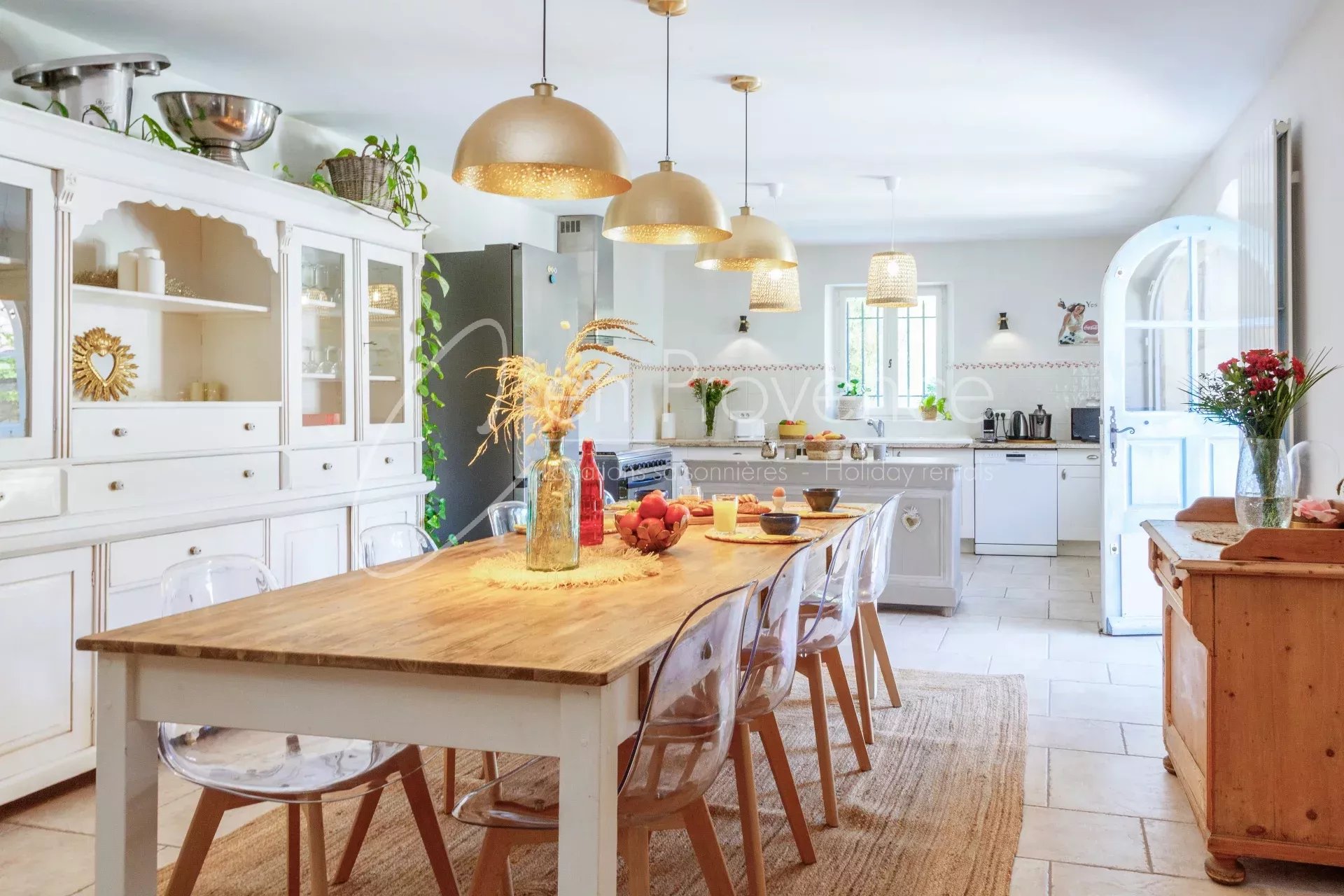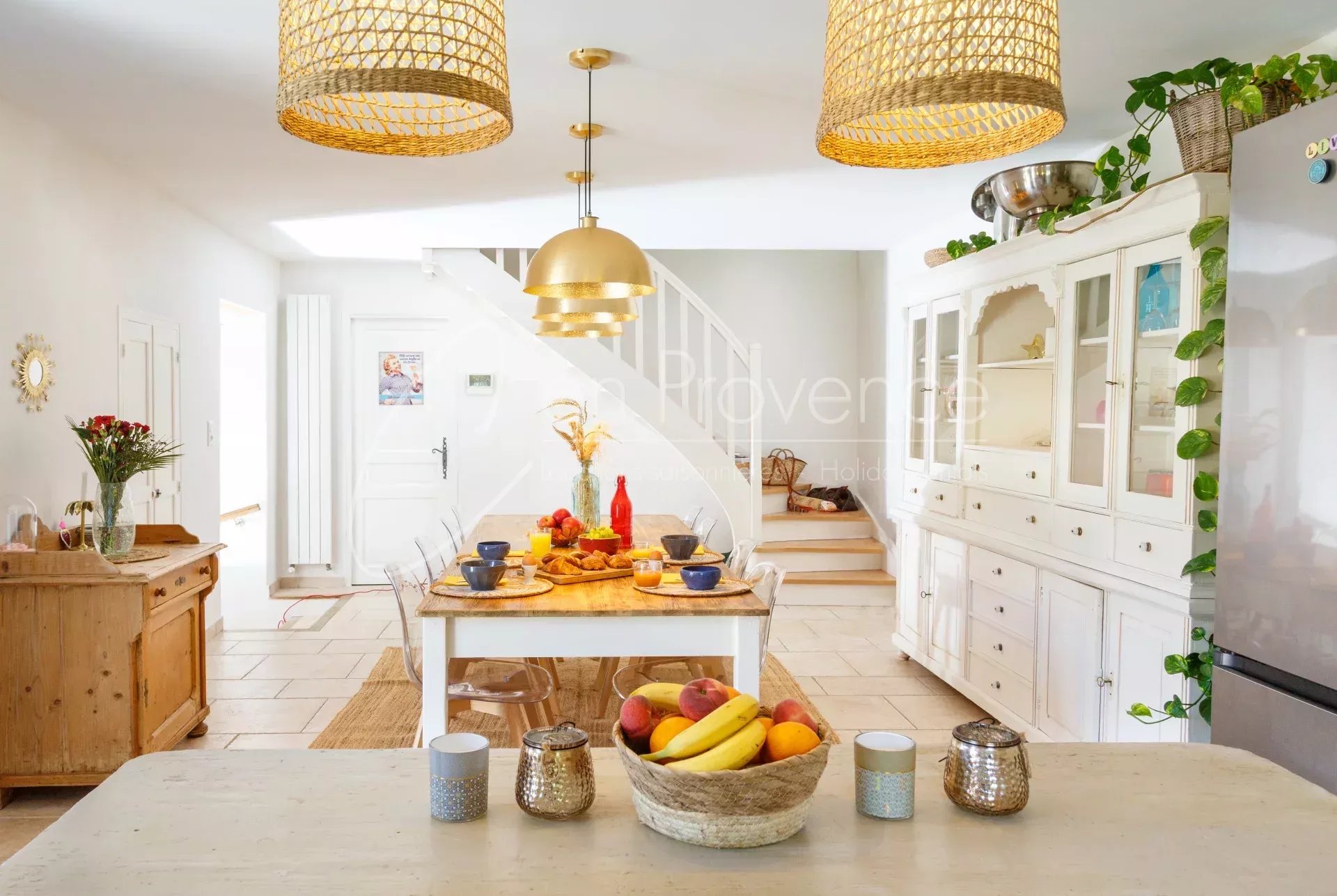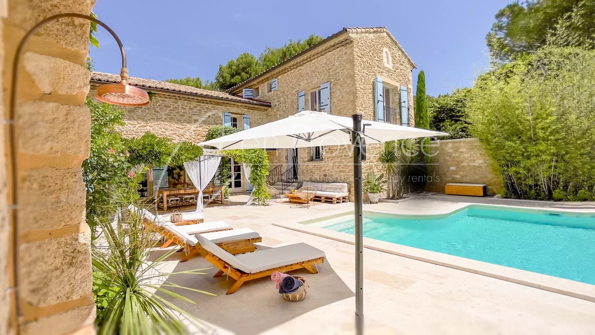 Les intérieurs d’une surface de 230 m², vous offrent des espaces de vies lumineux grâce à leur orientation plein-sud. D’une capacité de 10 personnes, le mas se compose de 5 chambres et de 3 salles de bains pour créer des espaces de nuits confortables, parfait pour un séjour en famille !