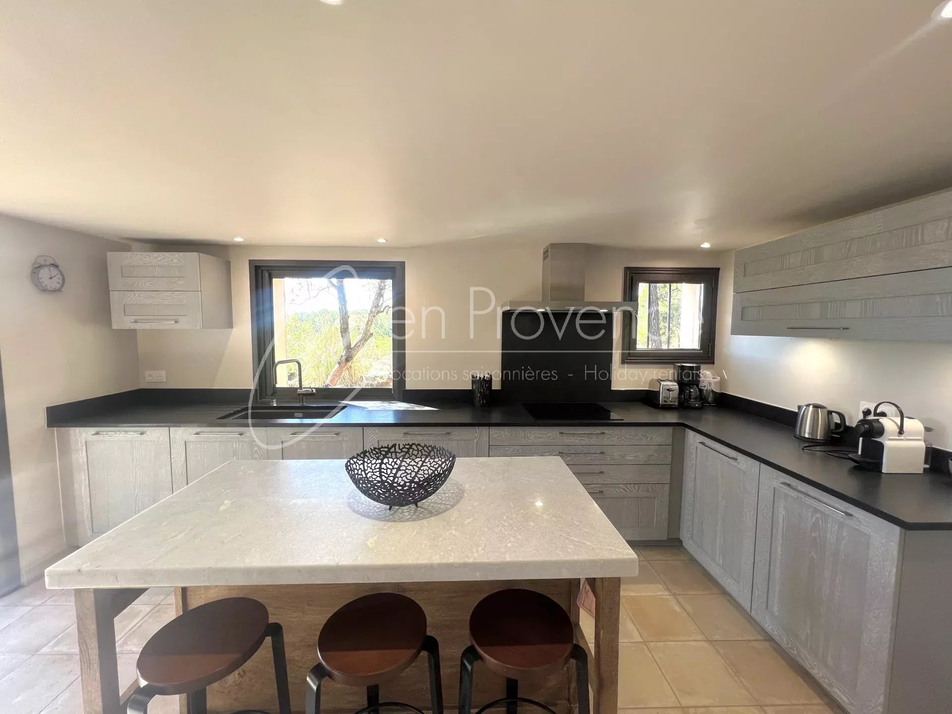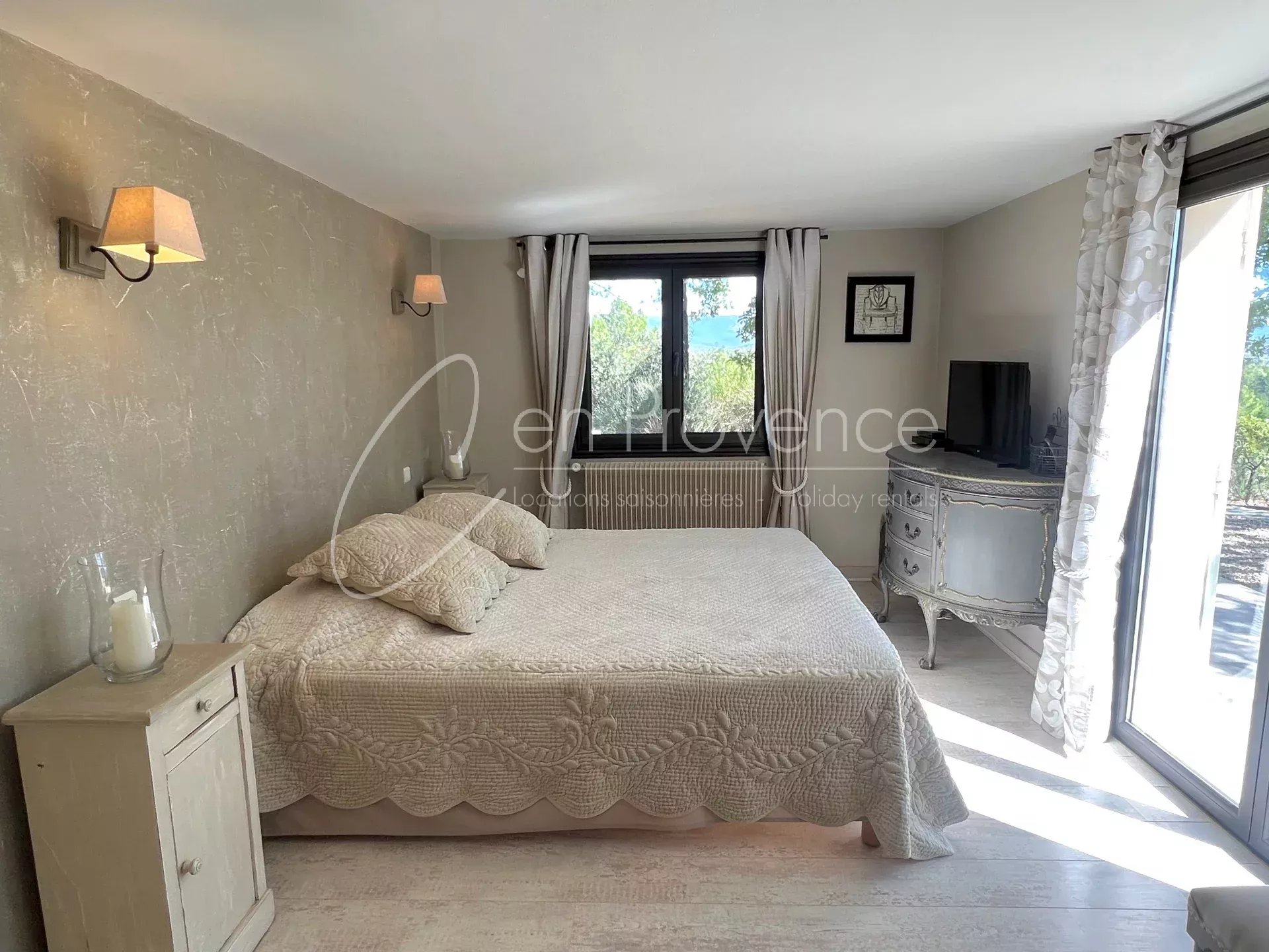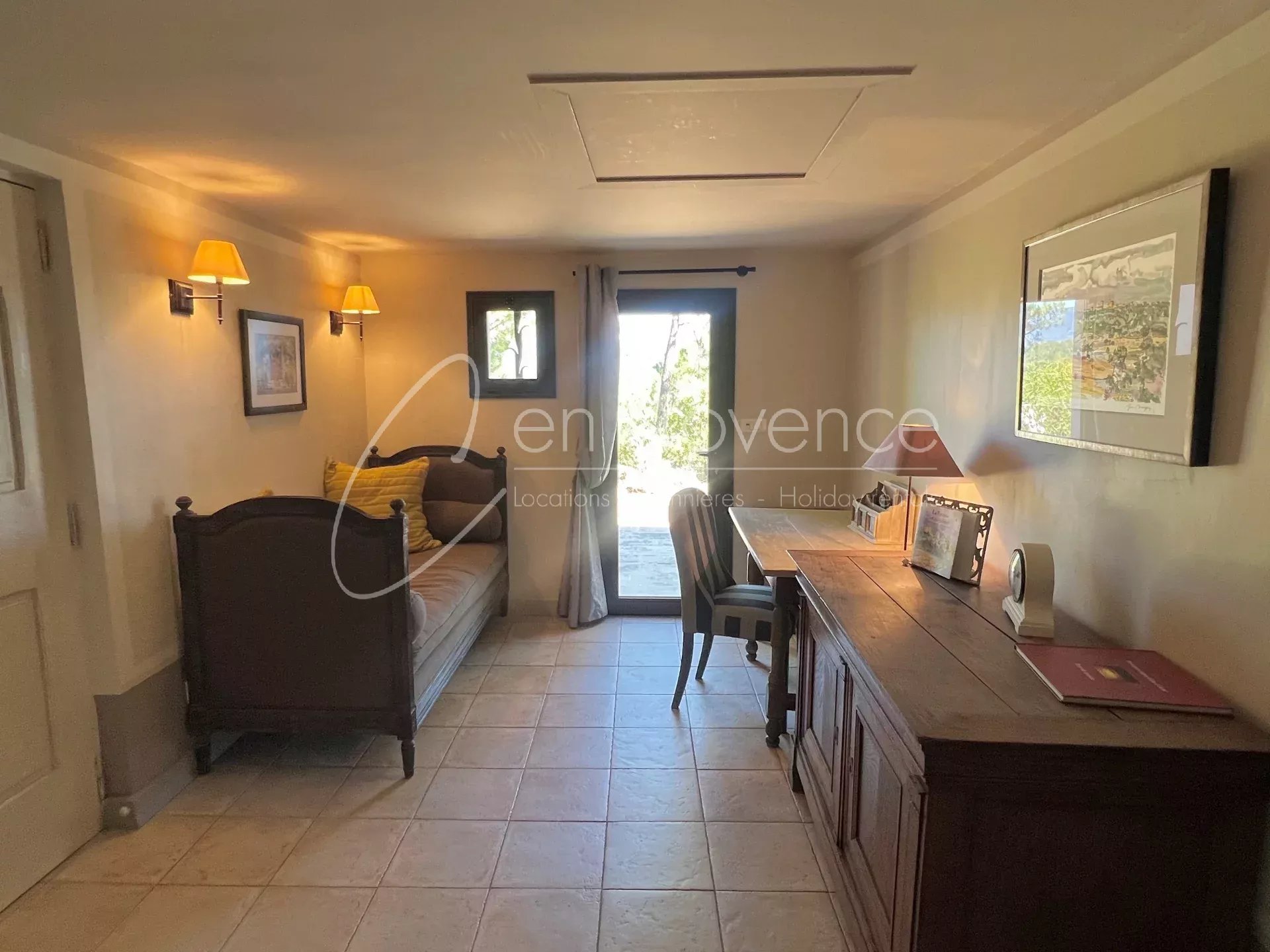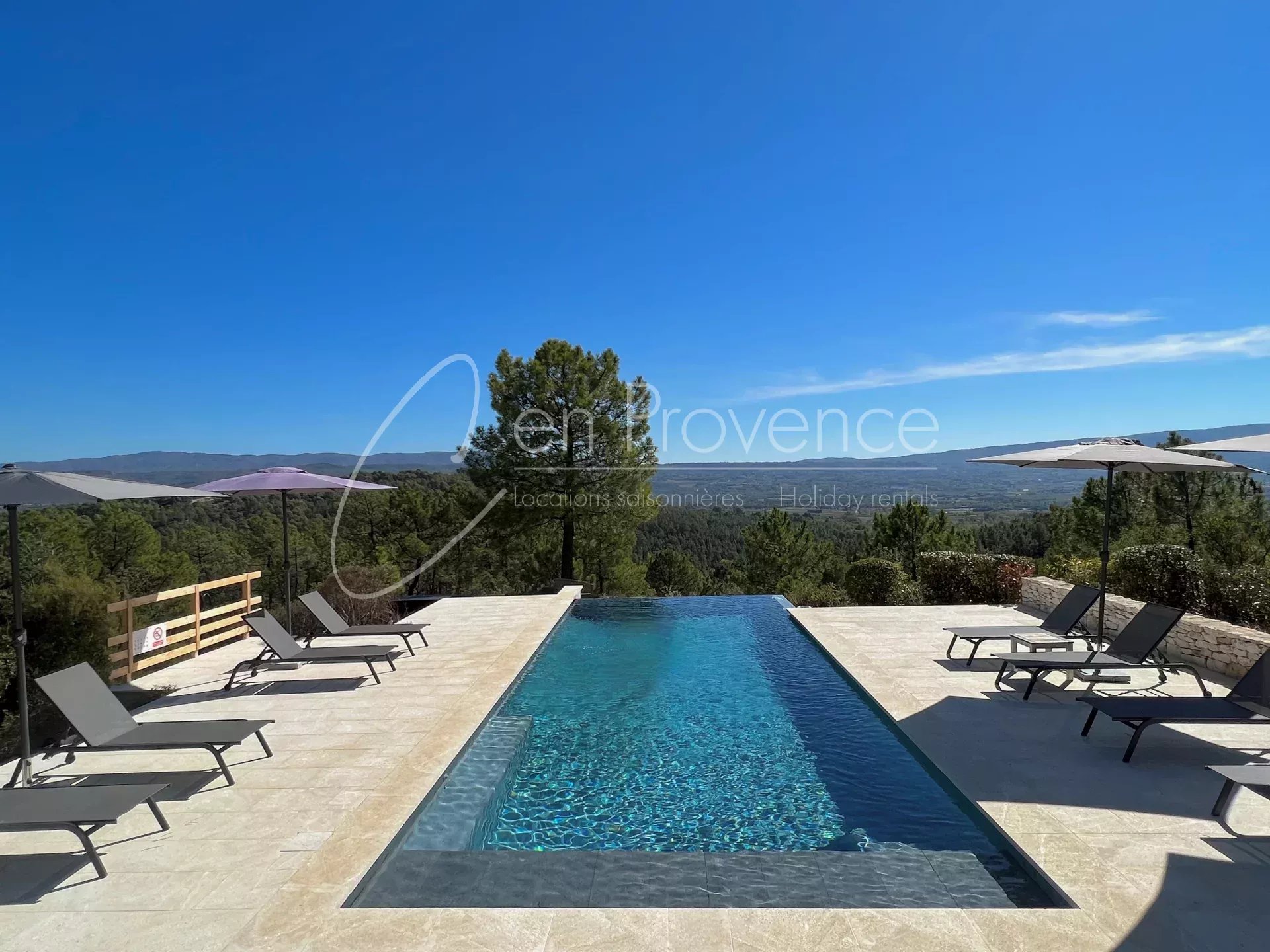 Avec une vue à couper le souffle sur le Luberon de Saignon à Lacoste et sur Bonnieux, villa de plain pied entièrement climatisée au calme avec quatre chambres ensuite pour huit personnes. Profitez de cette superbe piscine à débordement chauffée avec ses grandes plages et toujours de cette vue imprenable à toute heure sur le massif du Luberon. Proche du village de Roussillon cette maison de vacances est idéalement située pour découvrir les villages perchés du Luberon. La villa à louer, disponible toute l’année, propose 4 chambres climatisées avec 4 salles de bains pour 8 personnes.