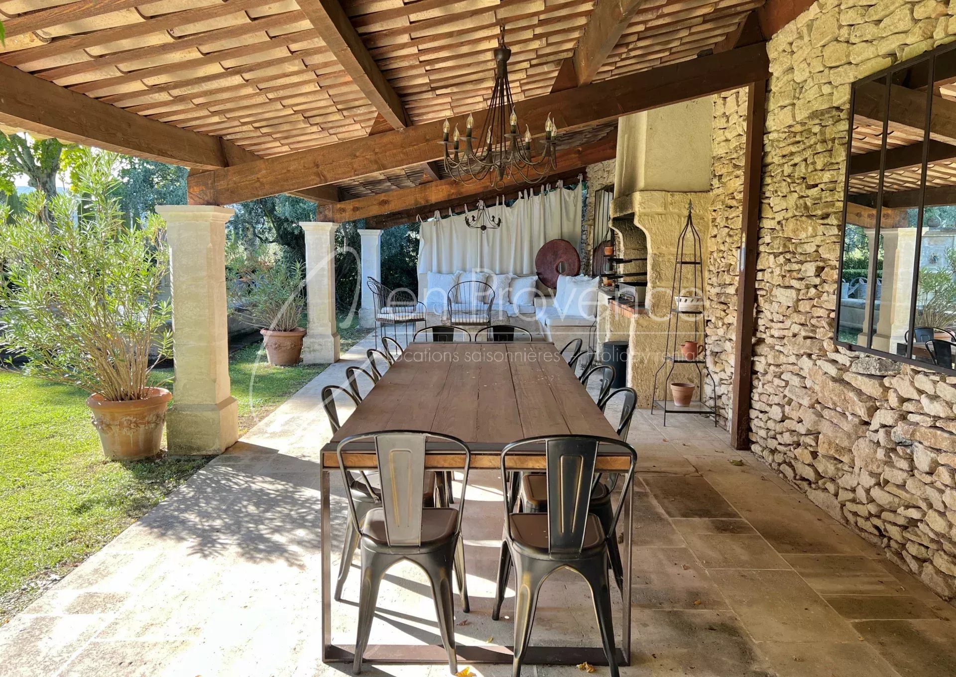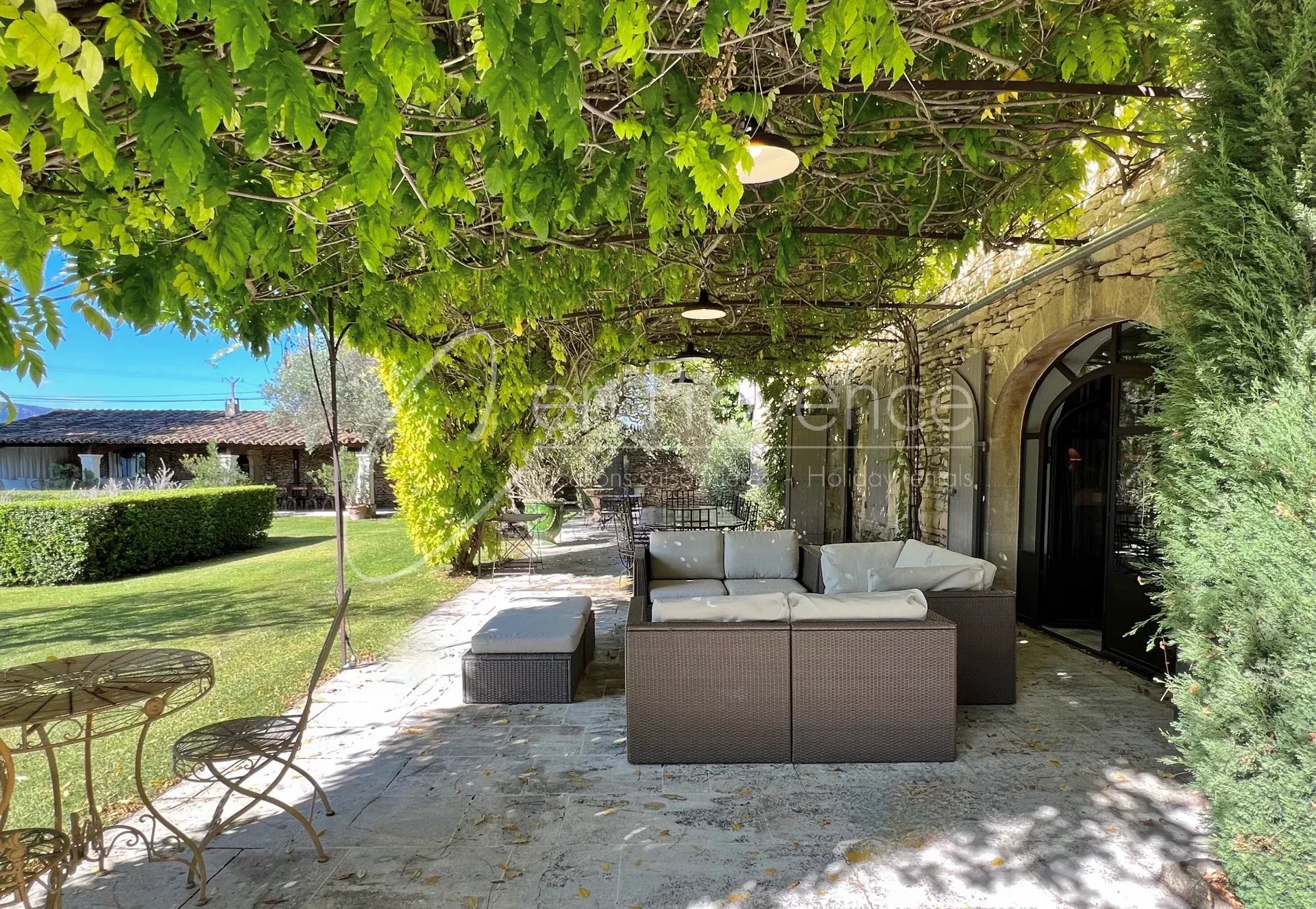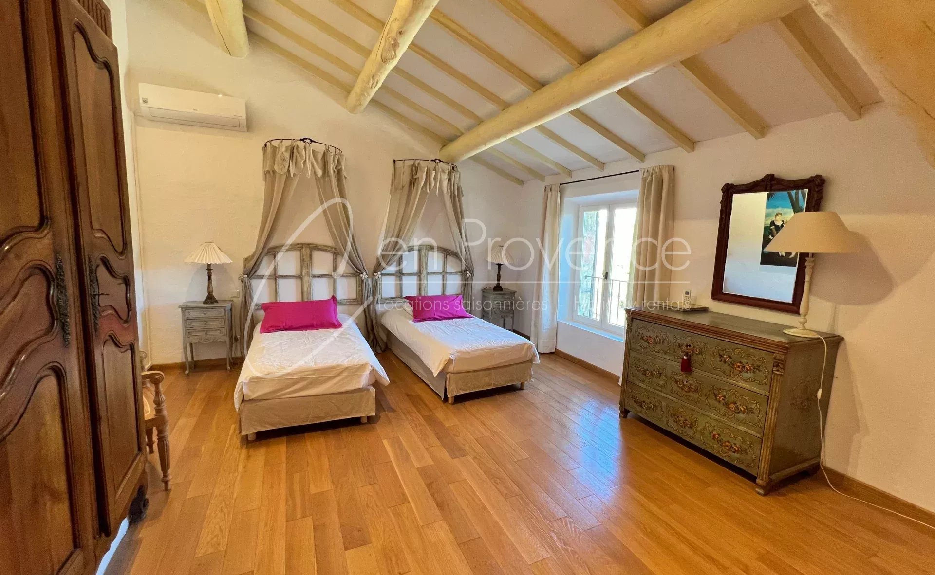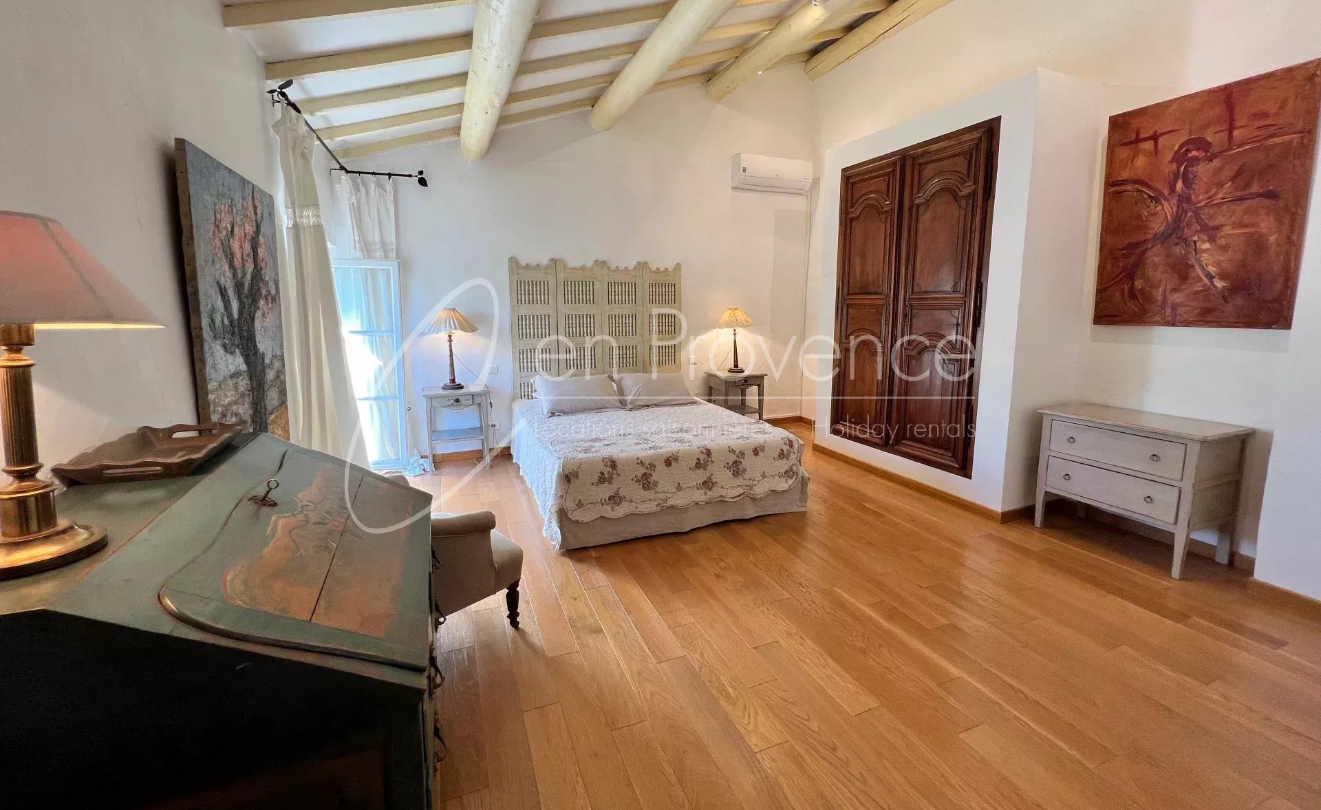 A Gordes, au coeur du triangle d’or, cette ancien mas restauré disponible à la location offre sept chambres avec six salles de bains pour un maximum de quatorze personnes. Entièrement climatisée, un terrain clos d'un hectare paysager, une piscine chauffée, un tennis privé, ce très beau mas provençal propose un large éventail d’activités de plein air pour se divertir pendant les vacances au coeur du Luberon. Gordes - 7 chambres - 6 salles de bains - 14 personnes - Piscine chauffée - Tennis - Vue sur le Luberon