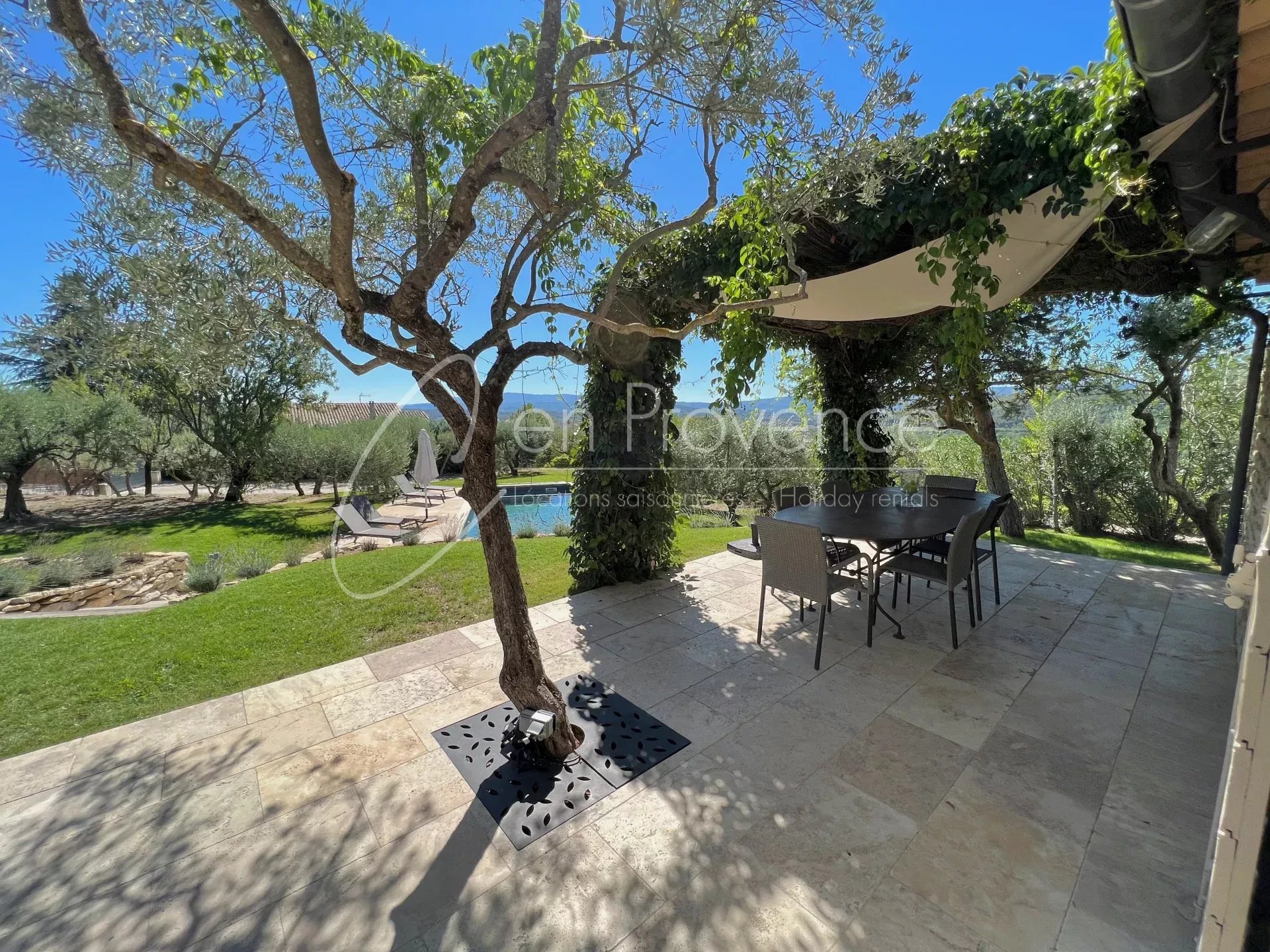 La propriété bénéficie d’une situation privilégiée : toute proche d’un village à pied avec ses commerces et d’une vue dégagée sur le Luberon et sa vallée. Cette location de vacances est disponible tout au long de l’année.