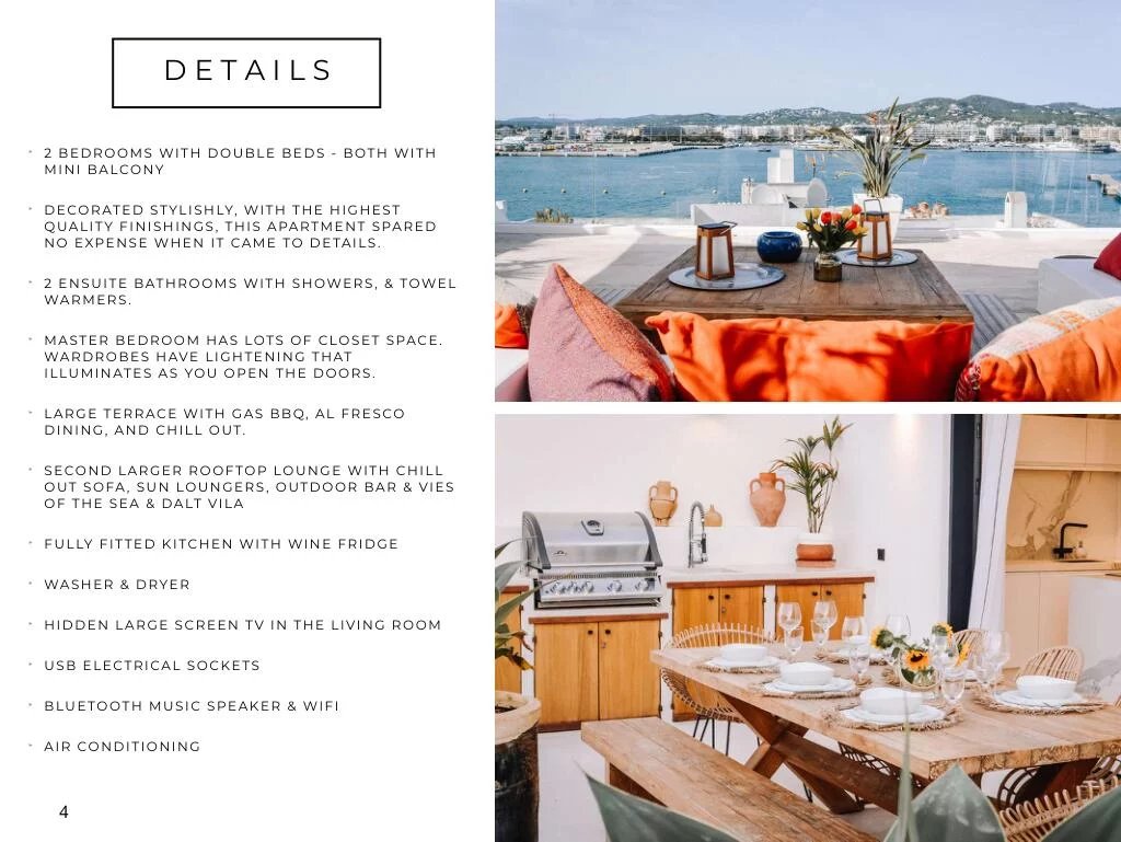 LUXURIOUS & VERY STYLISH 2 BEDROOM APARTMENT IN IBIZA TOWN. THIS APARTMENT HAS STUNNING VIEWS, 2 LARGE TERRACES, ONE WHICH IS ROOFTOP IDEAL FOR CATCHING SUN, OR DRINKS AT DUSK. WITH DALT VILA JUST A FEW STREETS AWAY, THIS APARTMENT IS JUST STEPS FROM THE MARINA & MANY GREAT RESTAURANTS IN THE OLD TOWN. LOCATED ON ONE OF THE BEST STREETS IN TOWN.