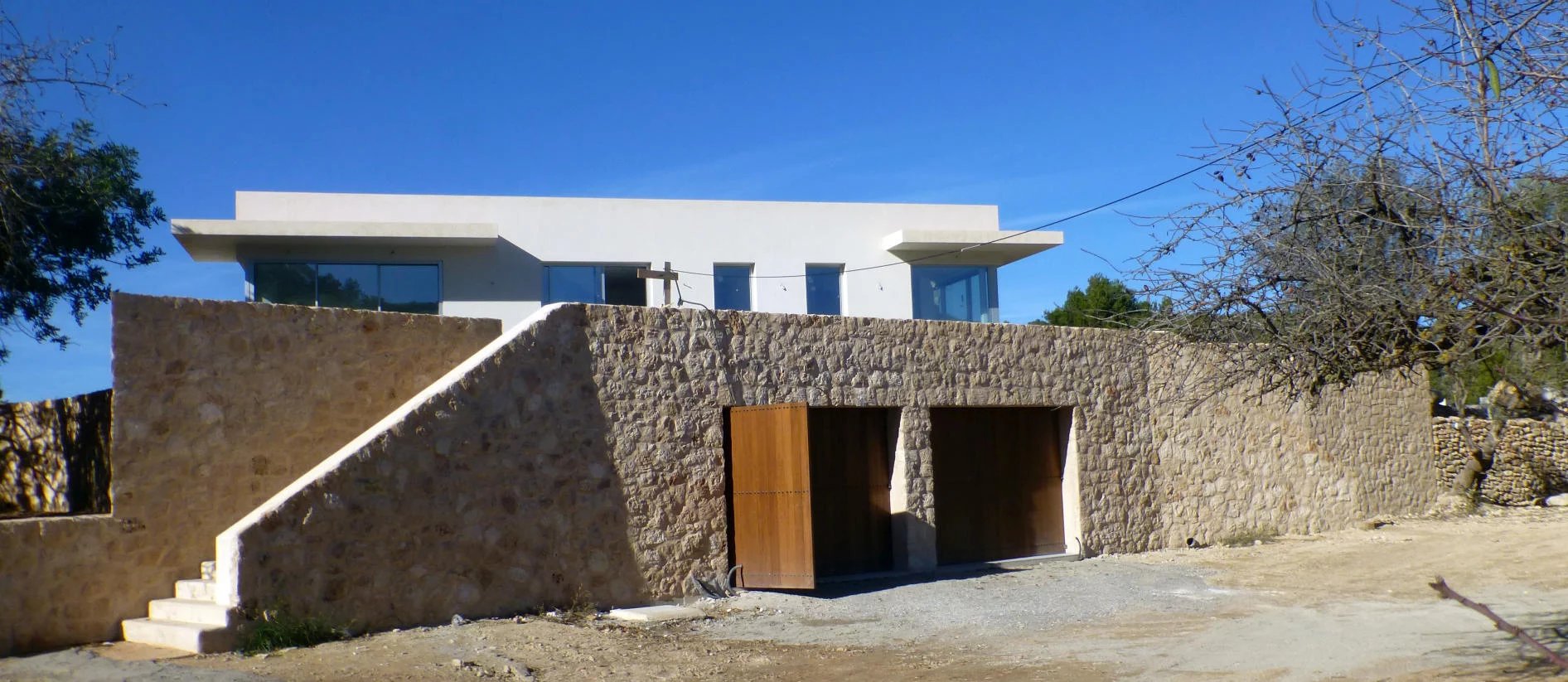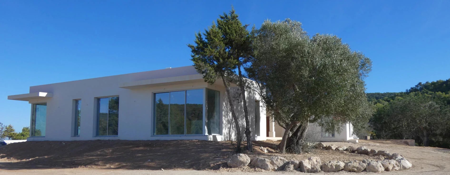 Large property built on top of the hill • Open views to North - West and South • 12*5 swimming pool • Constructed area 632 m2 • Large basement floor • New first quality construction • Very close to San José village • Fiber optic cable • Underfloor heating, cooling system and panoramic windows. • About 40.000 m2 of plot: 20.000 in terrace and 20.000 flat garden around the house