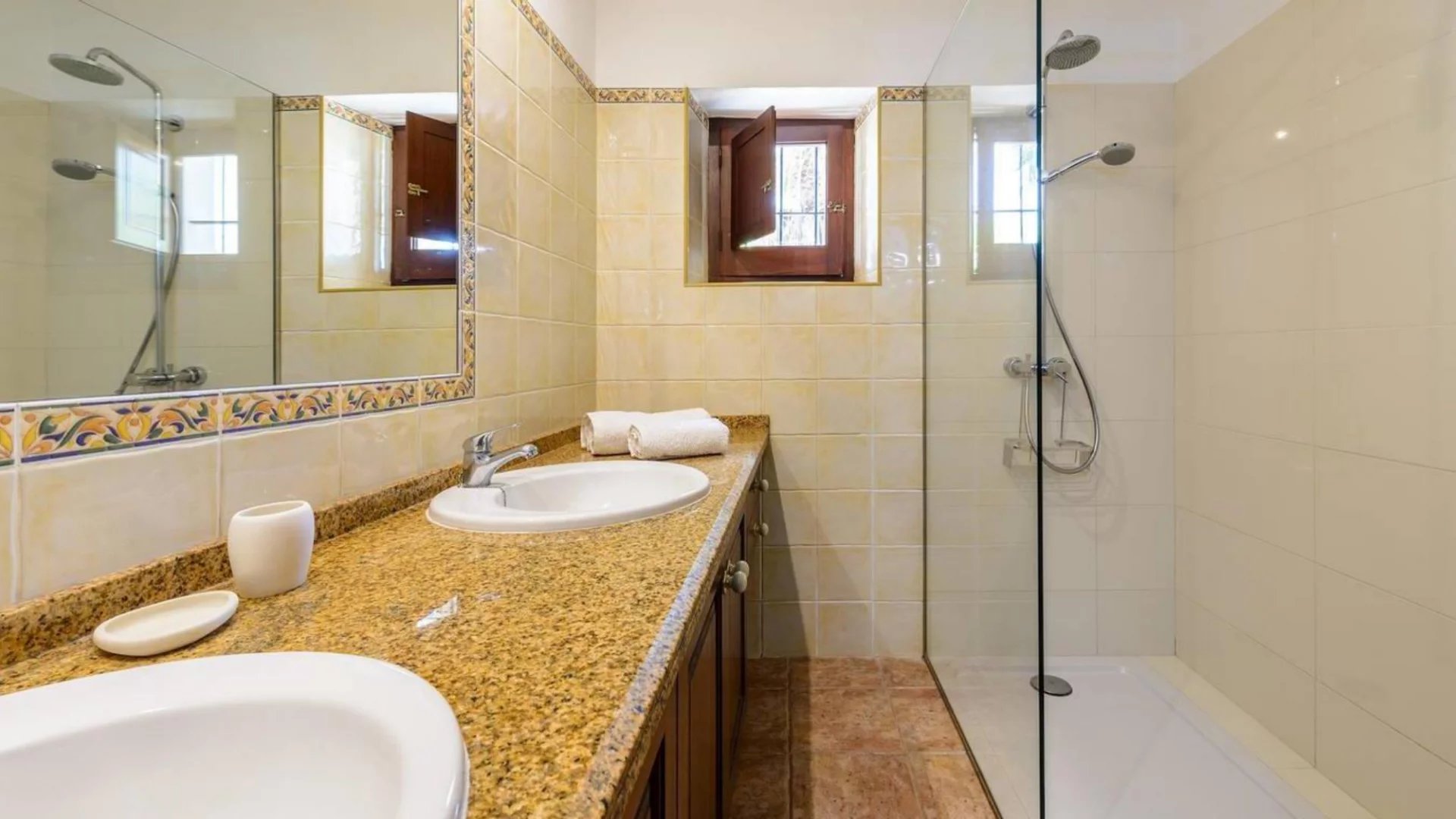 This stunning property offers 5 bedrooms: 4 double rooms and 1 twin room, along with 5 bathrooms.