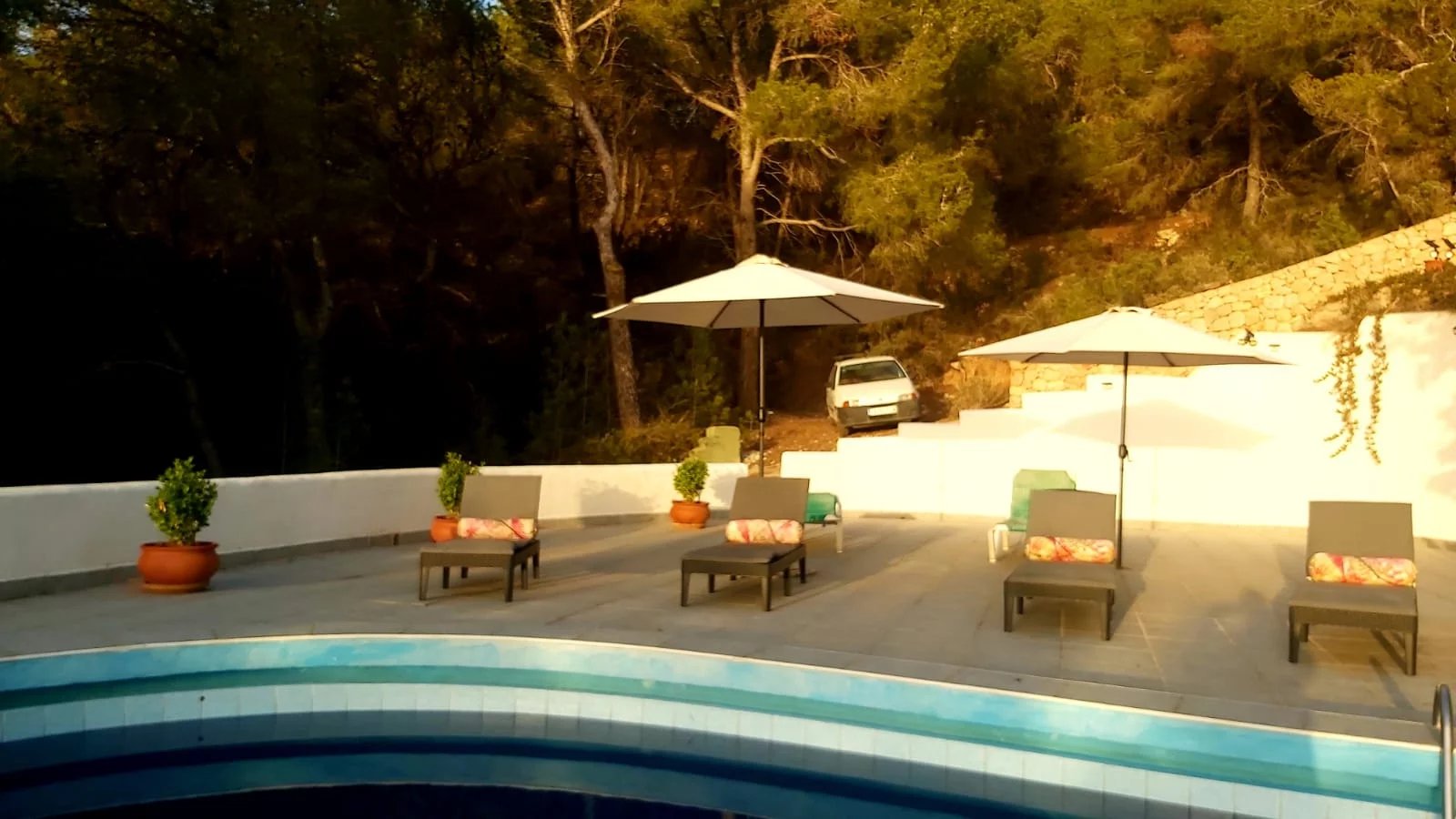 -Garden, pool terrace and huge back terrace.