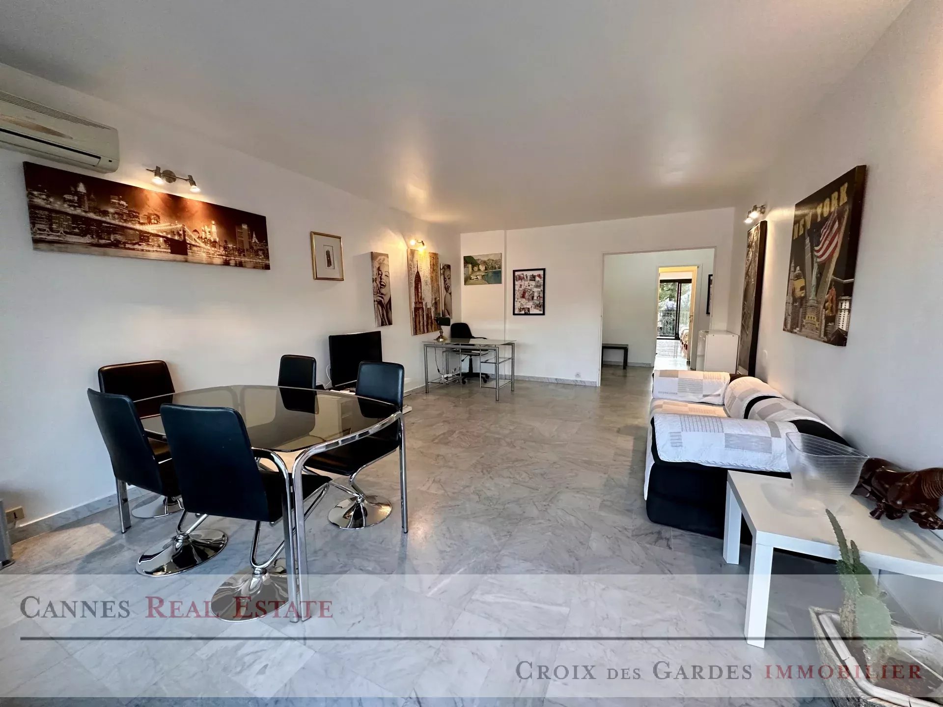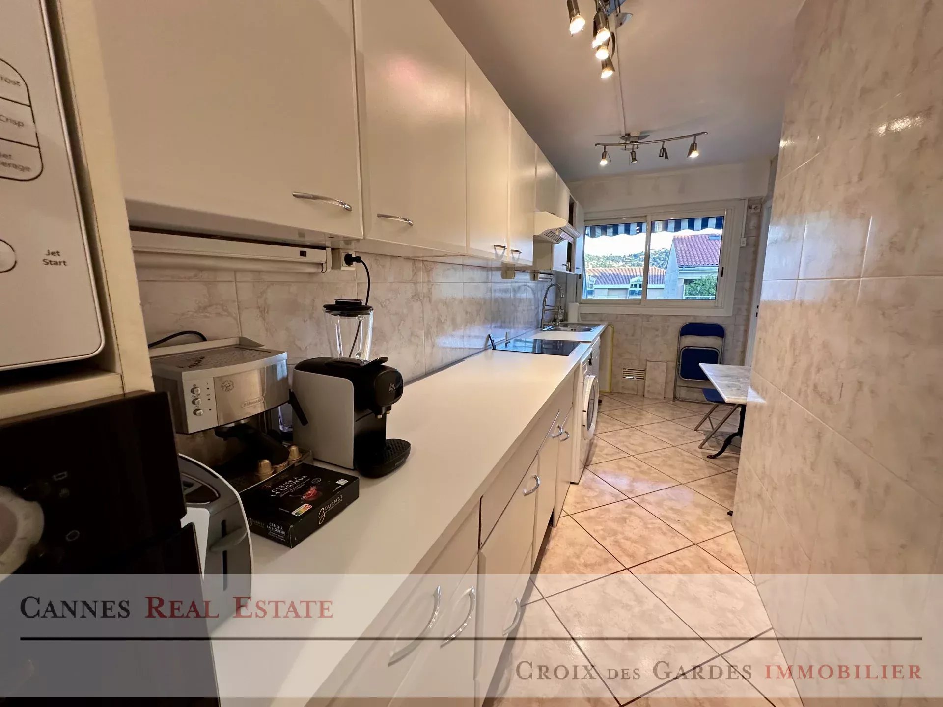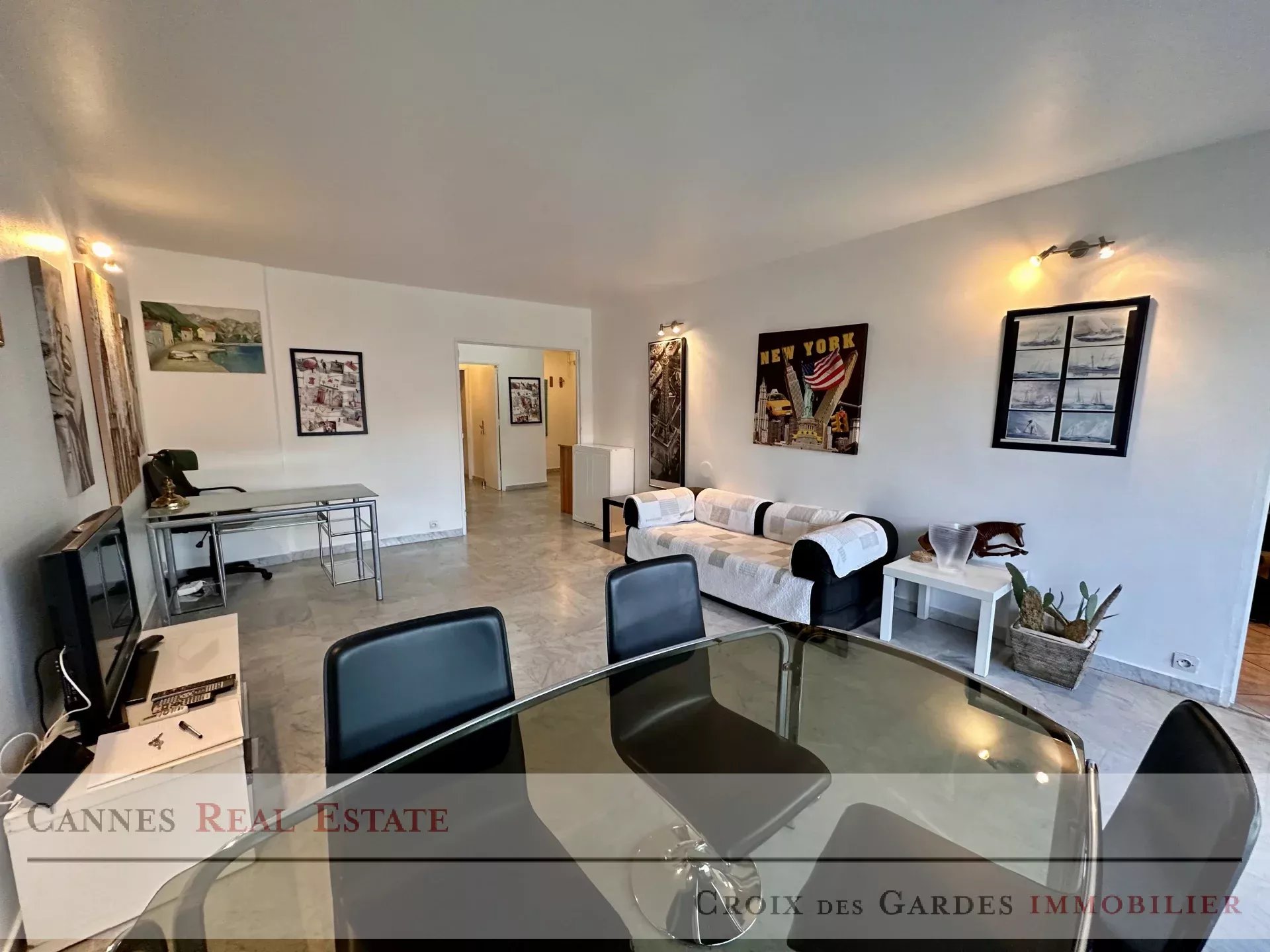 À vendre : Situé à l’avant-dernier étage d’une résidence de qualité, ce spacieux 3 pièces traversant de 89 m² (97,5 m² surface utile) offre une vue dégagée sur la ville et un aperçu mer. Exposé Est/Ouest, l’appartement est baigné de lumière tout au long de la journée. Il comprend : • Une entrée avec rangements, • Un séjour lumineux ouvrant sur une grande terrasse profonde, • Une cuisine indépendante (pouvant être ouverte sur le séjour), • Deux grandes chambres avec placards, • Une salle de bains, une salle d’eau, et des toilettes séparées. Les charges incluent l’eau chaude et le chauffage collectif au sol. il y a également une climatisation réversible. Un garage fermé (17 m²) et une cave saine au rez-de-chaussée peuvent complètent ce bien. Proche des commerces et transports, à seulement 15 minutes à pied du Palais des Festivals et des plages de la Croisette. Possibilité de transformer ce 3 pièces en 4 pièces.