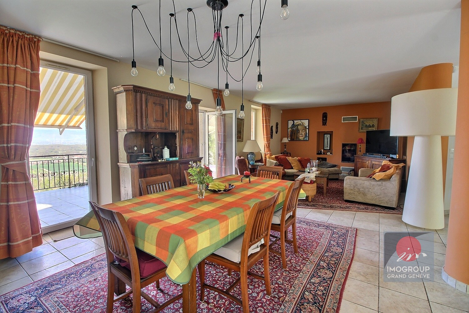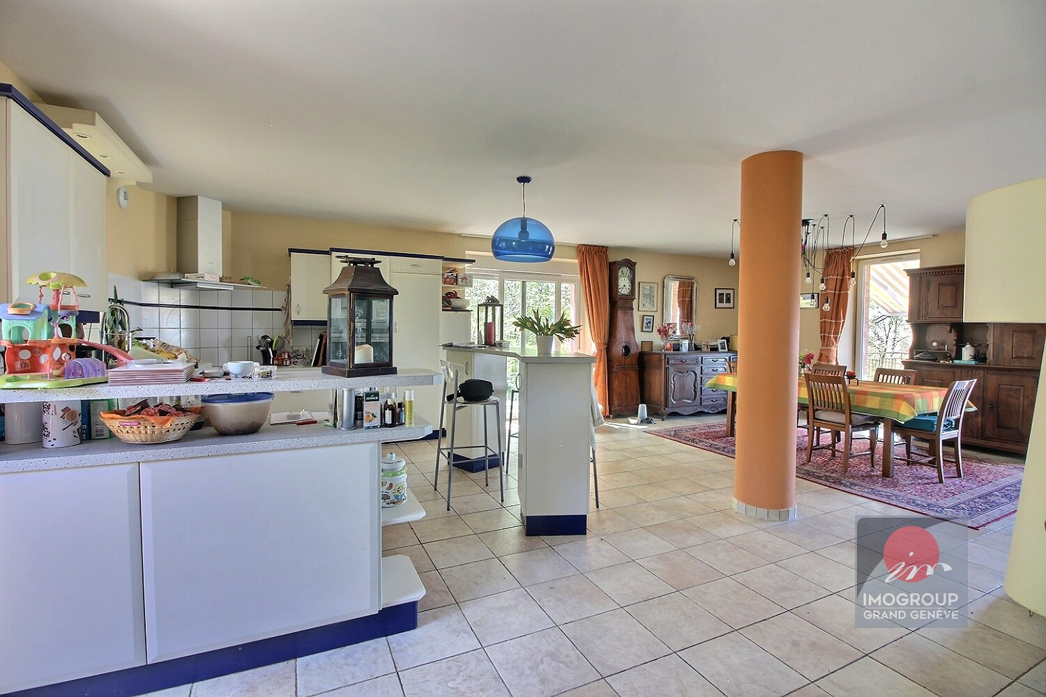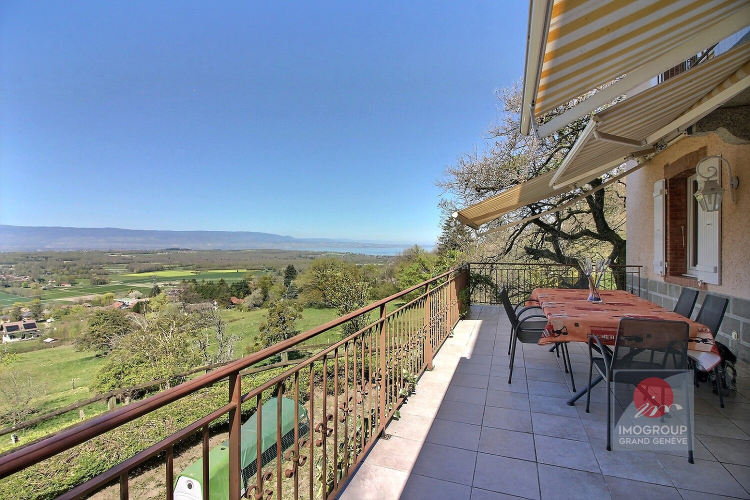 Vous êtes une personne d'exception et vous recherchez le bien qui vous ressemble, unique, original avec une belle histoire de vie. Cette maison vous appelle. Avec son grand séjour cuisine de plus de 50 m² et ses 5 chambres spacieuses, elle saura vous accueillir, vous et votre famille. Et si vous souhaitez recevoir, vous avez la salle de jeu au dernier niveau de presque 60 m² et sa charpente en parapluie qui saura vous séduire. Si vous voulez un instant de quiétude avec une vue contemplative sur le lac et les montagnes jurassiennes, grimpez dans la tour et vous aurez une vue unique sur tout le bassin lémanique. 2 hectares de terrain en bois et prés se prêteront à votre besoin d'espace, de tranquillité et de rapprochement vers la nature. Enfin, une dépendance de 82 m² distribuée en 4 pièces avec son appentis pourra être réhabilitée selon vos besoins et envies. SES ATOUTS: - Situation rarissime (calme, vue, environnement naturel) - Beaux volumes - Grande salle avec une charpente singulière - Tour avec une vue exceptionnelle lac et montagne - Espace naturel généreux de 2 ha en prés et bois - Fort potentiel avec la dépendance à transformer en habitation Soyez la personne privilégiée pour la visiter. Contactez nous au 04 50 35 47 60.