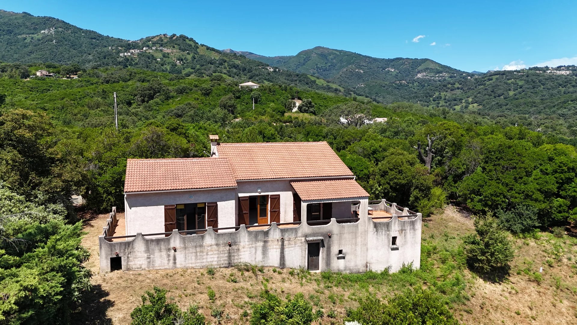Une exclusivité de vente Panoramer. Située en campagne cette agréable villa élevée d'un étage se compose : Rez-de-jardin 1 cave d'environ 30 m² et un garage de 17 m². A l'étage une terrasse d'accès, une entrée, un séjour, une cuisine, deux chambres, une salle de bain, une salle de douche wc. Terrain de 1500 m² arboré. Très belle vue mer. Travaux de rafraichissement à prévoir.