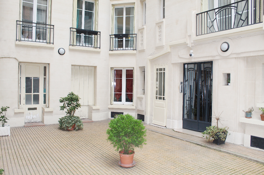 Cité Falguière. Au calme dans une petite impasse, agréable studio MEUBLÉ de 16,22m2, au 2ème étage sans ascenseur. Pièce principale avec coin cuisine équipée, salle d'eau avec douche lavabo et WC broyeur. Fenêtre PVC double vitrage. Peinture et parquet. Vue dégagée. Chauffage collectif par radiateur. Libre de suite.
