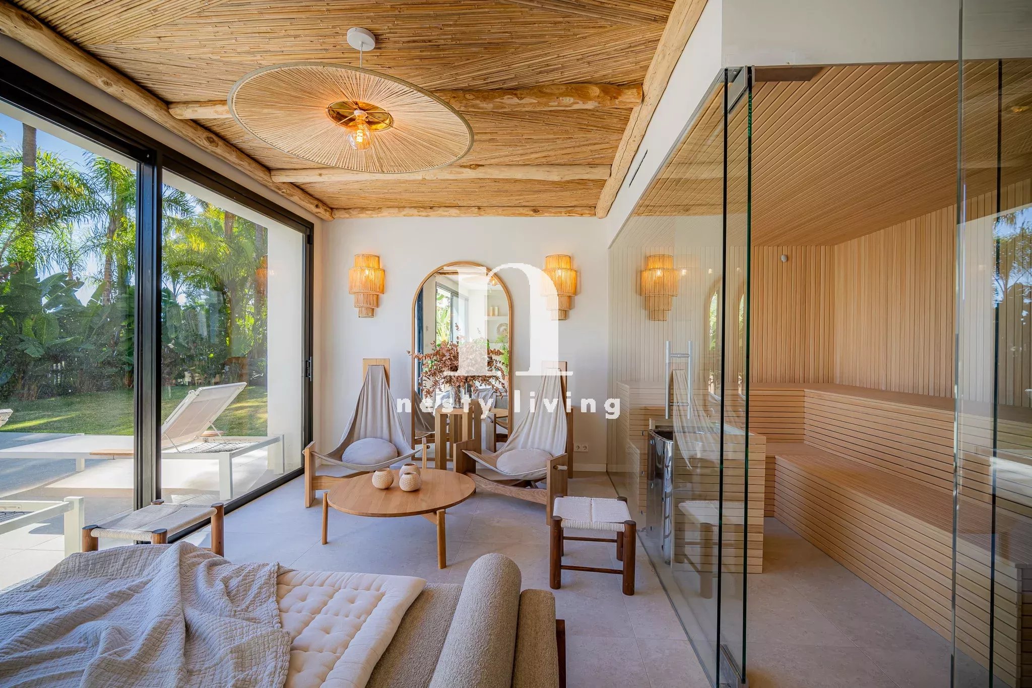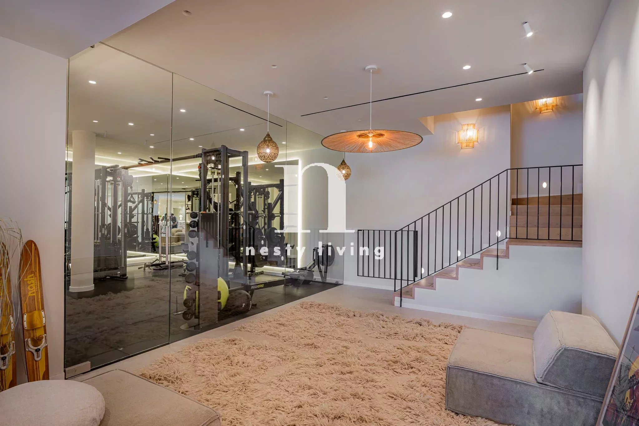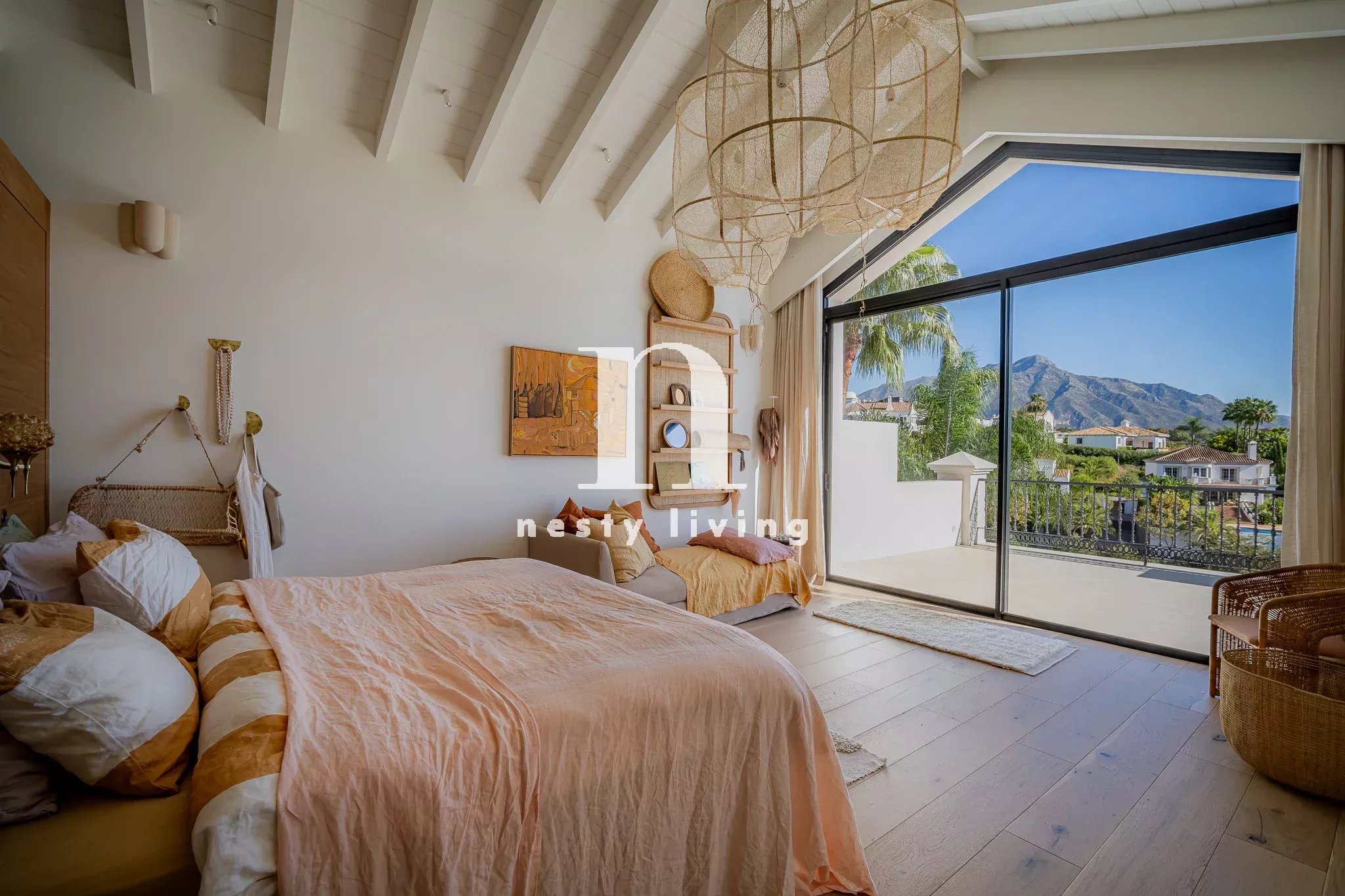 Voici Herrojo 24, une villa moderne vraiment spectaculaire dans la communauté fermée exclusive d'El Herrojo à Benahavís. Cette résidence bénéficie d'un emplacement de choix, offrant une vue imprenable sur les environs et la montagne La Concha. L'architecture moderne de Herrojo 24 se caractérise par des murs extérieurs d'un blanc éclatant et des jardins méticuleusement aménagés, créant ainsi un chef-d'œuvre visuel. Les jardins manucurés, ainsi qu'une spectaculaire piscine privée, sont enveloppés de verdure, offrant à la fois intimité et connexion transparente avec la nature. Les terrasses généreuses abondent, permettant de prendre des repas en plein air et offrant des endroits parfaits pour se détendre dans les zones de détente. Une kitchenette extérieure équipée d'un barbecue améliore l'expérience de la vie en plein air. Les intérieurs de l'Herrojo 24 sont tout simplement extraordinaires, avec un design moderne unique, propre à cette propriété. La disposition ouverte du rez-de-chaussée permet d'harmoniser tous les espaces, avec des touches de bois et de subtiles touches de couleur qui donnent du caractère à l'espace. Le salon est un mélange parfait de confort et de style, idéal pour se détendre ou recevoir des invités, avec des étagères intégrées dans les murs. Les salles à manger formelles et informelles sont polyvalentes et la cuisine moderne est un véritable chef-d'œuvre en termes de design et de fonctionnalité. Les armoires en bois offrent un grand espace de rangement et de comptoir, et complètent les appareils électroménagers de pointe, tandis qu'un superbe îlot de cuisine en marbre permet de s'asseoir en toute commodité. L'accès direct à la terrasse depuis le rez-de-chaussée assure une fluidité entre l'intérieur et l'extérieur. Toutes les chambres sont aménagées de manière exquise, la chambre principale étant la plus remarquable. Ce sanctuaire spacieux offre un accès direct à la terrasse pour des vues spectaculaires et constitue le lieu idéal pour se détendre. La salle de bains principale est tout aussi impressionnante, avec une baignoire et une douche indépendantes, ainsi qu'un meuble à double vasque avec des accents en bois. Herrojo 24 va au-delà de l'ordinaire avec un solarium impressionnant qui comprend une kitchenette extérieure. D'autres équipements rehaussent l'expérience de la vie de luxe, notamment une salle de sport spectaculaire, un spa relaxant avec un hammam et un sauna, ainsi qu'un home cinéma.