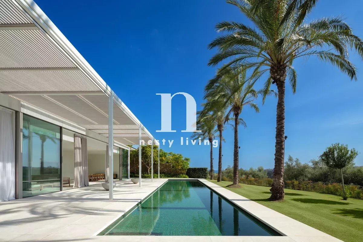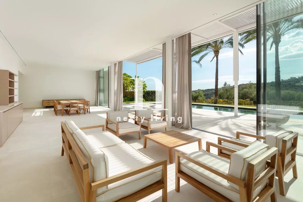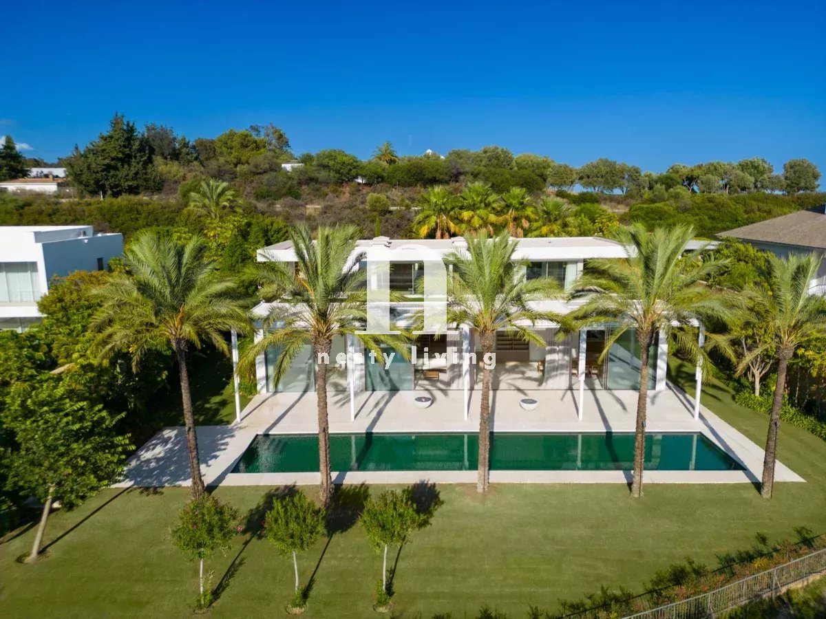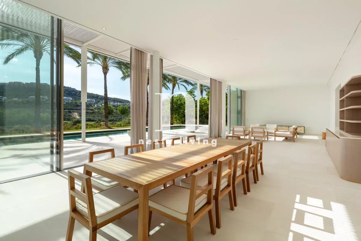 Cette étonnante villa est l'incarnation de la vie luxueuse au bord du golf. Méticuleusement conçue par les célèbres architectes Vicens & Romans, cette opulente résidence présente une merveille architecturale inégalée, sans équivalent sur la Costa del Sol. Nichée sur un vaste terrain de golf en première ligne, la villa est dotée de grandes fenêtres allant du sol au plafond qui inondent les intérieurs d'une abondance de lumière naturelle, dévoilant des vues à couper le souffle sur le terrain de golf Finca Cortesin et la mer Méditerranée depuis son point d'observation élevé. Au cœur d'une végétation luxuriante, l'intimité et la tranquillité sont garanties. Avec de généreuses terrasses extérieures et un accès facile au jardin depuis toutes les zones, la vie intérieure/extérieure est maximisée pour que les résidents profitent au maximum du temps magnifique que ce coin du monde a à offrir. La longue piscine, décorée de magnifiques carreaux aigue-marine, invite à la baignade, tandis que les palmiers luxuriants offrent de l'ombre et une toile de fond esthétique pour la détente. Les intérieurs exhalent le raffinement, chaque détail ayant été méticuleusement choisi avec les matériaux les plus fins, garantissant un sentiment de luxe inégalé. La superbe cuisine, équipée d'appareils Gaggenau dernier cri, est un havre de paix culinaire qui allie harmonieusement praticité et esthétique. Réparties sur deux étages, la plupart des chambres se trouvent au rez-de-chaussée de la propriété et offrent une vue imprenable sur le parcours de golf. La luxueuse chambre principale se trouve au dernier niveau de la propriété et offre aux résidents une oasis privée. L'aménagement paysager de la propriété est une œuvre d'art, avec un captivant étang caché à l'entrée, orné d'une verdure luxuriante qui évoque une ambiance apaisante, favorisant une connexion profonde avec la nature. Chef-d'œuvre architectural, cette propriété jouit d'une position privilégiée en première ligne de golf dans l'une des stations balnéaires les plus exclusives d'Espagne : Finca Cortesin.