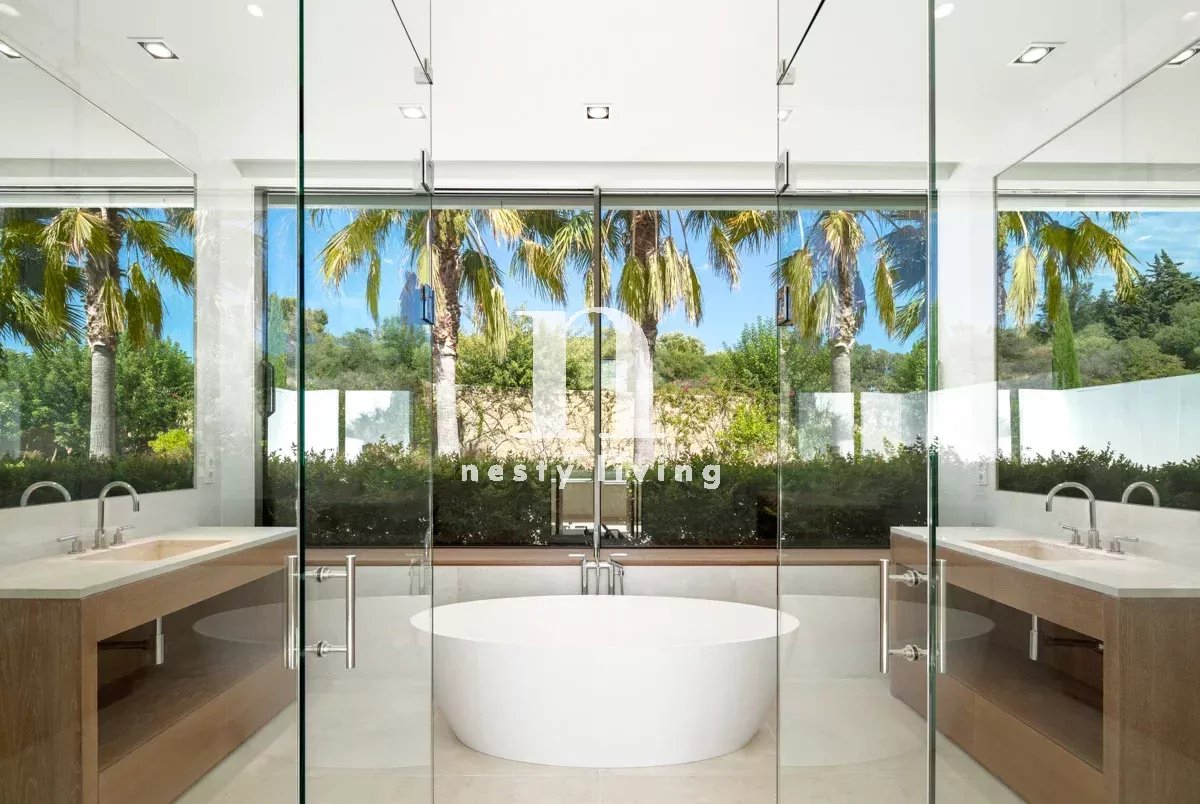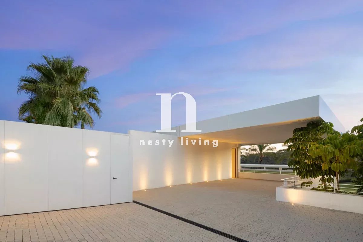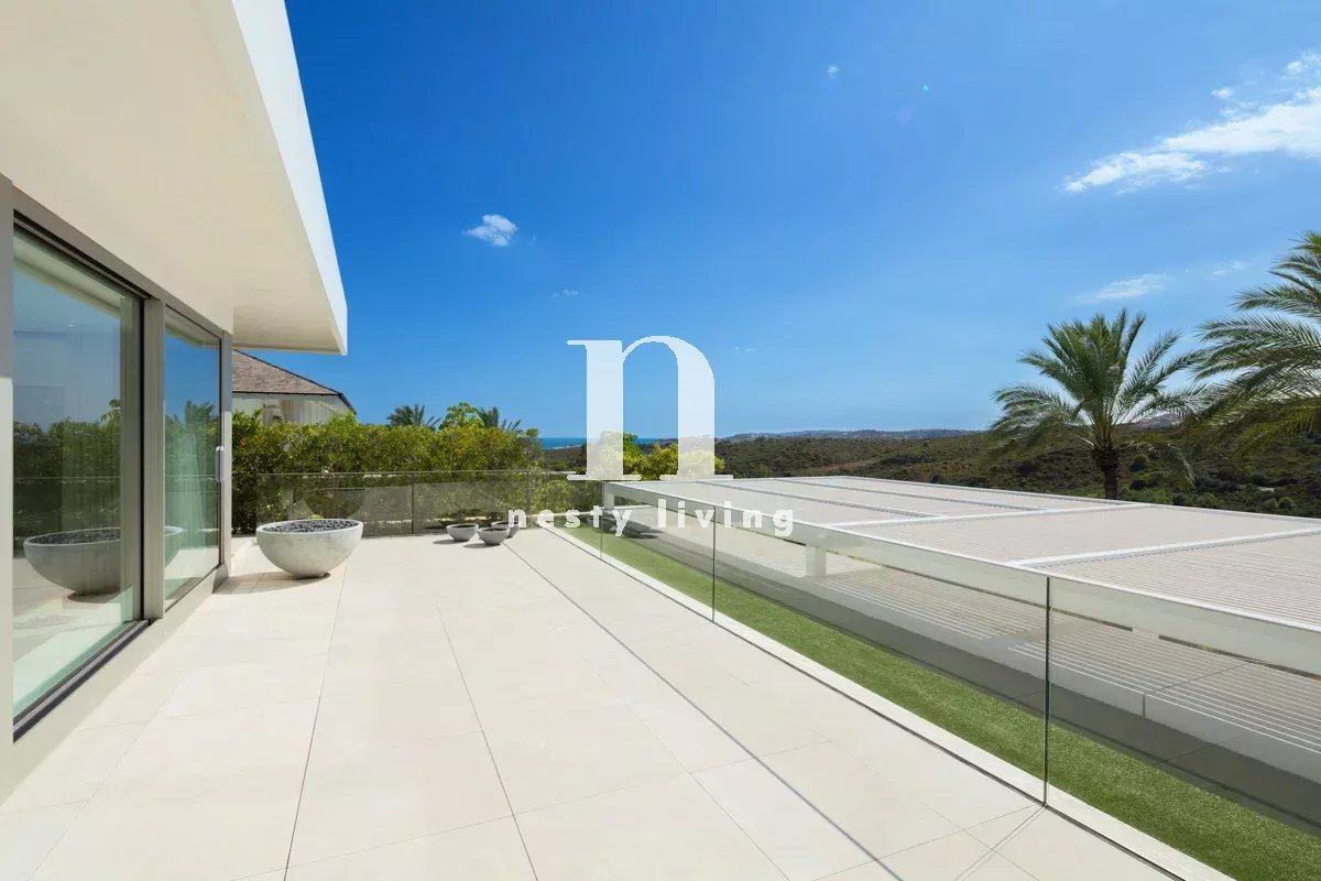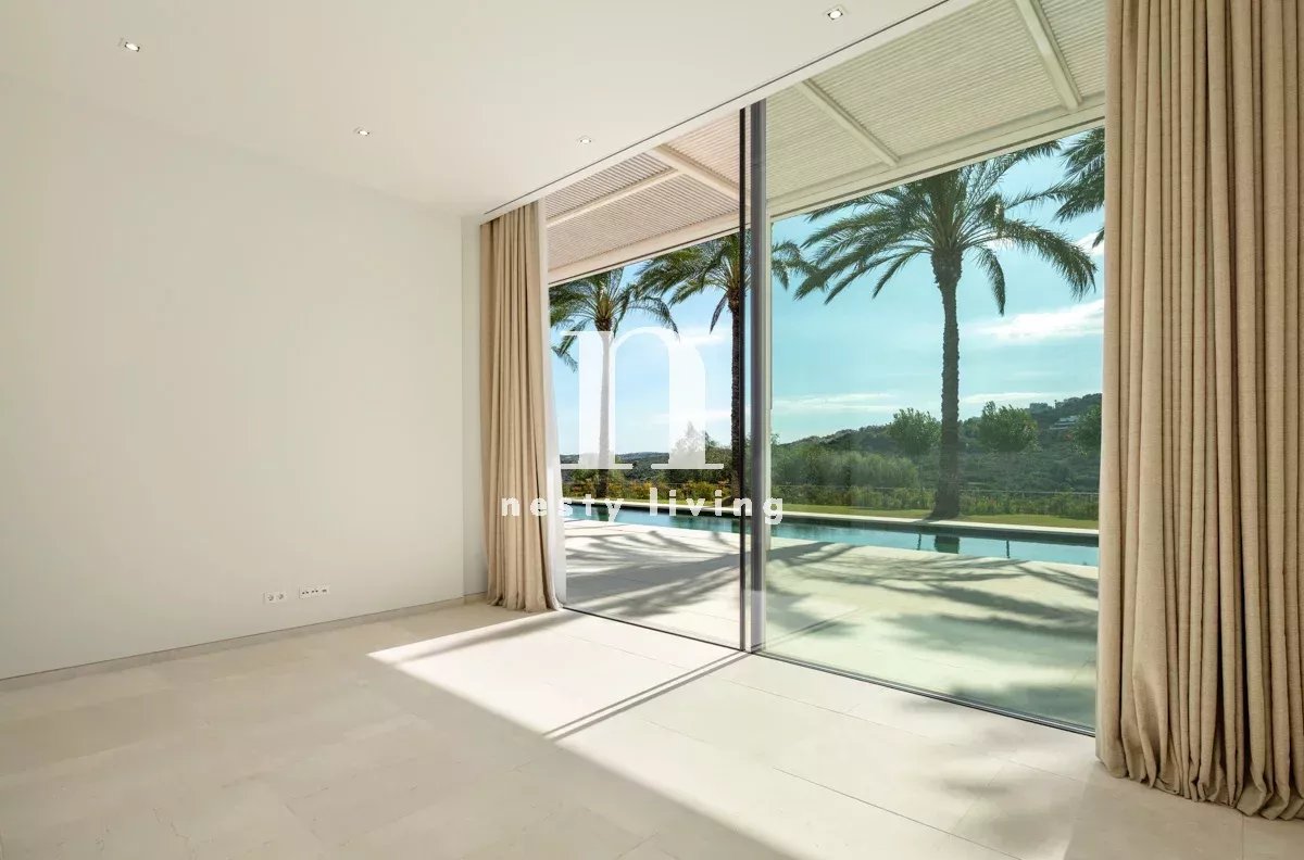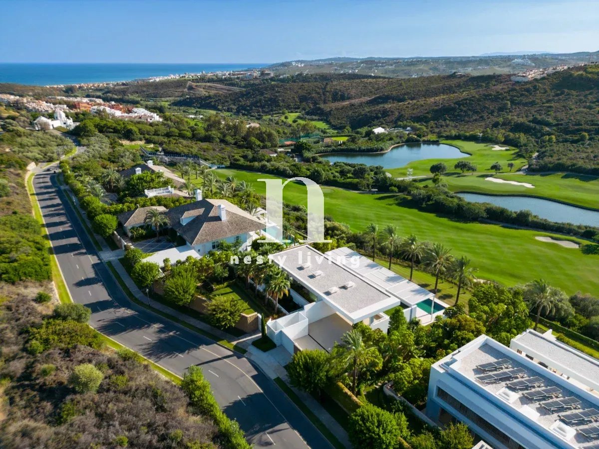 Cette étonnante villa est l'incarnation de la vie luxueuse au bord du golf. Méticuleusement conçue par les célèbres architectes Vicens & Romans, cette opulente résidence présente une merveille architecturale inégalée, sans équivalent sur la Costa del Sol. Nichée sur un vaste terrain de golf en première ligne, la villa est dotée de grandes fenêtres allant du sol au plafond qui inondent les intérieurs d'une abondance de lumière naturelle, dévoilant des vues à couper le souffle sur le terrain de golf Finca Cortesin et la mer Méditerranée depuis son point d'observation élevé. Au cœur d'une végétation luxuriante, l'intimité et la tranquillité sont garanties. Avec de généreuses terrasses extérieures et un accès facile au jardin depuis toutes les zones, la vie intérieure/extérieure est maximisée pour que les résidents profitent au maximum du temps magnifique que ce coin du monde a à offrir. La longue piscine, décorée de magnifiques carreaux aigue-marine, invite à la baignade, tandis que les palmiers luxuriants offrent de l'ombre et une toile de fond esthétique pour la détente. Les intérieurs exhalent le raffinement, chaque détail ayant été méticuleusement choisi avec les matériaux les plus fins, garantissant un sentiment de luxe inégalé. La superbe cuisine, équipée d'appareils Gaggenau dernier cri, est un havre de paix culinaire qui allie harmonieusement praticité et esthétique. Réparties sur deux étages, la plupart des chambres se trouvent au rez-de-chaussée de la propriété et offrent une vue imprenable sur le parcours de golf. La luxueuse chambre principale se trouve au dernier niveau de la propriété et offre aux résidents une oasis privée. L'aménagement paysager de la propriété est une œuvre d'art, avec un captivant étang caché à l'entrée, orné d'une verdure luxuriante qui évoque une ambiance apaisante, favorisant une connexion profonde avec la nature. Chef-d'œuvre architectural, cette propriété jouit d'une position privilégiée en première ligne de golf dans l'une des stations balnéaires les plus exclusives d'Espagne : Finca Cortesin.