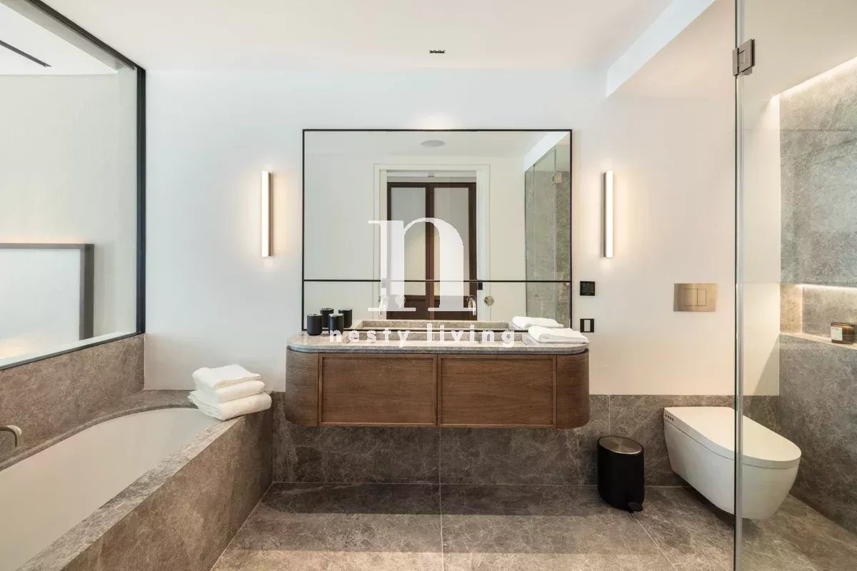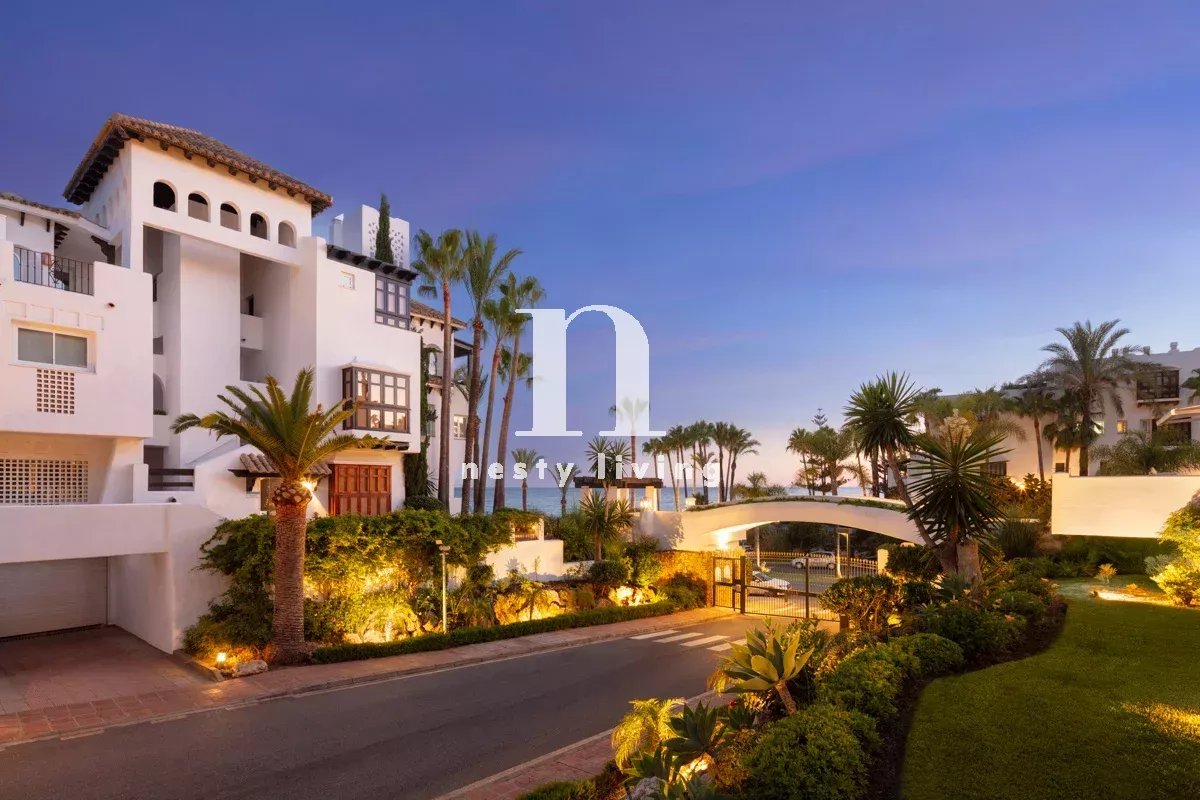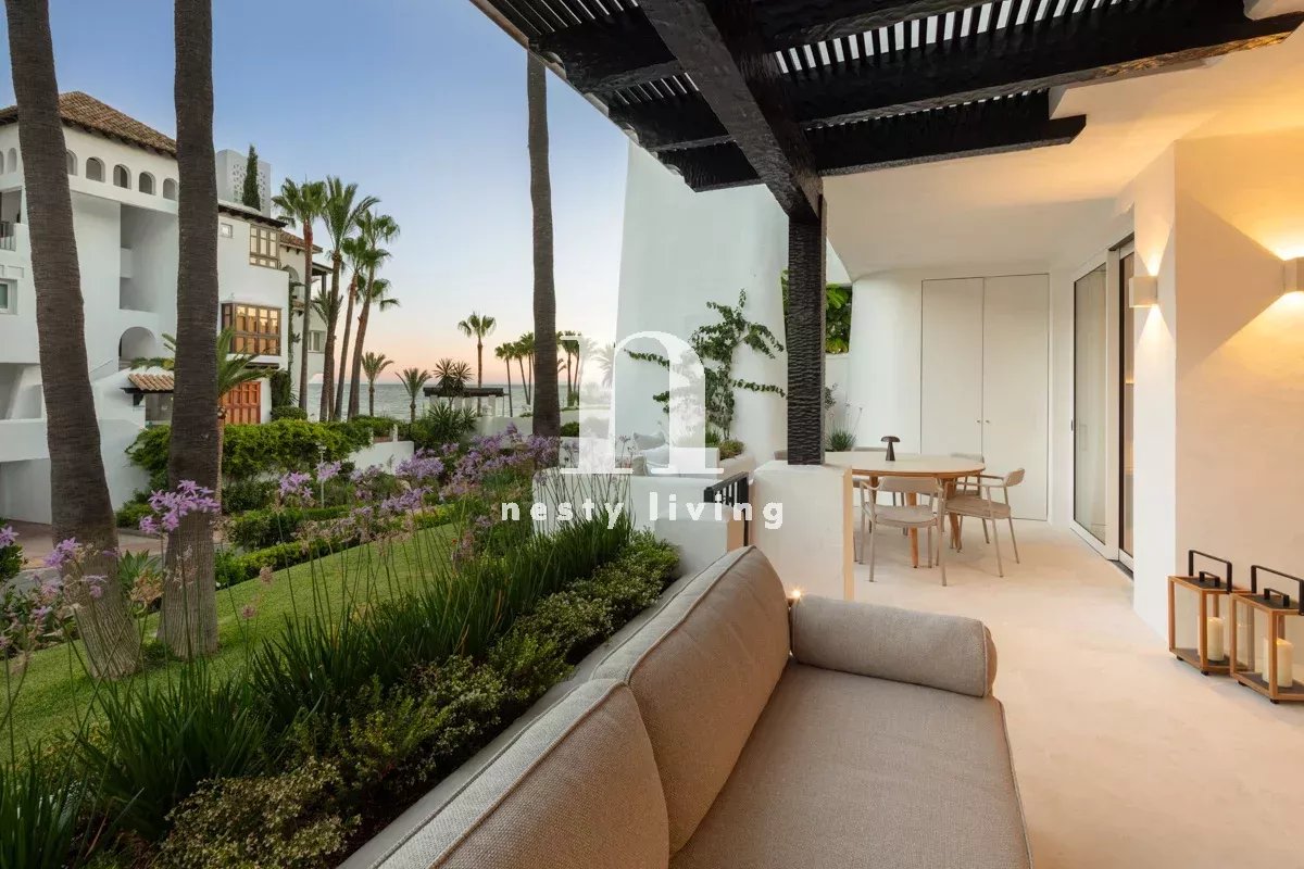 Iberis 12 est un superbe appartement moderne avec vue sur la mer, situé dans l'enclave exclusive du Puente Romano Resort, sur le Golden Mile de Marbella. L'Iberis 12 respire la sophistication en bord de mer et s'intègre à l'environnement de la station pour illustrer le luxueux style de vie méditerranéen. L'appartement est doté d'une superbe terrasse couverte et spacieuse, qui permet de prendre des repas en plein air et de se détendre. Depuis la terrasse, les résidents peuvent profiter du magnifique jardin communautaire et de la vue sur la mer, créant ainsi une atmosphère relaxante. La terrasse a un accès direct à la salle de séjour et à la chambre principale grâce à des portes coulissantes en verre allant du sol au plafond. Le design intérieur moderne et sophistiqué peut être apprécié à travers la cuisine ouverte, la salle à manger et l'espace de vie. Les trois zones s'intègrent parfaitement pour créer un espace de vie à la fois pratique et esthétique. Des couleurs neutres et des touches de bois naturel dans le sol et les armoires de cuisine complètent l'espace. Le mobilier et les finitions modernes décorent élégamment l'espace, maximisant le confort et la praticité, tout en restant agréables à l'œil. La cuisine entièrement équipée est dotée d'un superbe îlot de cuisine dont le comptoir est recouvert de marbre, également présent dans toute la cuisine. Les appareils électroménagers peuvent être mis à l'écart grâce à leur position dans un placard, ce qui permet de désencombrer l'espace. Toutes les chambres sont bien aménagées et décorées avec les meilleurs matériaux et meubles, tout en respectant la palette de couleurs de la décoration intérieure. Elles disposent également d'une salle de bains privative. La chambre principale est un espace élégant et confortable, l'endroit idéal pour se détendre et se relaxer. Une baie vitrée sépare la chambre de la salle de bains, où l'on peut apprécier l'étonnante pierre grise utilisée pour le meuble à double vasque, la douche et la baignoire. Grâce à son emplacement pratique à Puente Romano, les résidents sont à quelques minutes de la plage et à proximité de toutes les commodités exclusives qu'offrent le complexe et le Golden Mile de Marbella.
