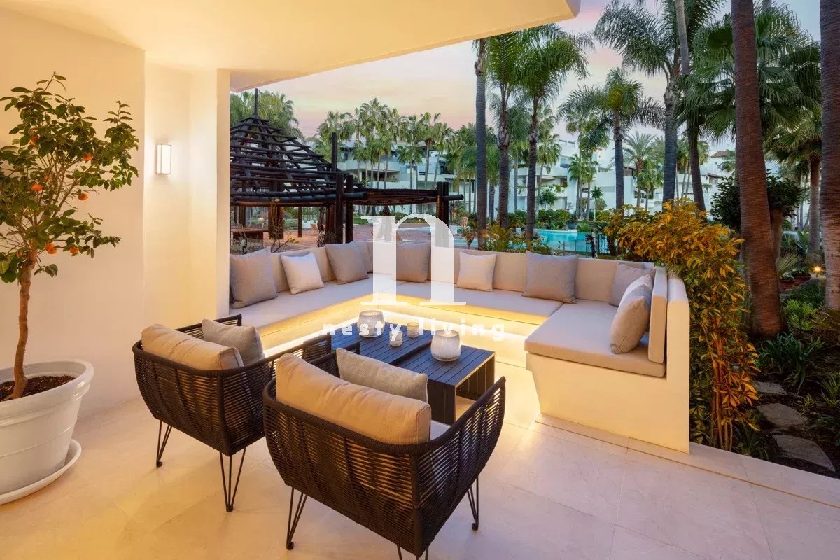 Située dans le complexe 5 étoiles exclusif Puente Romano, au cœur du Golden Mile de Marbella, cette propriété est l'une des plus exceptionnelles actuellement sur le marché. Exquisément conçu, Jacinto met l'accent sur des intérieurs sur mesure combinés avec les normes de qualité les plus élevées. La vie intérieure et extérieure est sans effort, avec une vaste terrasse donnant sur le jardin japonais magique et à quelques pas seulement des plages dorées de Marbella. Offrant un plan ouvert, une cuisine moderne conçue sur mesure avec des armoires en chêne et des appareils Gaggenau intégrés. Les trois chambres sont spacieuses et présentent chacune un design contemporain raffiné, avec une salle de bains privée. Le complexe Puente Romano propose une collection d'équipements richement étudiée, avec une sélection de ressources sociales, de style de vie et de bien-être. Vous pouvez vous laisser tenter par une gastronomie de haut niveau dans l'un des 15 restaurants raffinés, savourer un cocktail dans le salon de divertissement ouvert avec bar, vous détendre dans les installations de spa exceptionnelles, profiter des espaces en plein air, de ses jardins botaniques ou jouer sur un court de tennis de renommée mondiale. En outre, l'hôtel dispose d'une réception ouverte 24 heures sur 24 et 7 jours sur 7 et d'un programme de conciergerie à service complet.