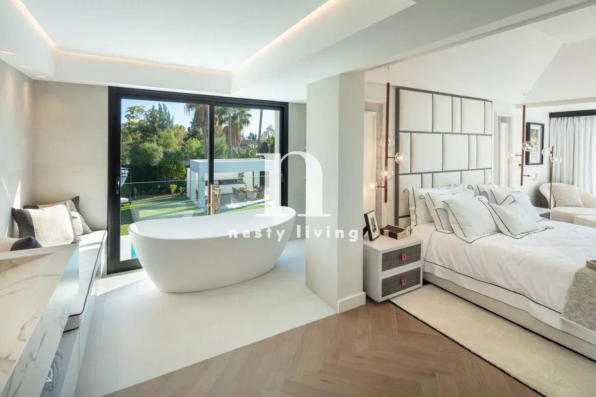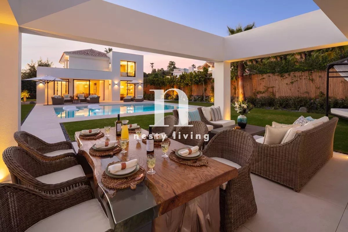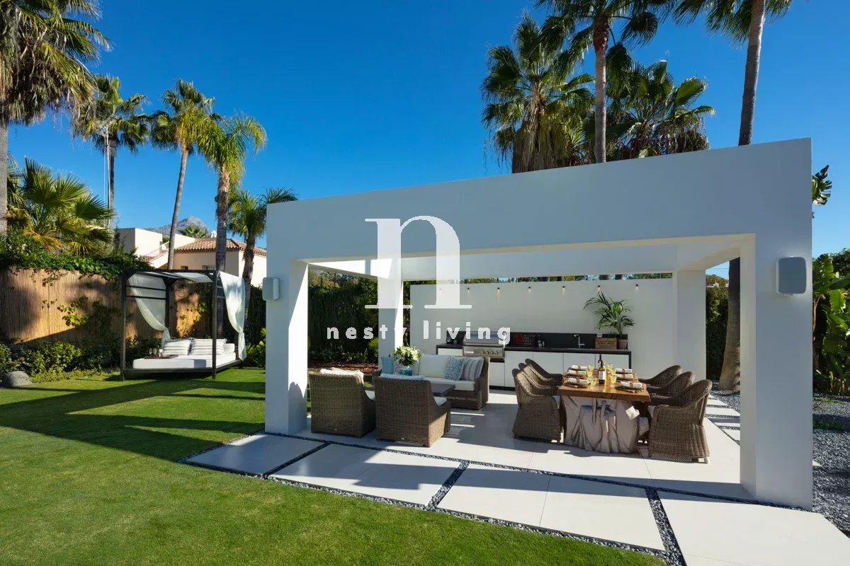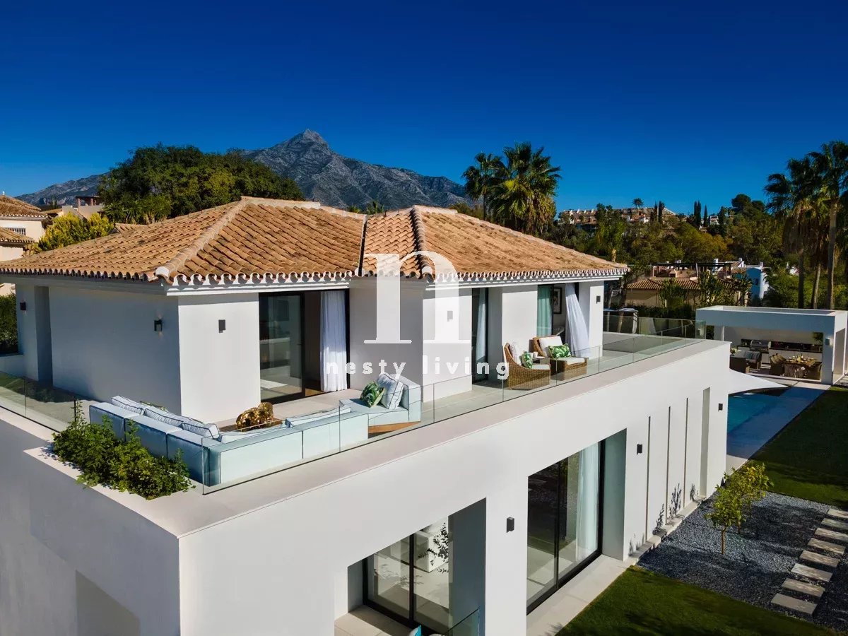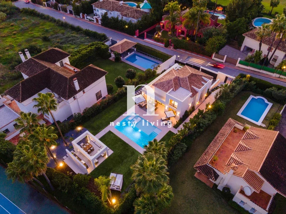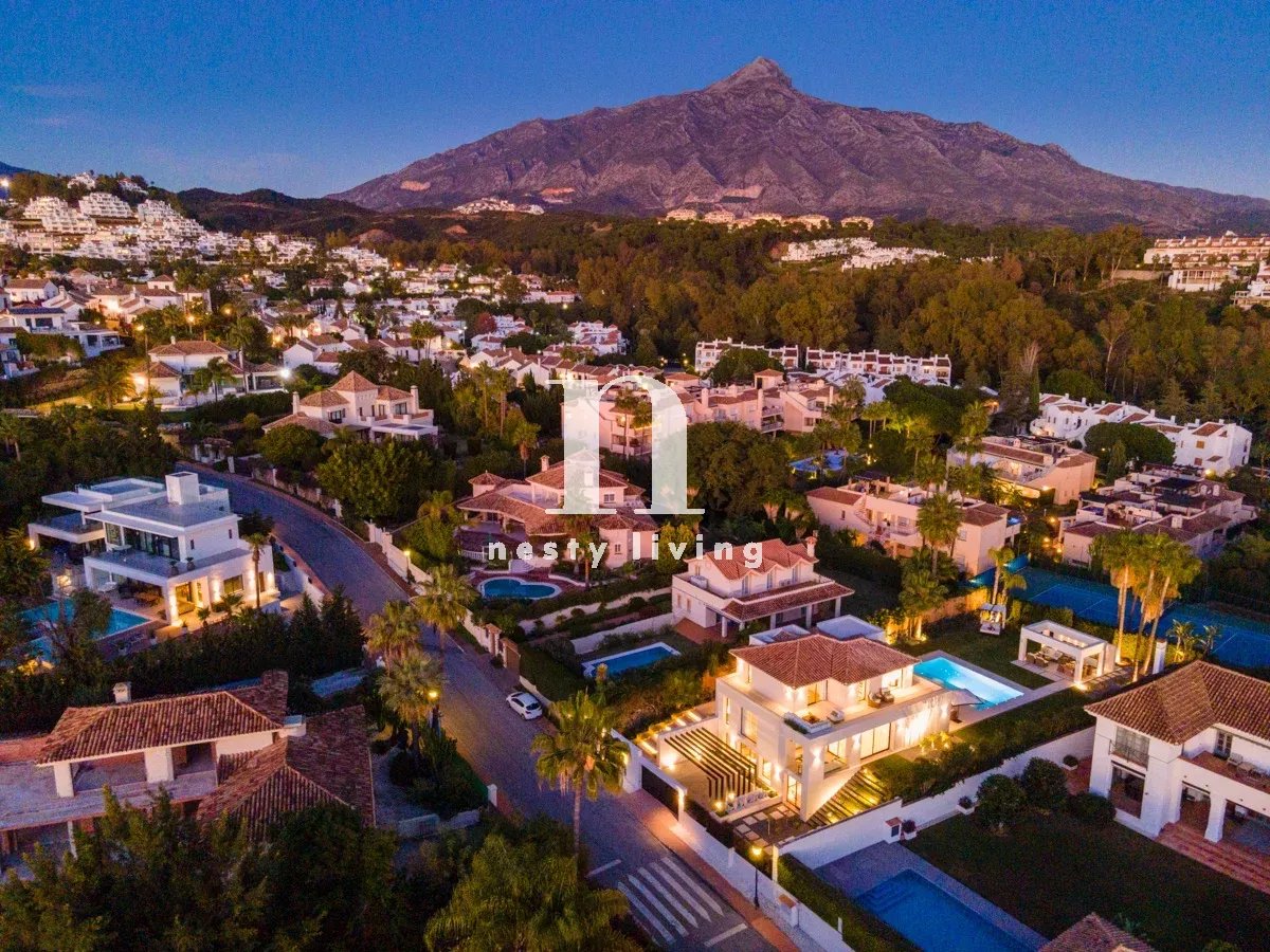 Bienvenue à Auriga 5, une villa opulente située au cœur de la Golf Valley. Il s'agit d'une propriété unique en son genre, entièrement rénovée et dotée d'une décoration intérieure et d'un ameublement sur mesure. Auriga 5 bénéficie d'une attention exquise aux détails et de nombreux avantages pour se divertir, y compris un jardin magnifiquement conçu, une piscine et un espace barbecue, et dans le sous-sol de la propriété, des luxes tels qu'une salle de divertissement et un spa à domicile, offrant un style de vie somptueux. Auriga 5 se trouve sur un terrain de plus de 1000 m2, dans l'une des rues résidentielles les plus prisées de Nueva Andalucia, avec vue sur la montagne La Concha. À quelques pas de plusieurs terrains de golf et à quelques minutes en voiture des commodités telles que les magasins et les installations de loisirs, Puerto Banus se trouve également à moins de 10 minutes en voiture.