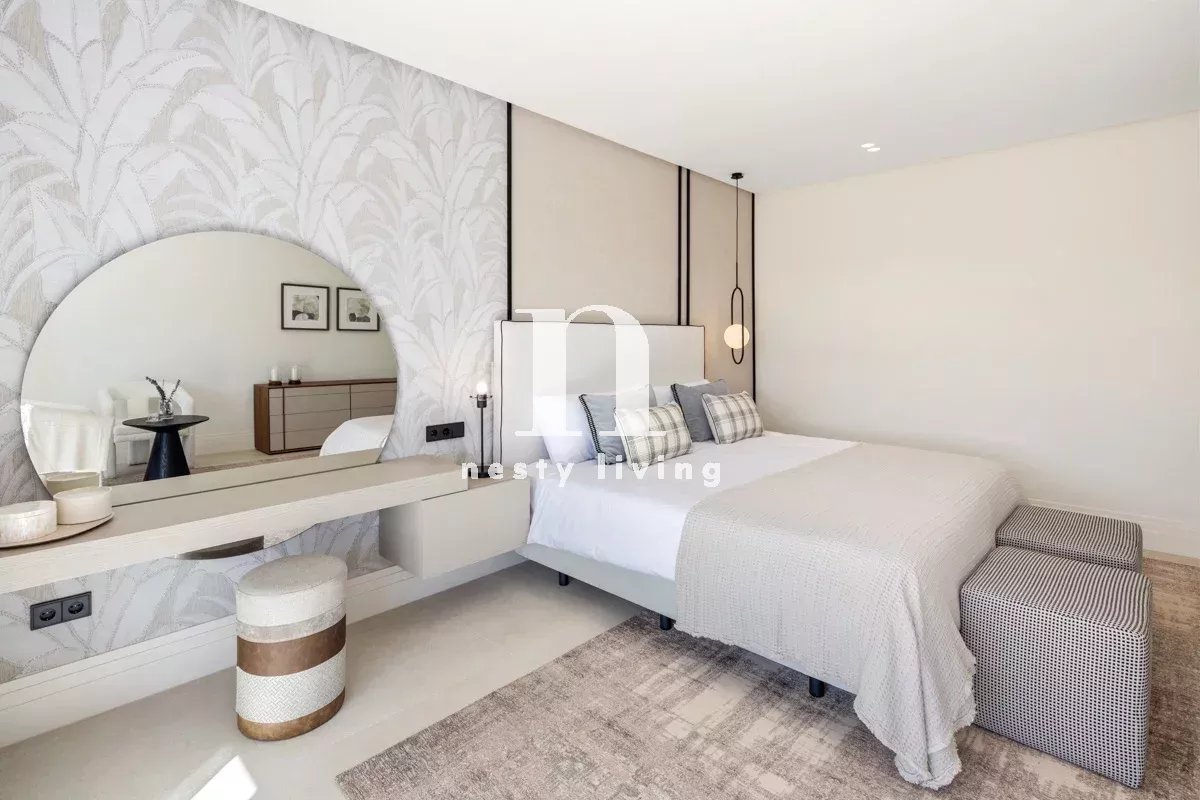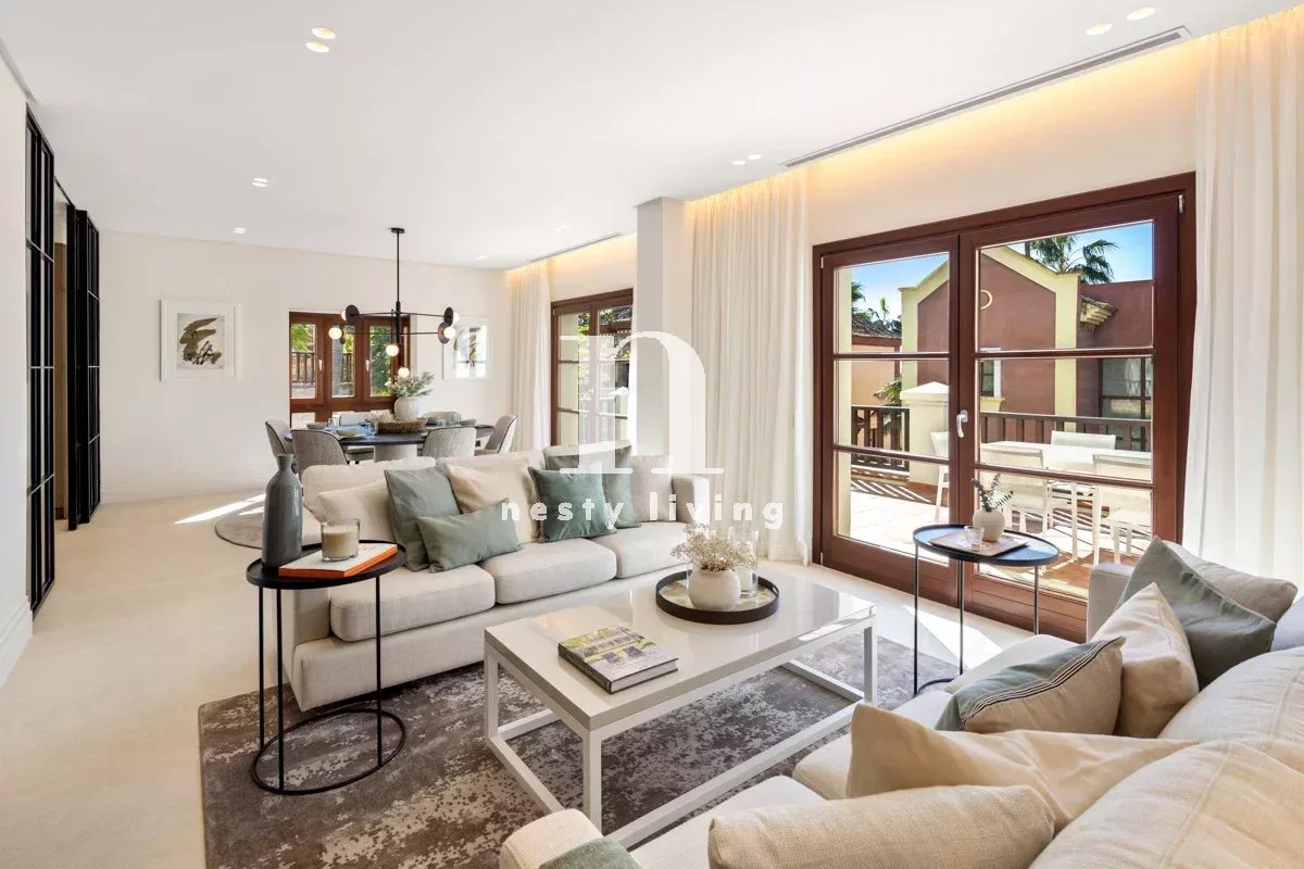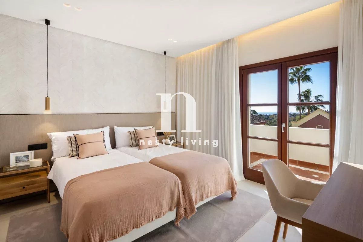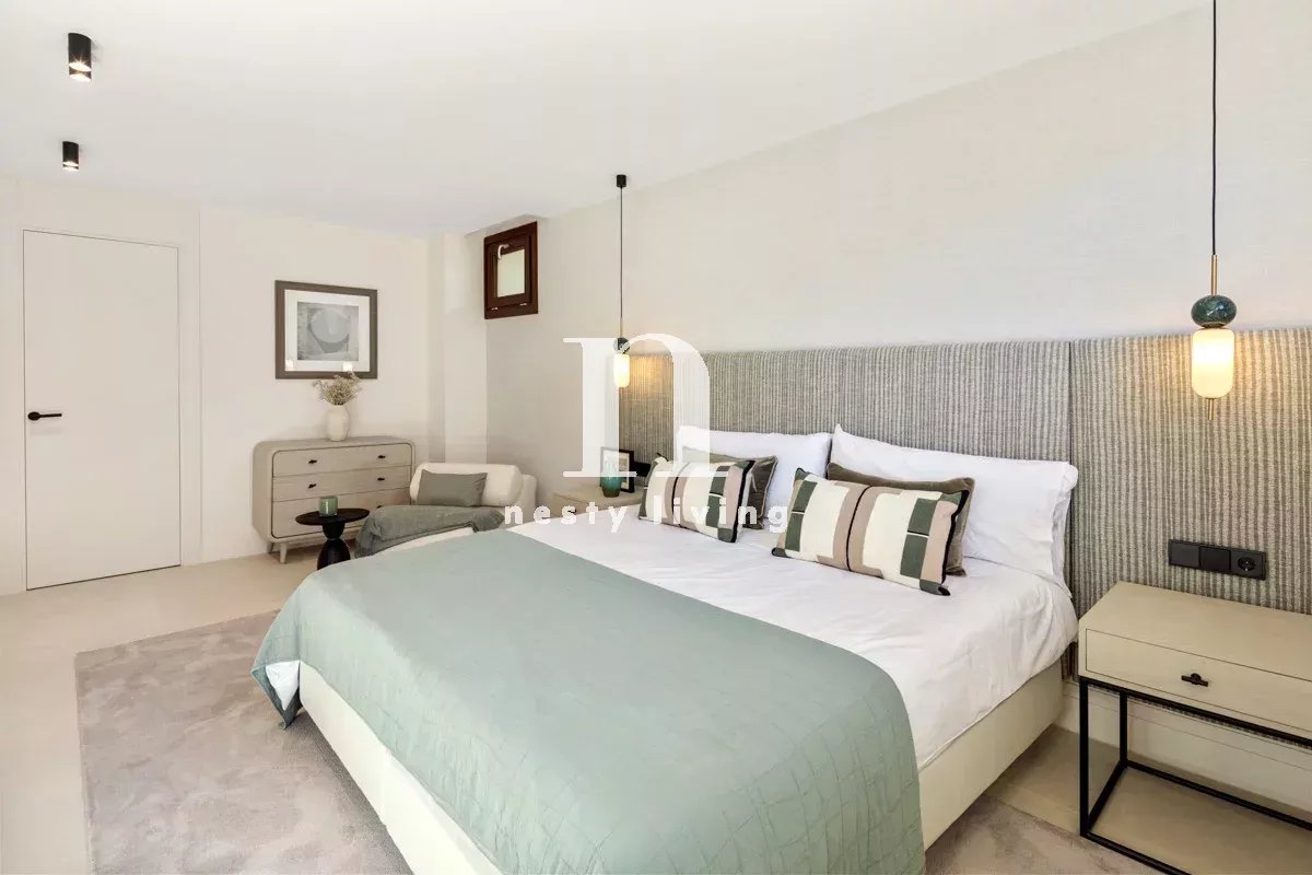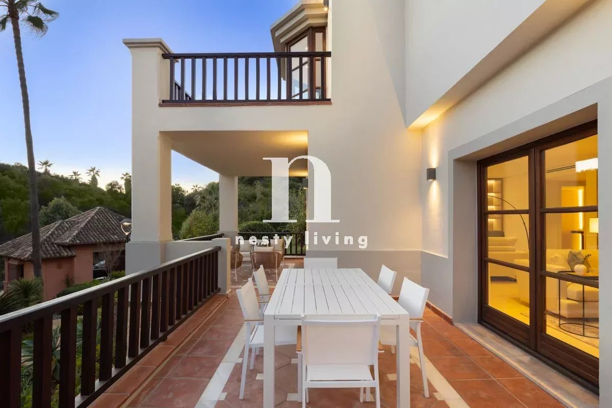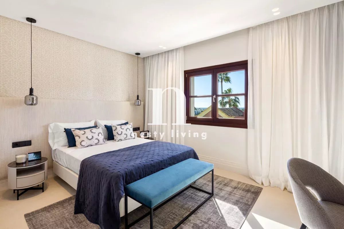 La Capellanía 1 est une charmante villa méditerranéenne qui bénéficie d'un emplacement de choix dans l'urbanisation de La Capellanía, située sur le Golden Mile de Marbella. Cette villa rappelle les villas méditerranéennes traditionnelles, avec ses murs blancs et ses tuiles traditionnelles. Capellanía 1 bénéficie également d'un grand nombre de terrasses, permettant aux résidents de profiter des espaces extérieurs. Les terrasses offrent des espaces de détente et des repas en plein air, ainsi qu'un accès direct aux niveaux du rez-de-chaussée. Cette villa bénéficie d'un accès à un magnifique jardin commun, qui est méticuleusement entretenu et permet un sentiment d'appartenance à la communauté. Il y a également une grande piscine commune dont on peut profiter tout au long de l'année. Les intérieurs de La Capellanía 1 ont été entièrement rénovés et présentent un mobilier et des installations contemporains. Les intérieurs respirent la sophistication moderne et le confort, avec une palette de couleurs élégantes et des touches de marbre et de bois élégantes disséminées dans les intérieurs. L'espace de vie présente un plan ouvert, reliant la salle à manger intime aux espaces de vie formels et informels. L'accès direct à la terrasse depuis cette zone permet une circulation fluide entre l'intérieur et l'extérieur. La cuisine est reliée à la salle à manger, mais reste séparée de celle-ci grâce à d'élégantes portes en verre. La cuisine est ultramoderne, avec un merveilleux îlot en marbre et d'élégants placards en bois. Les nombreux espaces de rangement et de travail ajoutent un niveau de fonctionnalité à la cuisine. La cuisine est également entièrement équipée d'appareils électroménagers ultramodernes. Réparti sur trois niveaux, le niveau supérieur de la propriété est consacré aux chambres bien aménagées, chacune conçue avec élégance et dotée de sa propre atmosphère relaxante. La chambre principale vole la vedette, avec des choix d'aménagement intérieur étonnants, fonctionnels et confortables. Elle dispose d'une terrasse privée qui donne sur les environs. La salle de bains de la chambre principale est équipée d'une douche, d'une baignoire autonome et d'un superbe meuble à double vasque avec des accessoires en marbre et en bois, ainsi qu'un éclairage LED flatteur. Le sous-sol est réservé à une superbe salle de divertissement qui abrite un espace TV et un bar. La salle de sport y est reliée. Un grand espace de rangement et une buanderie ajoutent également un niveau de fonctionnalité. La Capellanía bénéficie également d'un garage privé moderne pouvant accueillir jusqu'à 3 voitures.