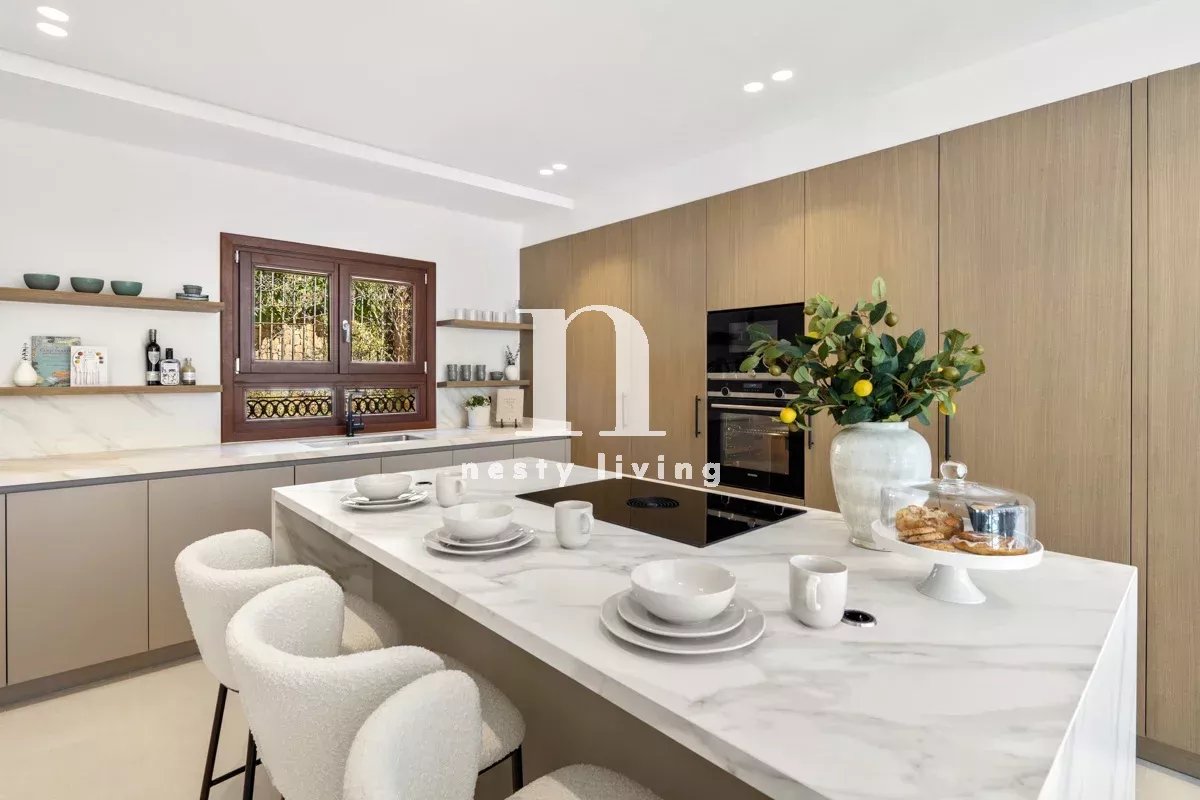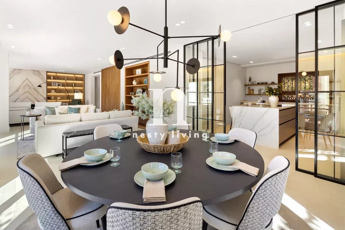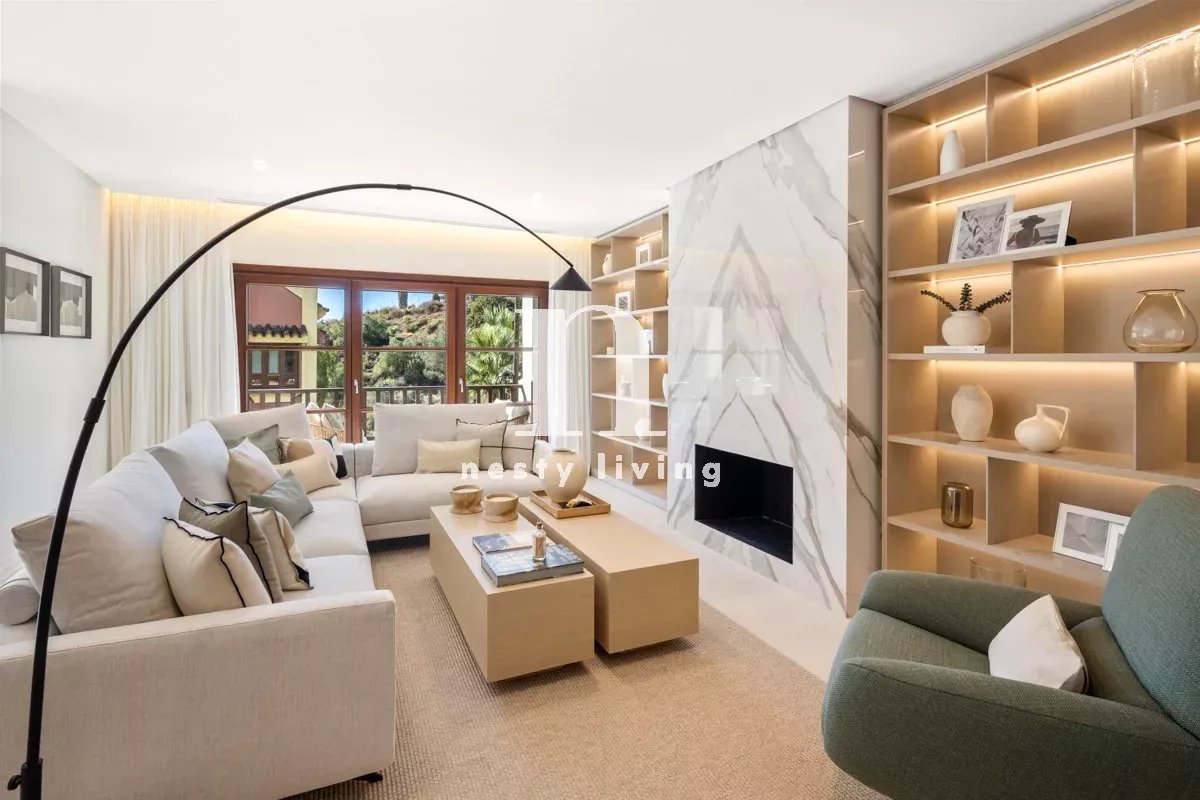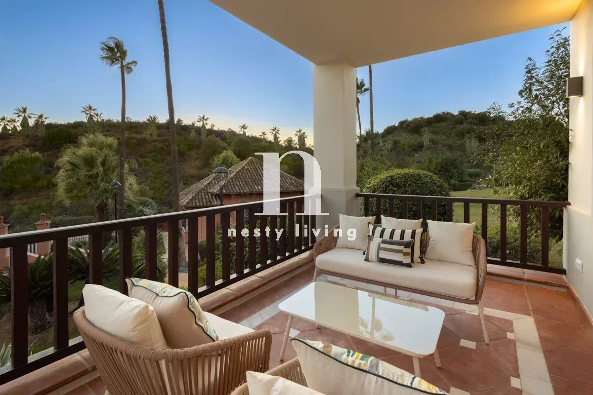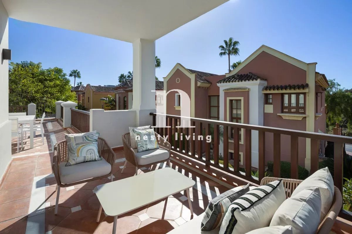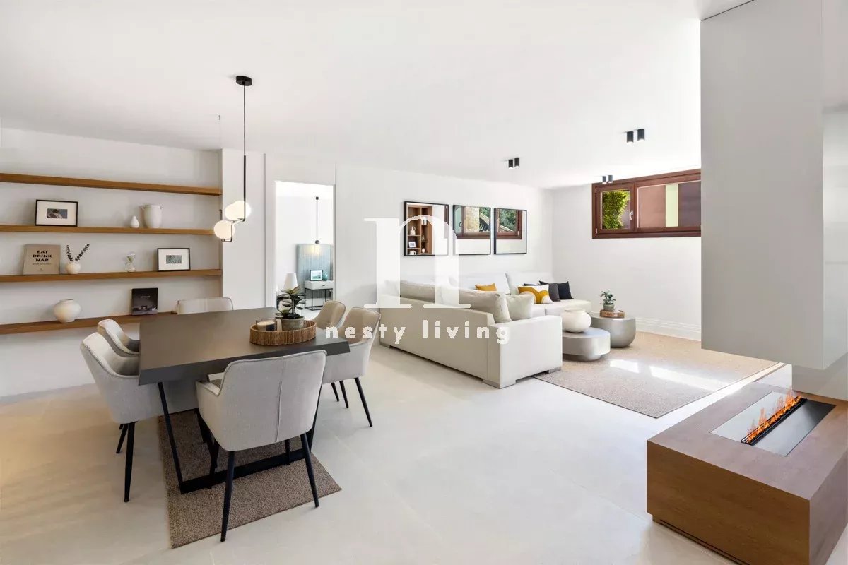 La Capellanía 1 est une charmante villa méditerranéenne qui bénéficie d'un emplacement de choix dans l'urbanisation de La Capellanía, située sur le Golden Mile de Marbella. Cette villa rappelle les villas méditerranéennes traditionnelles, avec ses murs blancs et ses tuiles traditionnelles. Capellanía 1 bénéficie également d'un grand nombre de terrasses, permettant aux résidents de profiter des espaces extérieurs. Les terrasses offrent des espaces de détente et des repas en plein air, ainsi qu'un accès direct aux niveaux du rez-de-chaussée. Cette villa bénéficie d'un accès à un magnifique jardin commun, qui est méticuleusement entretenu et permet un sentiment d'appartenance à la communauté. Il y a également une grande piscine commune dont on peut profiter tout au long de l'année. Les intérieurs de La Capellanía 1 ont été entièrement rénovés et présentent un mobilier et des installations contemporains. Les intérieurs respirent la sophistication moderne et le confort, avec une palette de couleurs élégantes et des touches de marbre et de bois élégantes disséminées dans les intérieurs. L'espace de vie présente un plan ouvert, reliant la salle à manger intime aux espaces de vie formels et informels. L'accès direct à la terrasse depuis cette zone permet une circulation fluide entre l'intérieur et l'extérieur. La cuisine est reliée à la salle à manger, mais reste séparée de celle-ci grâce à d'élégantes portes en verre. La cuisine est ultramoderne, avec un merveilleux îlot en marbre et d'élégants placards en bois. Les nombreux espaces de rangement et de travail ajoutent un niveau de fonctionnalité à la cuisine. La cuisine est également entièrement équipée d'appareils électroménagers ultramodernes. Réparti sur trois niveaux, le niveau supérieur de la propriété est consacré aux chambres bien aménagées, chacune conçue avec élégance et dotée de sa propre atmosphère relaxante. La chambre principale vole la vedette, avec des choix d'aménagement intérieur étonnants, fonctionnels et confortables. Elle dispose d'une terrasse privée qui donne sur les environs. La salle de bains de la chambre principale est équipée d'une douche, d'une baignoire autonome et d'un superbe meuble à double vasque avec des accessoires en marbre et en bois, ainsi qu'un éclairage LED flatteur. Le sous-sol est réservé à une superbe salle de divertissement qui abrite un espace TV et un bar. La salle de sport y est reliée. Un grand espace de rangement et une buanderie ajoutent également un niveau de fonctionnalité. La Capellanía bénéficie également d'un garage privé moderne pouvant accueillir jusqu'à 3 voitures.