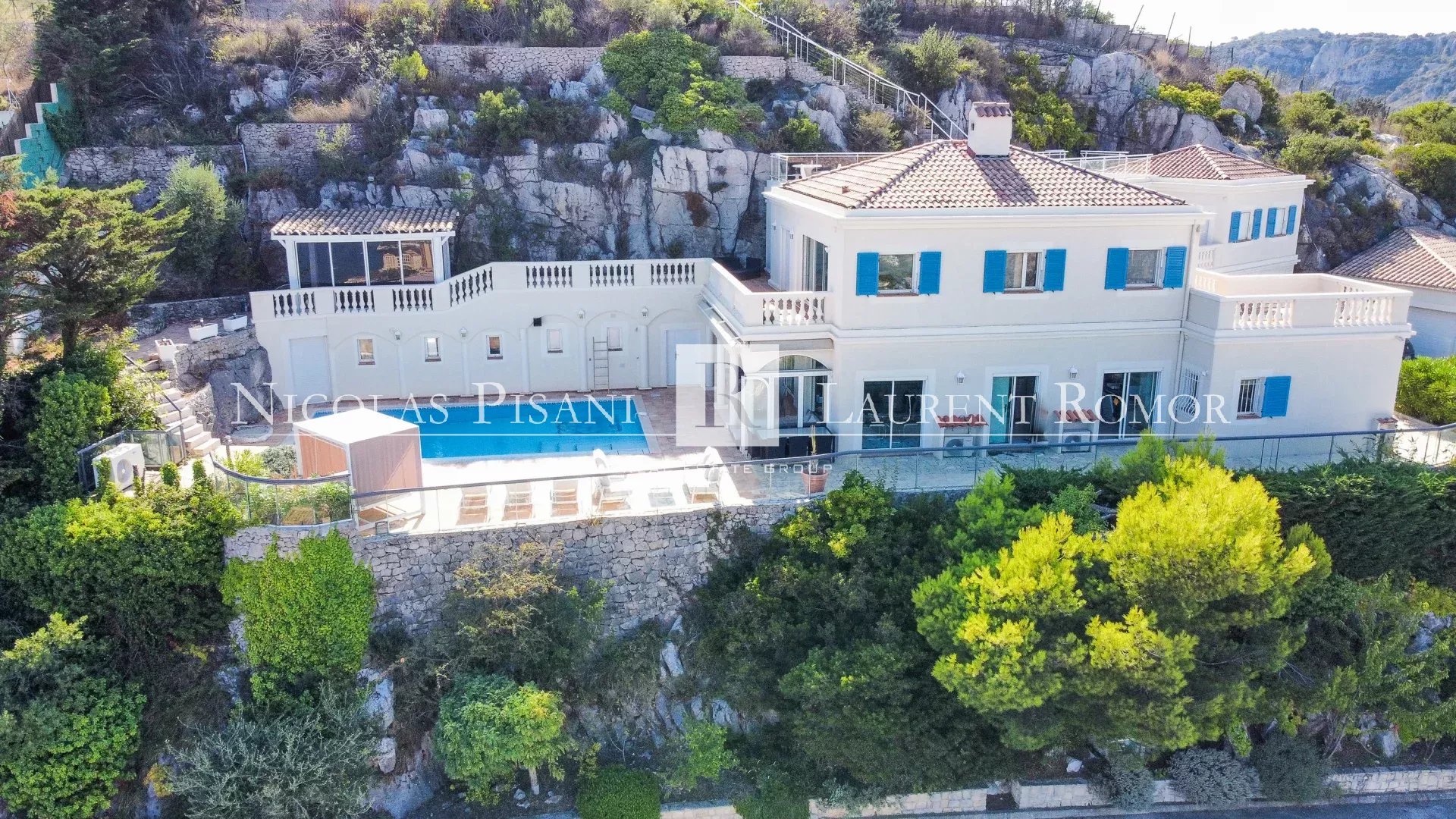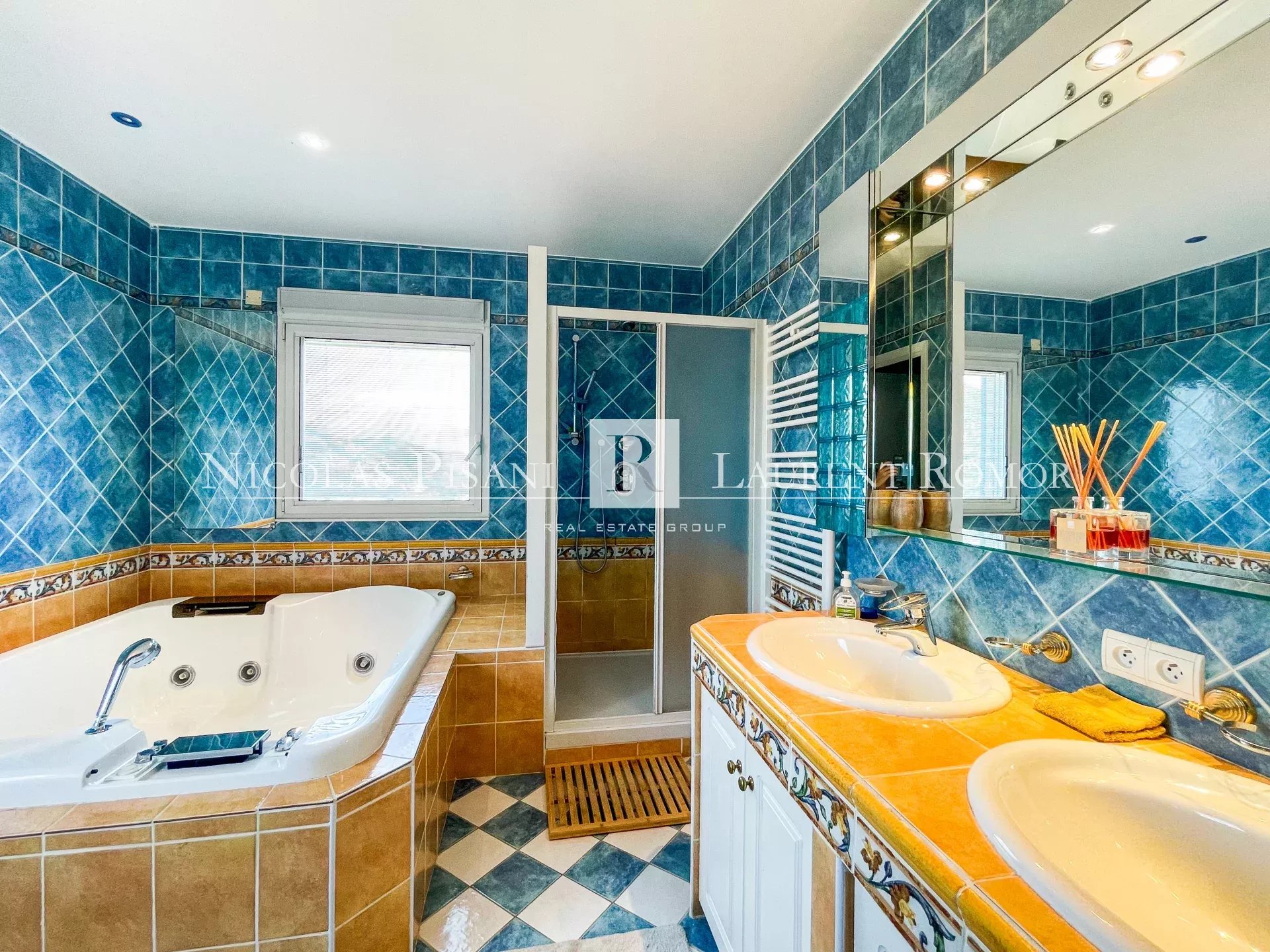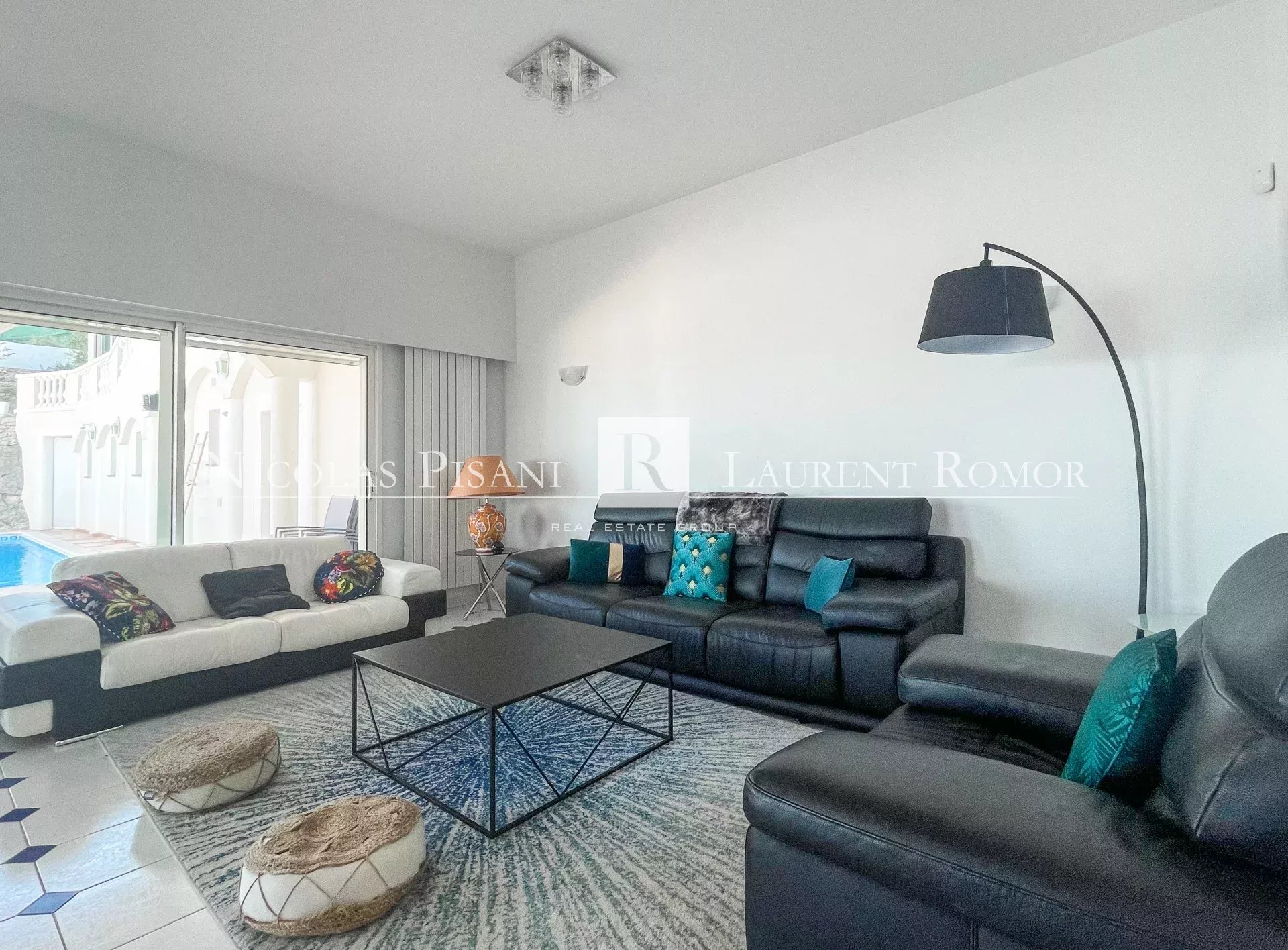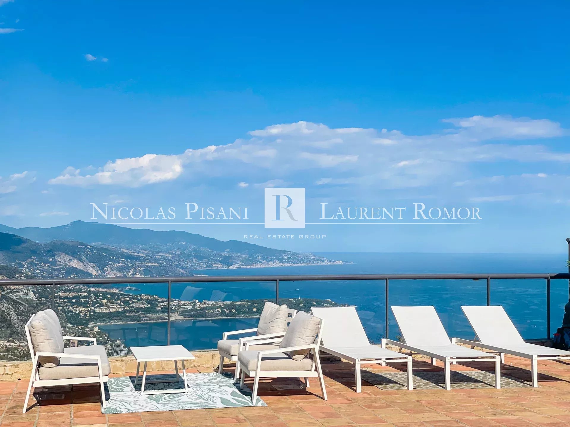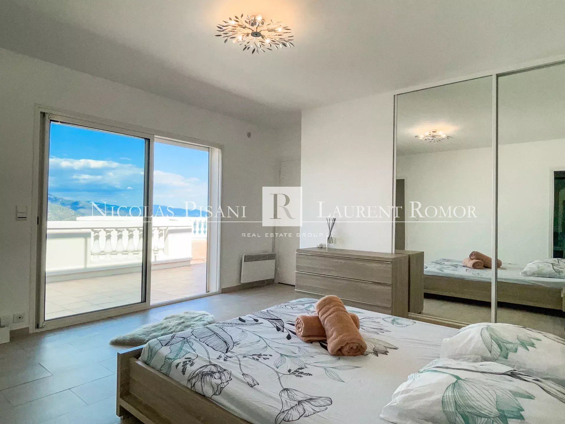 luxueuse villa de 4 chambres, avec bureau plus un appartement indépendant, située au calme et offrant une vue imprenable sur la mer, les collines, l'Italie, la Principauté de Monaco. La villa d'environ 350 m² peut accueillir 10 personnes confortablement. Elle se compose d'un spacieux séjour donnant sur une terrasse, d'une belle piscine (chauffée), d'une cuisine indépendante, d'un bureau, d'une salle de télévision, d'une chambre et d'un sauna. A l'étage, vous bénéficierez de 3 belles chambres avec terrasse dont une chmabre de maître avec dressing, de 2 salles de bains équipées, également d'une douche et d'un wc. Vous aurez la possibilité de recevoir des invités en toute indépendance, dans la deuxième partie de la villa composée d'un séjour, d'un coin cuisine, d'une chambre avec placard, d'une salle de bain avec toilettes. Vous accéderez facilement à la villa en voiture, elle dispose de 2 garages intérieurs (capacité 3 ou 4 voitures) et plusieurs places extérieures. Villa rénovée en 2021, climatisée, internet : wifi/Fibre