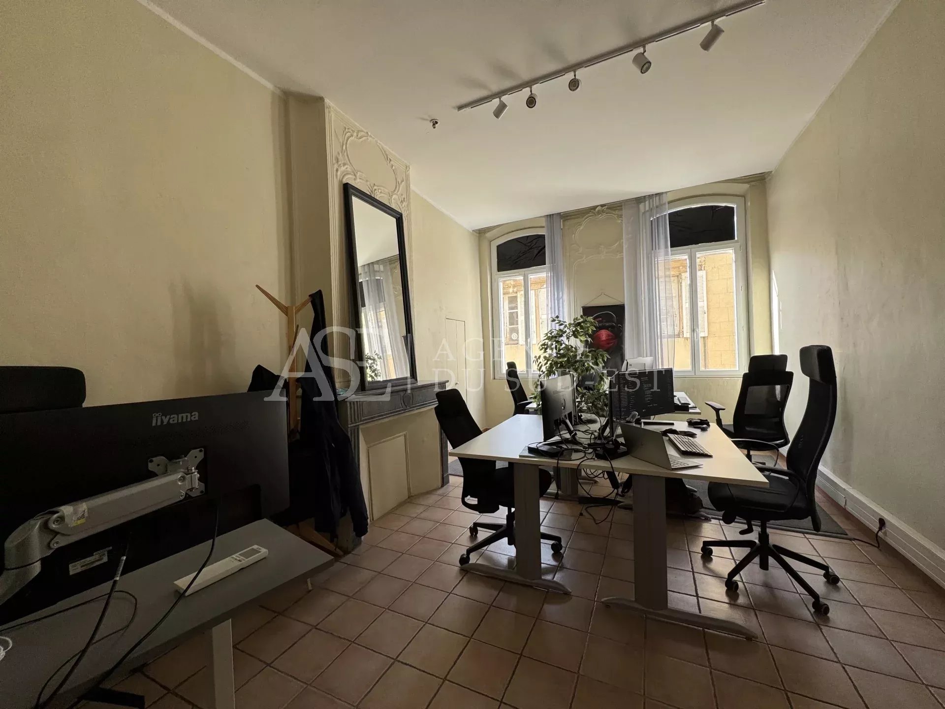 Nous proposons ce grand local de presque 140m² idéalement placé, dans une rue perpendiculaire au Cours Mirabeau. Ce local se compose d'un hall d'entrée, d'une pièce à usage de cuisine, 4 bureaux et un wc. Au deuxième étage d'un bel immeuble. Disponible fin janvier.