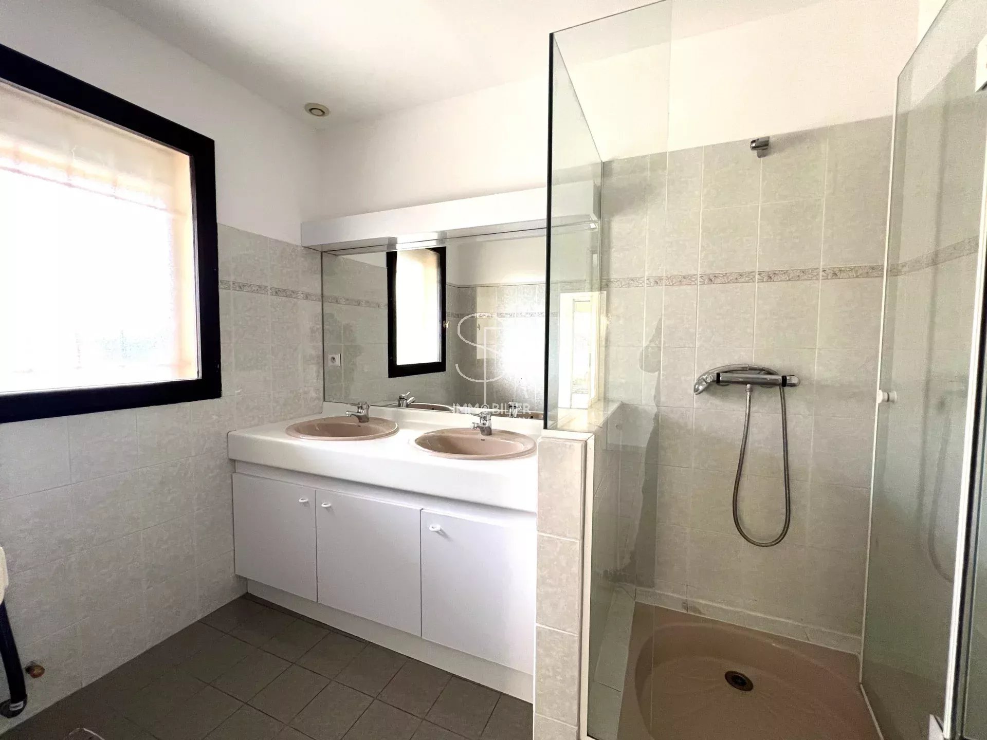 Coup de cœur · Rare · Plein Sud Villeneuve-Loubet, au cœur du prestigieux Domaine des Hauts de Vaugrenier (130 hectares de nature, 11 hameaux privés, 24 km de rues, 3 lacs, 3 piscines dont une olympique, 8 courts de tennis, commerces et gardiennage 24/24). Nouveauté : coup de cœur absolu pour cette villa patio 2P de plain-pied d’environ 50 m², avec 55 m² d’extérieurs plein Sud. Accès par un patio d’environ 20 m². Séjour traversant ouvrant à la fois sur le patio et sur une terrasse plein Sud d’environ 20 m², avec vue dégagée sur la verdure et aperçu mer. Chambre avec salle de bains attenante, donnant sur la terrasse. Cuisine séparée. WC indépendants. Jouissance d’un jardinet d’environ 15 m². Placards. Parking extérieur. Un cadre exceptionnel dans l’unique domaine “à l’américaine” en France. Bien soumis au statut de la copropriété. Charges annuelles : 2 676 €. Procédures en cours : aucune. Honoraires à la charge du vendeur.
