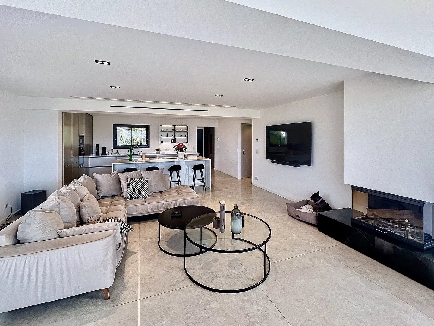 Dans un secteur résidentiel, en position dominante, villa contemporaine aux prestations de qualité et bénéficiant d'une superbe vue dégagée sur les collines environnantes. Elle se compose d'une vaste pièce de vie de près de 70m² baignée de lumière avec cuisine entièrement équipée ouvrant sur une terrasse, puis l'espace piscine en contrebas. Le coin nuit comprend une suite parentale de 26m² avec accès terrasse, deux autres chambres ensuite, et une chambre d'appoint / bureau. Au niveau inférieur un appartement indépendant d'environ 50m² avec salon, chambre et salle de bains ; une salle de jeu, une cave à vin, un bureau et un grand garage . Superbe jardin paysagé, deux accès indépendants, et de nombreux espaces de stationnement. A 2km du golf Royal Mougins et 5km de Mougins School.