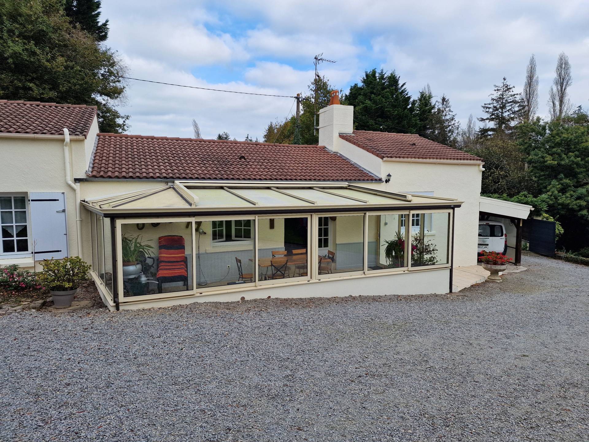 Viager occupé au sud de la commune en campagne. A 4kms de CHAUVÉ, 16 kms du bord de mer de PORNIC et 35 kms de NANTES. Cette jolie petite maison de la fin du XIXème, et de 83 m² sur un grand terrain d'environ 2000 m², vous ravira par son environnement bucolique : du relief, des grands arbres, un cours d'eau... Orientée au Sud, elle se compose d'une grande véranda de 22 m², un salon agrémenté d'un poêle à granulés, une salle à manger, une cuisine aménagée/équipée, deux chambres, une buanderie, une salle d'eau avec un WC. Un préau, un garage, un appentis de stockage à l'arrière de la maison, une cave, un atelier. une chambre d'appoint. Chauffage électrique. Huisseries PVC dv. Volets battants et roulants. Portail d'entrée automatisé. Store banne - Valeur libre du bien 217.000 € - Calcul sur dame de 78 ans et un homme de 81 ans - Bouquet 91.275 € (honoraires agence inclus) - Rente viagère mensuelle 210 € - Taxe foncière 760 € dont 186 € de taxe ordure ménagère récupérable auprès des occupants Cette maison peut être évolutive grâce à ses nombreuses dépendances. Un investissement nature sans se ruiner à 16 kms de la plage.