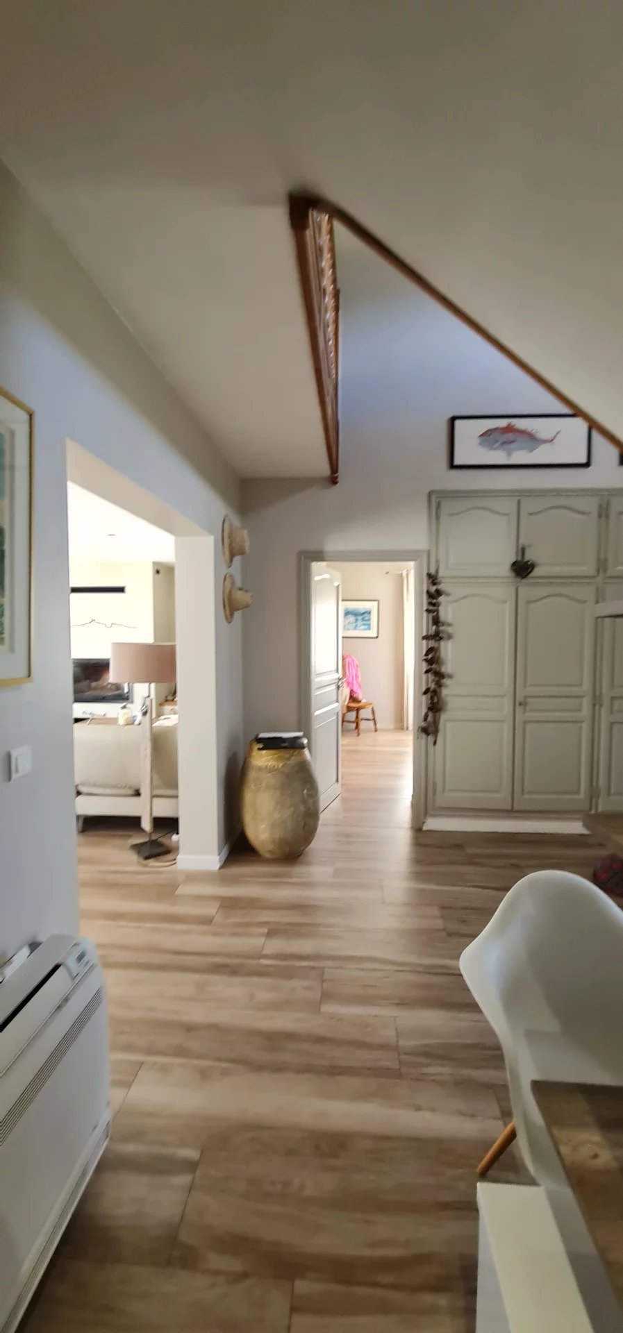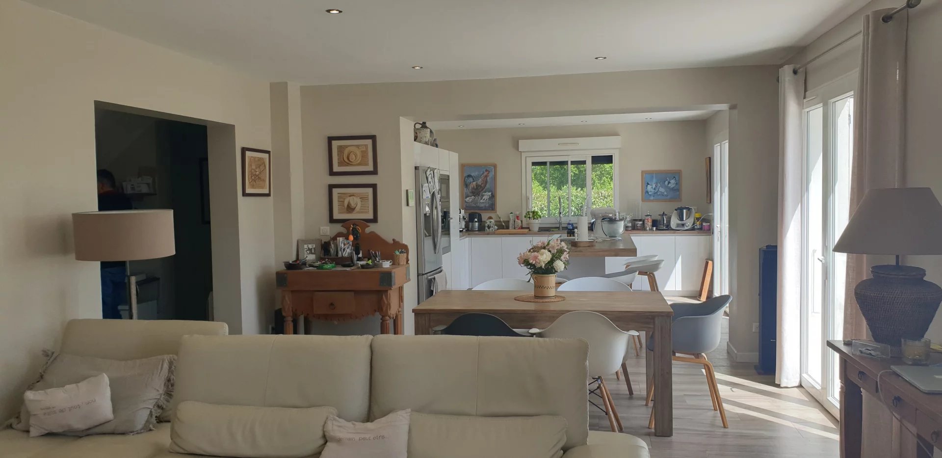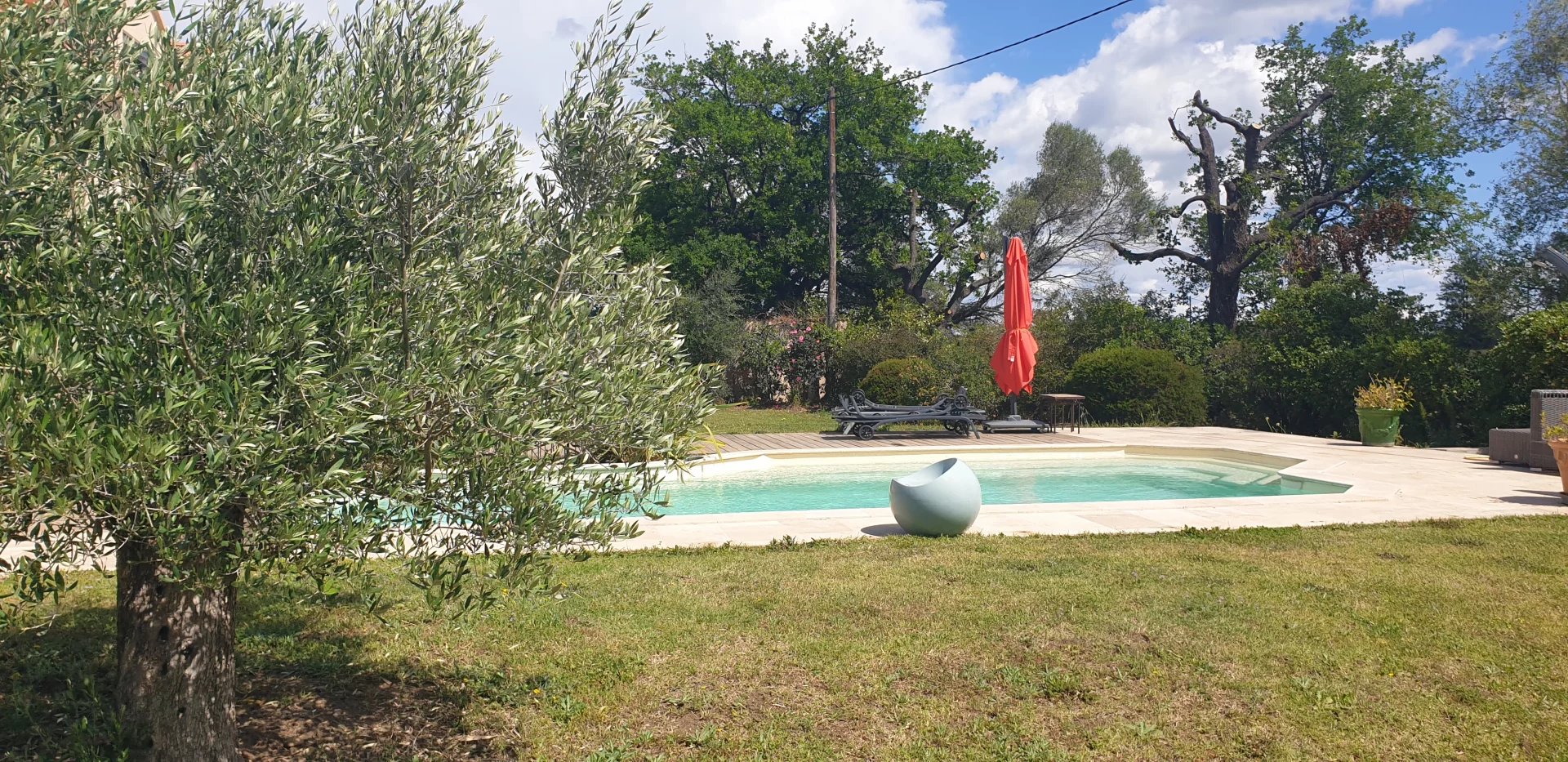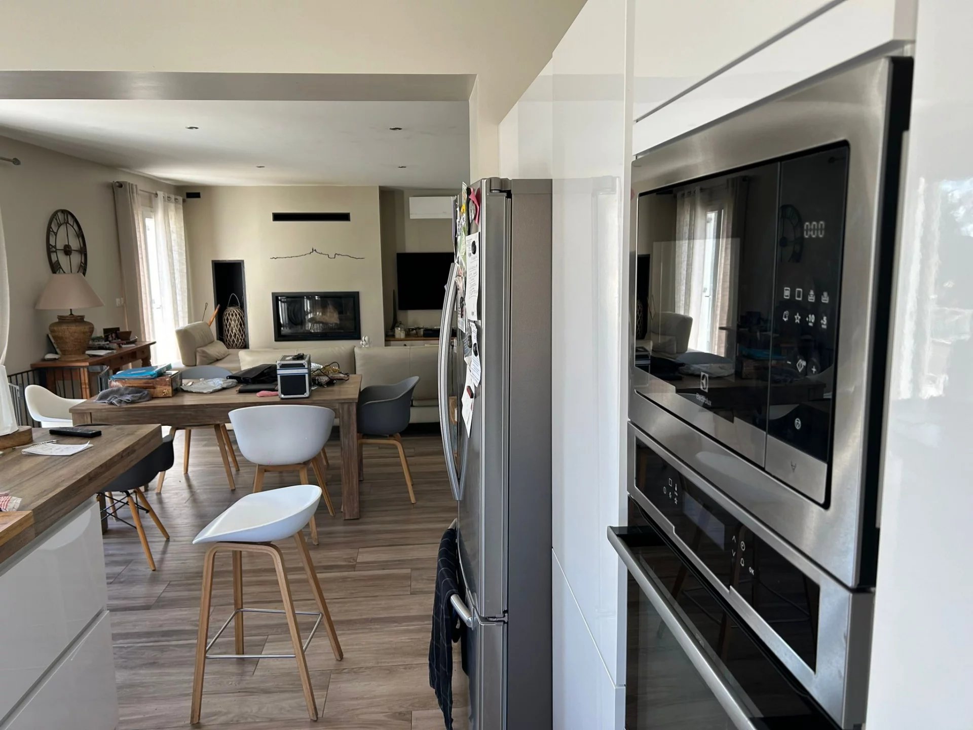 Belle maison à étage et sa piscine. Un hall d'entrée et son plafond cathédrale, une cuisine équipée ouverte sur un spacieux séjour, un wc d'invité, 1 chambre et son placard, à l'étage trois chambres et leurs placards, uns SDB, un dressing. Belles prestations de rénovation, climatisation réversible, cheminée insert récent, volets roulants solaire. Une Piscine 9 x 4 au sel. Un Garage de 30 m² et un car port. Portail électrique. Eau Somivac agricole. Terrain clôt et arboré de 2440 m².