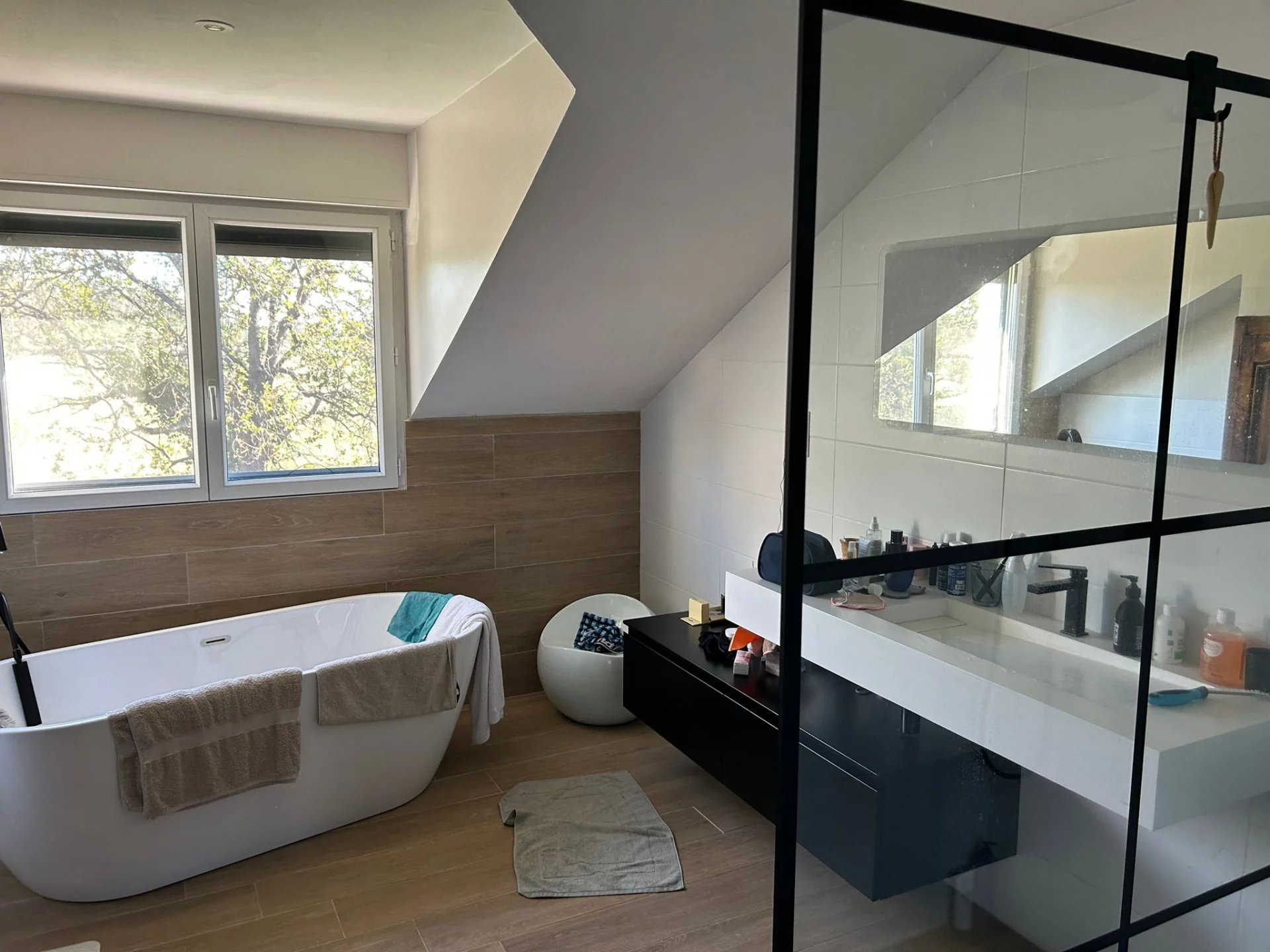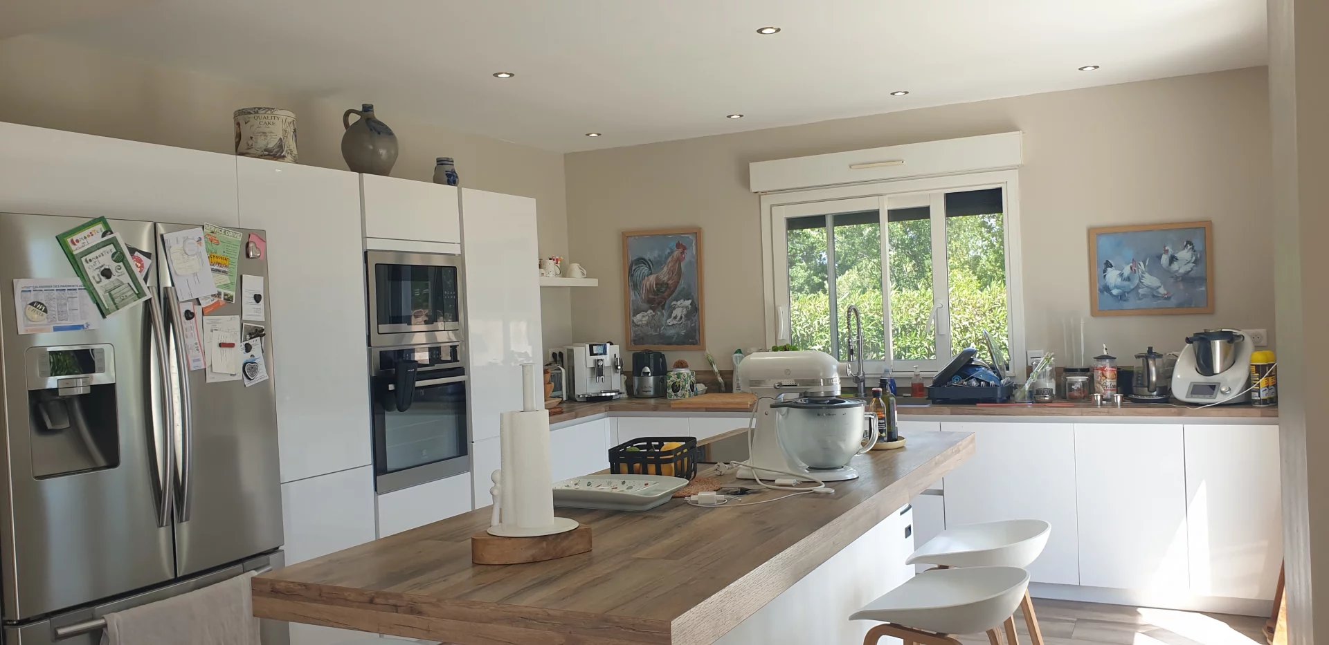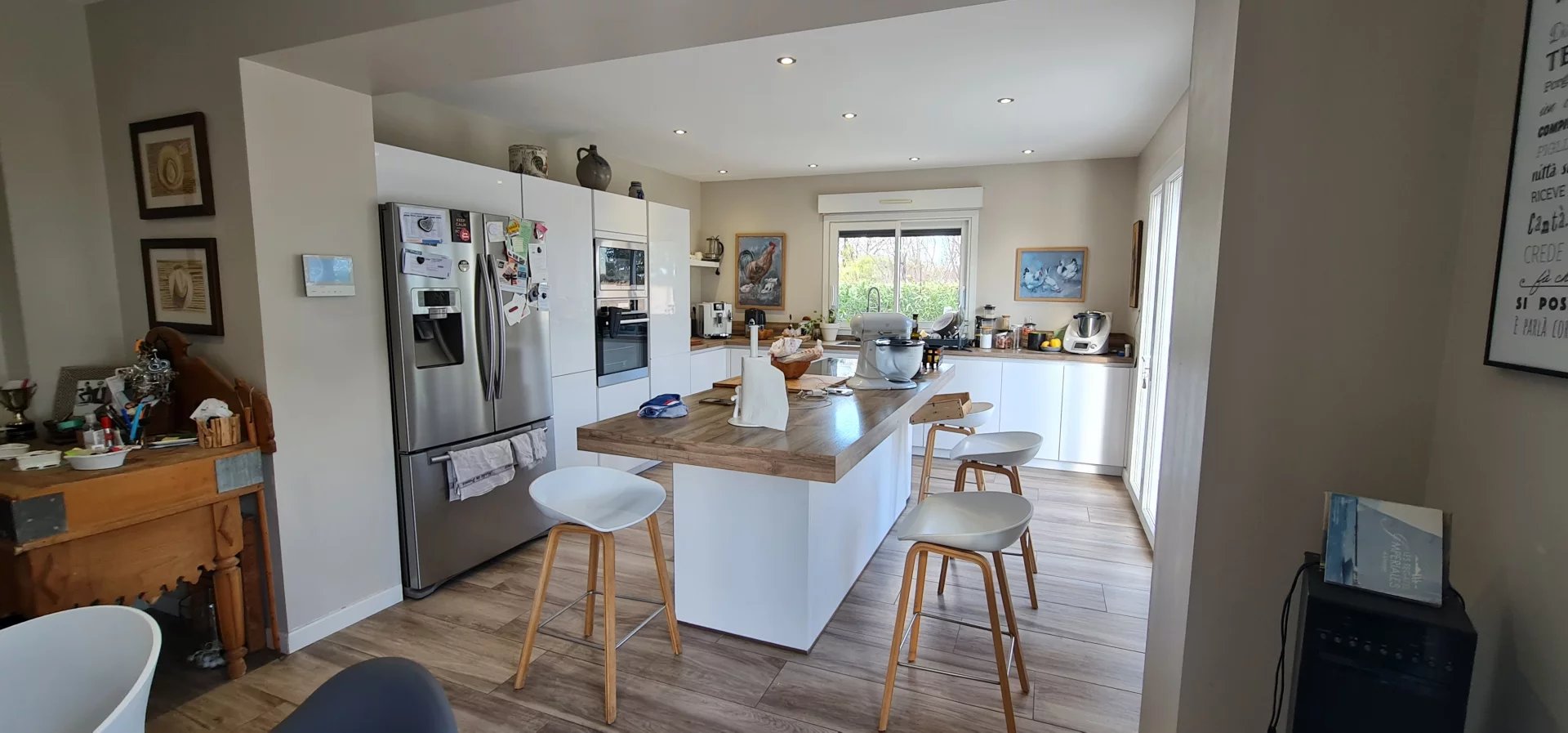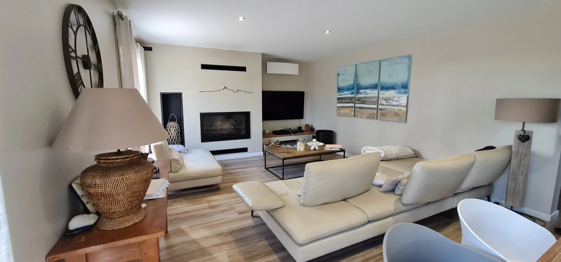 Belle maison à étage et sa piscine. Un hall d'entrée et son plafond cathédrale, une cuisine équipée ouverte sur un spacieux séjour, un wc d'invité, 1 chambre et son placard, à l'étage trois chambres et leurs placards, uns SDB, un dressing. Belles prestations de rénovation, climatisation réversible, cheminée insert récent, volets roulants solaire. Une Piscine 9 x 4 au sel. Un Garage de 30 m² et un car port. Portail électrique. Eau Somivac agricole. Terrain clôt et arboré de 2440 m².