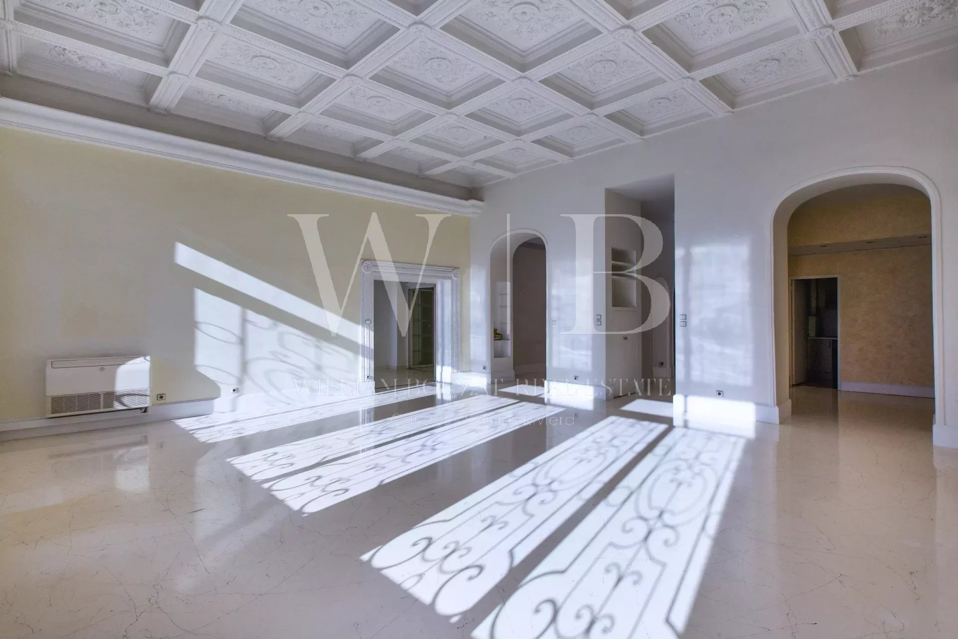 Situé dans le quartier résidentiel de Montfleury, au sein d'un palais construit en 1870 et disposant d'un très joli parc et gardien à demeure, appartement 5 pièces de 246,08 m² Loi Carrez (249,21 m² habitable) s’ouvrant sur une loggia de 17 m². Au rez-de-chaussée, il est composé de deux chambres, une cuisine équipée, un salon, un vaste double séjour salle à manger, une salle de douche et une buanderie. À l'étage, deux chambres et une salle de bains. Au calme absolu, avec une hauteur sous plafond de 4,43 m², disposant d’impressionnants volumes et entièrement baigné de lumière (exposition plein Sud), ce bien unique est situé à seulement quelques minutes à pied de la Croisette, des rues commerçantes et de la plage (à proximité immédiate du parc Montfleury, le complexe sportif de Cannes, muni de courts de tennis et de la plus grande piscine couverte indoor-outdoor.) Une cave est inclus, plusieurs emplacements de parking sécurisés au sein de la résidence. Les informations sur les risques auxquels ce bien est exposé sont disponibles sur le site Géorisques : georisques.gouv.fr