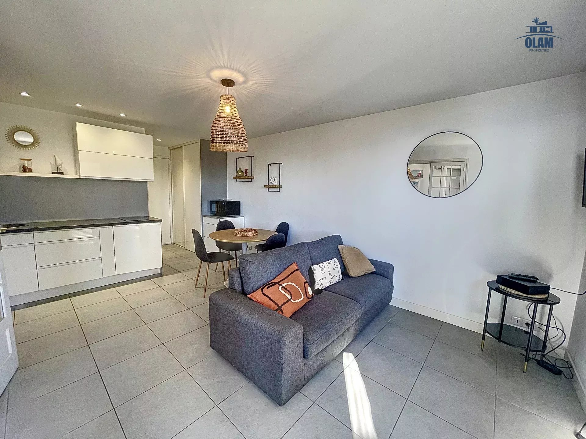 [VENDU] Cet appartement se situe dans une petite résidence, à 50 mètres des plages de Cannes, avec une splendide vue sur la mer et les îles de Lérins. Expo Sud , Sud/Est. Ce bien est composé d'une entrée avec rangement, d'une cuisine , équipée, ouverte sur séjour lumineux, une chambre,une salle de douche avec toilettes. Le séjour ainsi que le chambre on un accès direct sur la terrasse de 4M2, (très lumineux). Décorer avec goût Parking collectif - Cave - Ascenseur Climatisation réversible Faibles charges 65€/mois