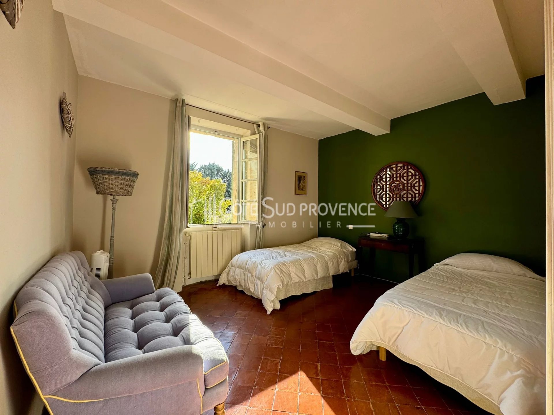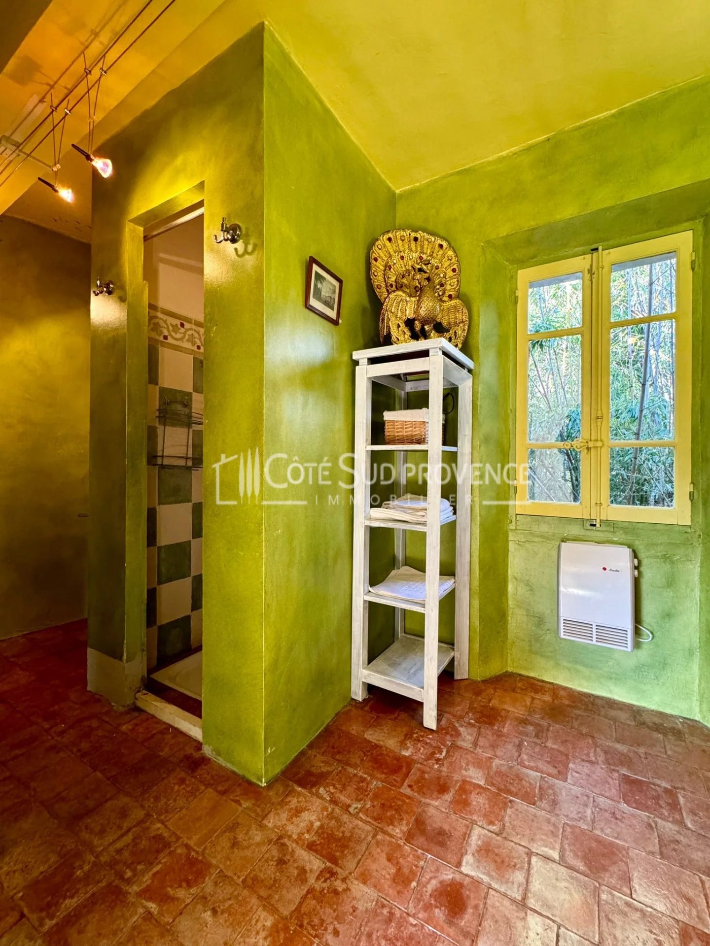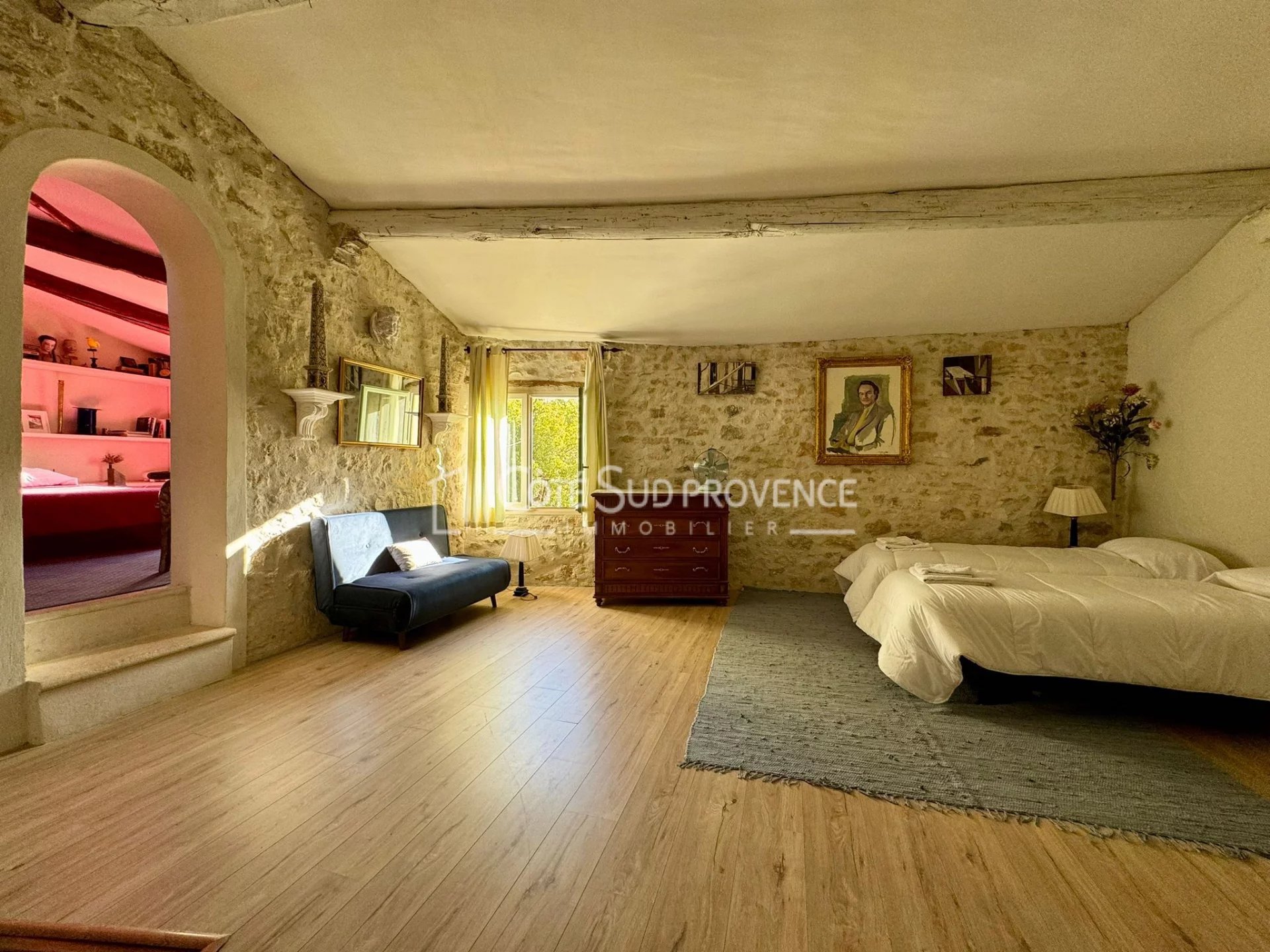 40 mn d'Avignon TGV et 15 mn de Gordes, Dans un cadre privilégié au calme, au cœur du village de Saint Didier tous commerces à l'année, Mas en pierres de pays restauré sur 3 niveaux sur une surface totale d’environ 300 m² dont studio indépendant, l'ensemble sur environ 450 m² de terrain clos de murs arboré et paysagé, garage, espace parking au Nord et piscine béton 9 x 4 m. Grand séjour avec cheminée, cuisine équipée avec salle repas, bureau, 3 montées d’escalier, 7 chambres, dressing, une salle de bain et quatre salles d'eau.