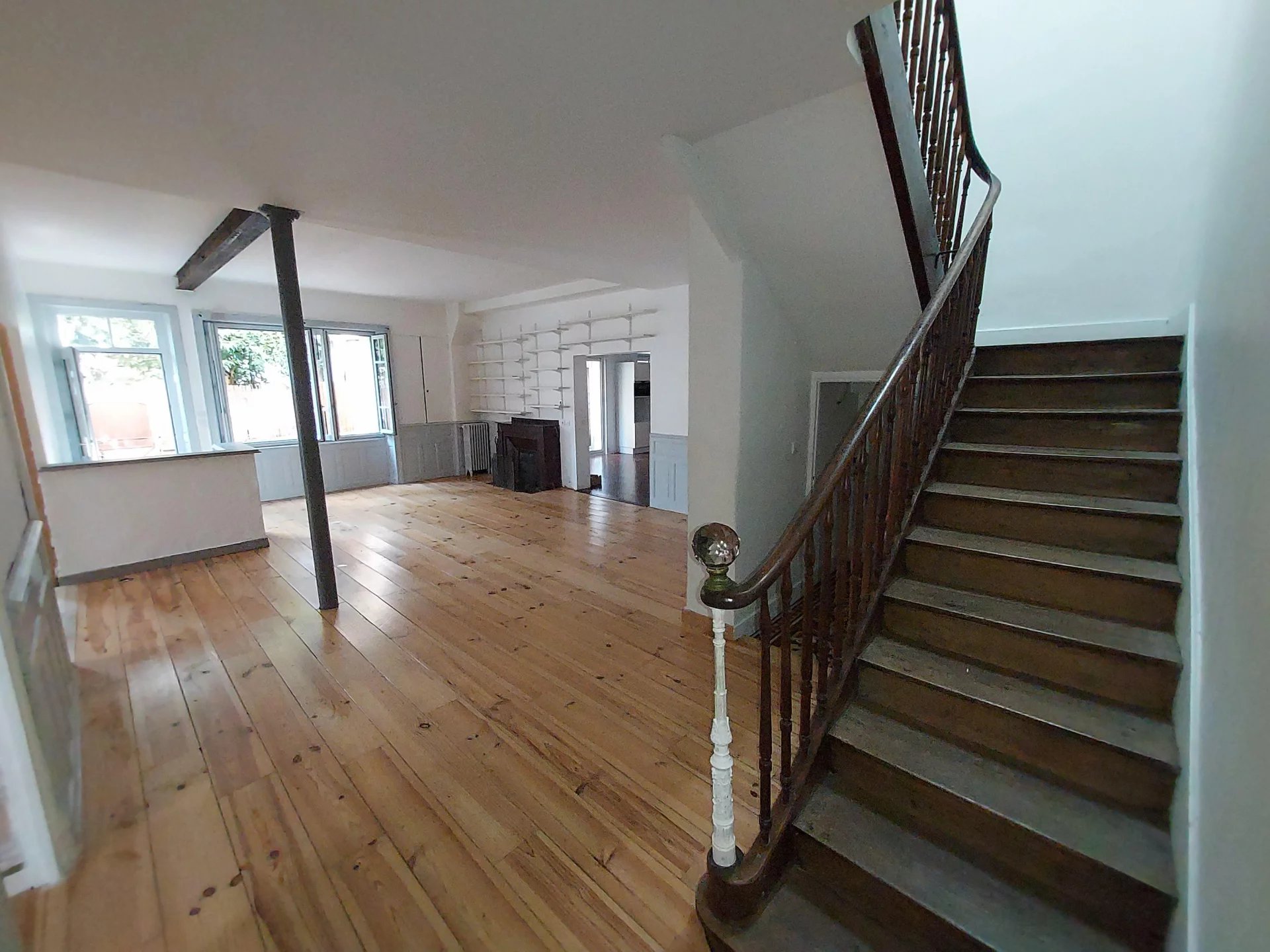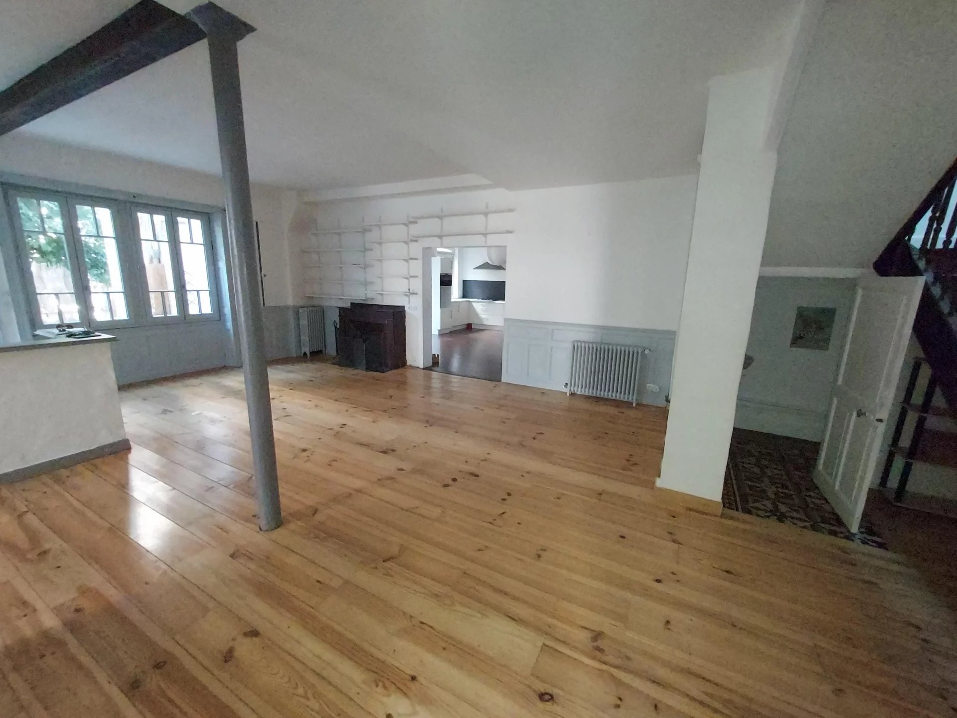 AUCH - Centre haute ville Maison de ville d'environ 175m² comprenant au rez-de-chaussée spacieuse pièce à vivre avec cheminée, bibliothèque, cuisine équipée donnant accès sur une terrasse, cellier/buanderie, une chambre avec dressing et salle d'eau, un wc indépendant. A l'étage un grand palier desservant 4 chambres, une salle d'eau, une salle de bains et un wc. Chauffage central gaz de ville. Beaux éléments anciens. Emplacement idéal, proche de toutes les commodités dans quartier calme.