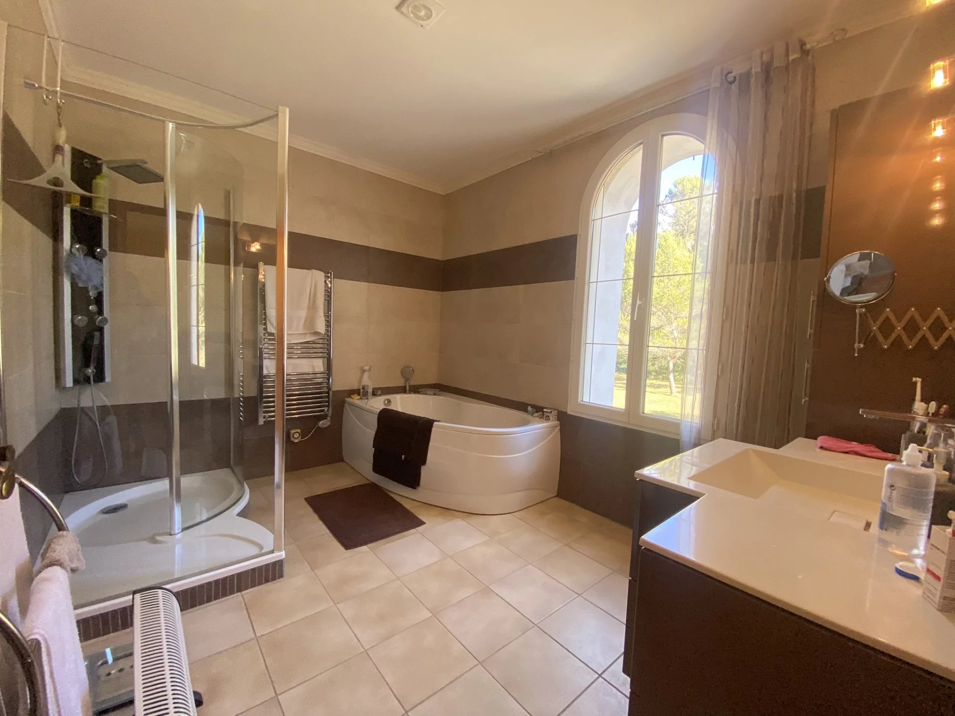 Située dans un écrin de verdure de 4,5 hectares, cette demeure de caractère est construite sur des vestiges du 15ème siècle. 20 ans de dur labeur ont été nécessaires afin d'obtenir une rénovation respectant l'histoire et le lieu. Au rez-de-chaussée, vous serez séduit par ses arches en pierre traversant la cuisine et la pièce de vie totalisant 108m² ouvrant vers une vaste terrasse, barbecue et terrain de pétanque. À l'étage, une suite parentale avec douche et baignoire à remous, 2 chambres avec salle de douche, dressing et toilette. Au sous-sol, une partie dédiée bar/cave à vin de 230m² aménageable à votre convenance. L'autre partie est constituée d'une cuisine annexe, buanderie, local technique et réserve ainsi que deux grands espaces stockage/atelier, à utiliser selon vos besoins. À l'extérieur, une piscine chauffée 9X4 avec volet roulant sécurisé ainsi qu'une plage aménagée avec douche et toilette. Côté nature, 1,5 hectare d'oliveraie comprenant 300 arbres, 4 variétés d'olives destinées à la table et à l'huile, 2 hectares de pinède, et 1 hectare de verger. Pour les amoureux d'automobile, un ensemble de 5 GARAGES séparés avec portails électriques. Plus d'info au 04 68 320 320 TOUCHE 1, Réf : LC861 / Honoraires charge vendeur. AGENCE ORPHEA-LC IMMOBILIER.