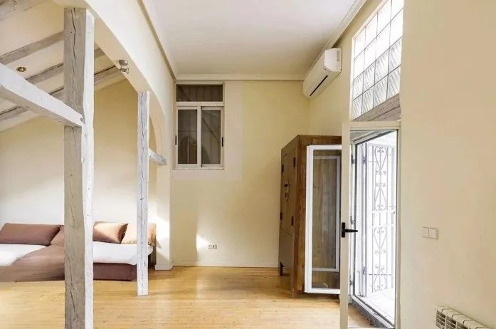 In the heart of the Justicia neighborhood, on the pedestrianized Calle Fuencarral, we find this magnificent penthouse. This duplex offers 110m² of living space, complemented by a 20m² terrace on the lower floor and a 25m² terrace on the upper floor. The entrance hall on the lower floor leads to a sunny living room with two distinct areas and direct access to the terrace, a spacious rustic-style kitchen, a large bedroom with two separate spaces, and a generous full bathroom. From the hall, a staircase leads to another well-sized bedroom with an en-suite bathroom on the upper floor. Features such as wooden floors, exposed beams, the bright east-facing terrace, and its prime location on a pedestrian street make this penthouse a highly sought-after property. This home is ideal for a couple or an individual looking to live in one of the most desirable areas of Justicia, with a spacious terrace that can be enjoyed year-round thanks to its excellent orientation. It is rented unfurnished.