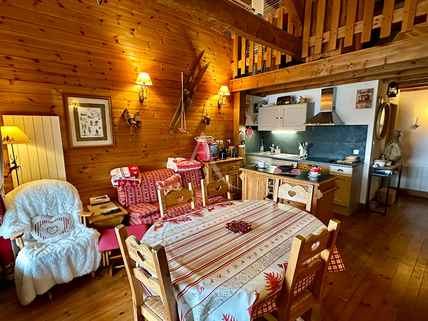Idéalement situé à seulement 50 mètres des pistes de ski, au coeur de la station et au pied des commerces et animations, ce studio cabine fonctionnel et chaleureux est une opportunité à ne pas manquer pour les amoureux de la montagne ! Disposition optimisée et confortable : *Entrée avec coin nuit cabine, équipé d'un lit mezzanine et d'un canapé clic-clac : parfait pour accueillir famille ou amis *Pièce de vie lumineuse avec coin cuisine très bien équipé, espace salon avec canapé-