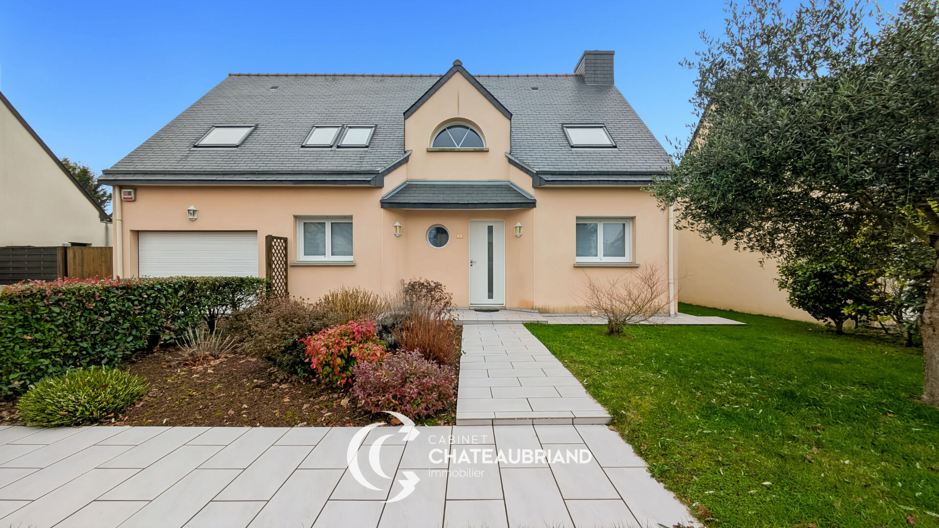 REF : DF-15641 - Prix : 244 950 euros Le Cabinet Chateaubriand Immobilier vous propose cette charmante maison de 1962, construction traditionnelle de très bonne qualité, comprenant un vaste espace de vie (45 m² de séjour plus 14 m² de cuisine), 4 chambres, salle de bains, rangements, cave, garage et dépendance. La maison est orientée est-ouest. Chauffage central au gaz de ville (chaudière de 2020). Jardin. Idéal pour famille avec accès commerces, écoles et diverses activités sporti