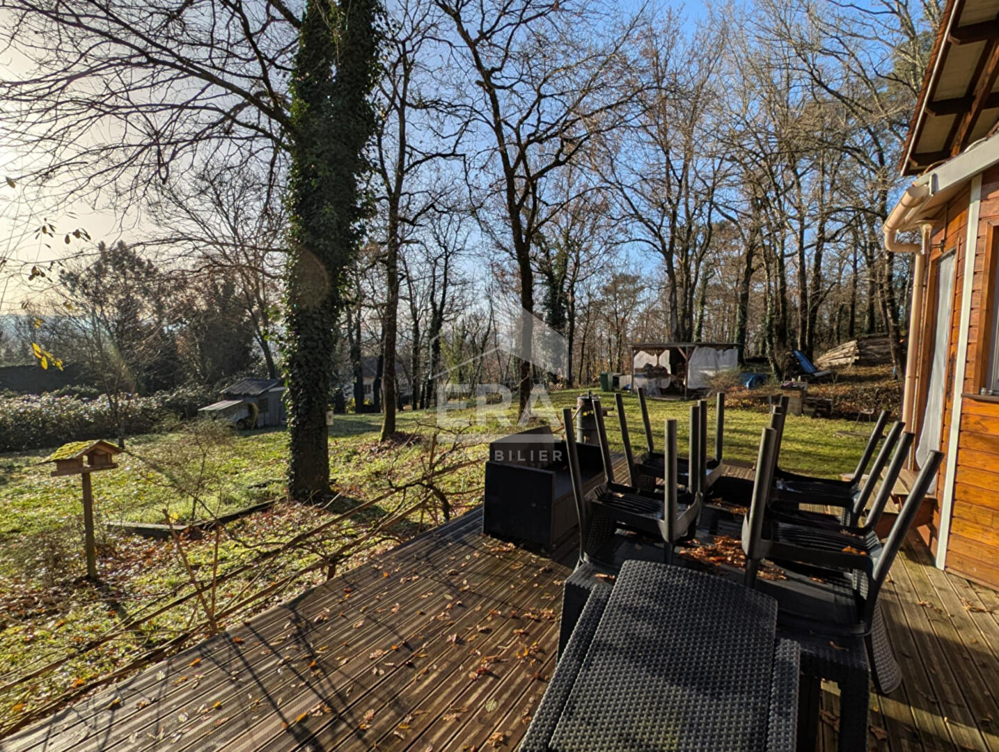 A découvrir vite ce bien atypique de 2010, cette maison en bois se compose d'un double salon-séjour lumineux de 63 m² avec cuisine ouverte aménagée et son poêle à bois en font une pièce chaleureuse. Au rez-de-chaussée une suite parentale avec dressing et salle de bains, WC indépendant, couloir, cellier. A l'étage: 3 chambres dont une avec balcon, une salle d'eau avec WC, mezzanine avec balcon. Double vitrage PVC avec volets roulants électriques et bois, fosse septique avec bac dégraisseur, climatisation réversible dans salon, vernis extérieur effectué en 2024. Cumulus récent électriques. Terrasse en bois de 45 m² . Le tout sur un terrain arboré de 2156 m². (4.89 % honoraires TTC à la charge de l'acquéreur.) Christophe DIEU (EI) Agent Commercial - Numéro RSAC : 878607902 - Perigueux.