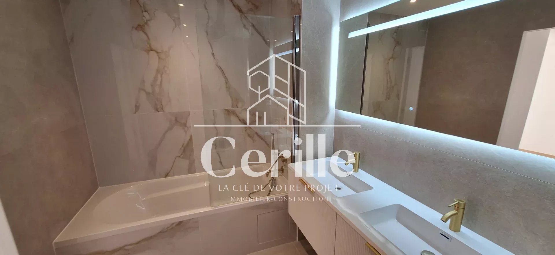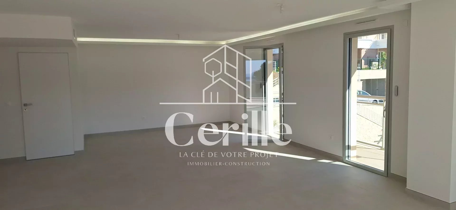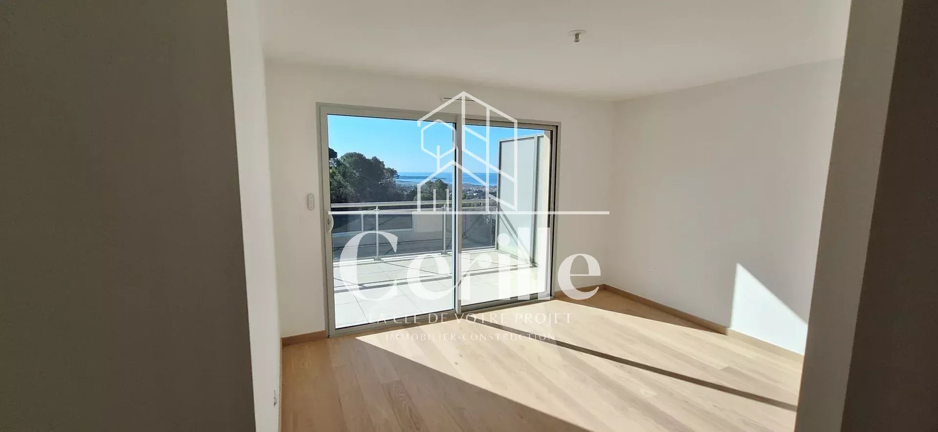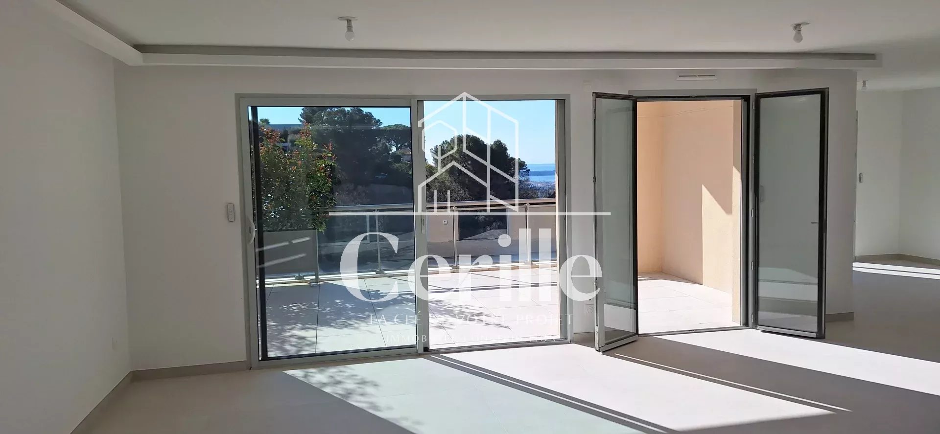 OPPORTUNITE CERILLE Dans un cadre exceptionnel, à seulement 15 min en voiture du centre ville et des plages, venez découvrir ce magnifique appartement 5 pièces de 157.50 m² avec une vue imprenable sur la méditerranée. Il est composé d'une très belle pièce de vie de 38 m² avec cuisine ouverte de 16 m², donnant sur un balcon de 25 m². Pour votre confort, vous disposez d'une suite parentale avec salle de bain et balcon. Ainsi que de trois chambres, d'une salle de bain et une salle d'eau, d'un wc séparé et d'une buanderie. Vous bénéficierez de prestations haut de gamme dans votre logement ainsi que dans le reste de la résidence avec une piscine, trois places de parking fermées et sécurisées, une cave. Prestige et bien-être sont les maîtres-mots de votre futur appartement. Frais de notaire réduits N'attendez plus Contactez nous chez CERILLE au 04 23 16 60 80 Consultez tous nos biens disponibles sur notre site internet www.cerille.fr ** photos non contractuelles**