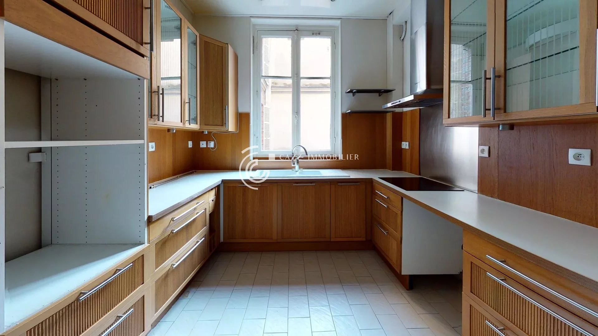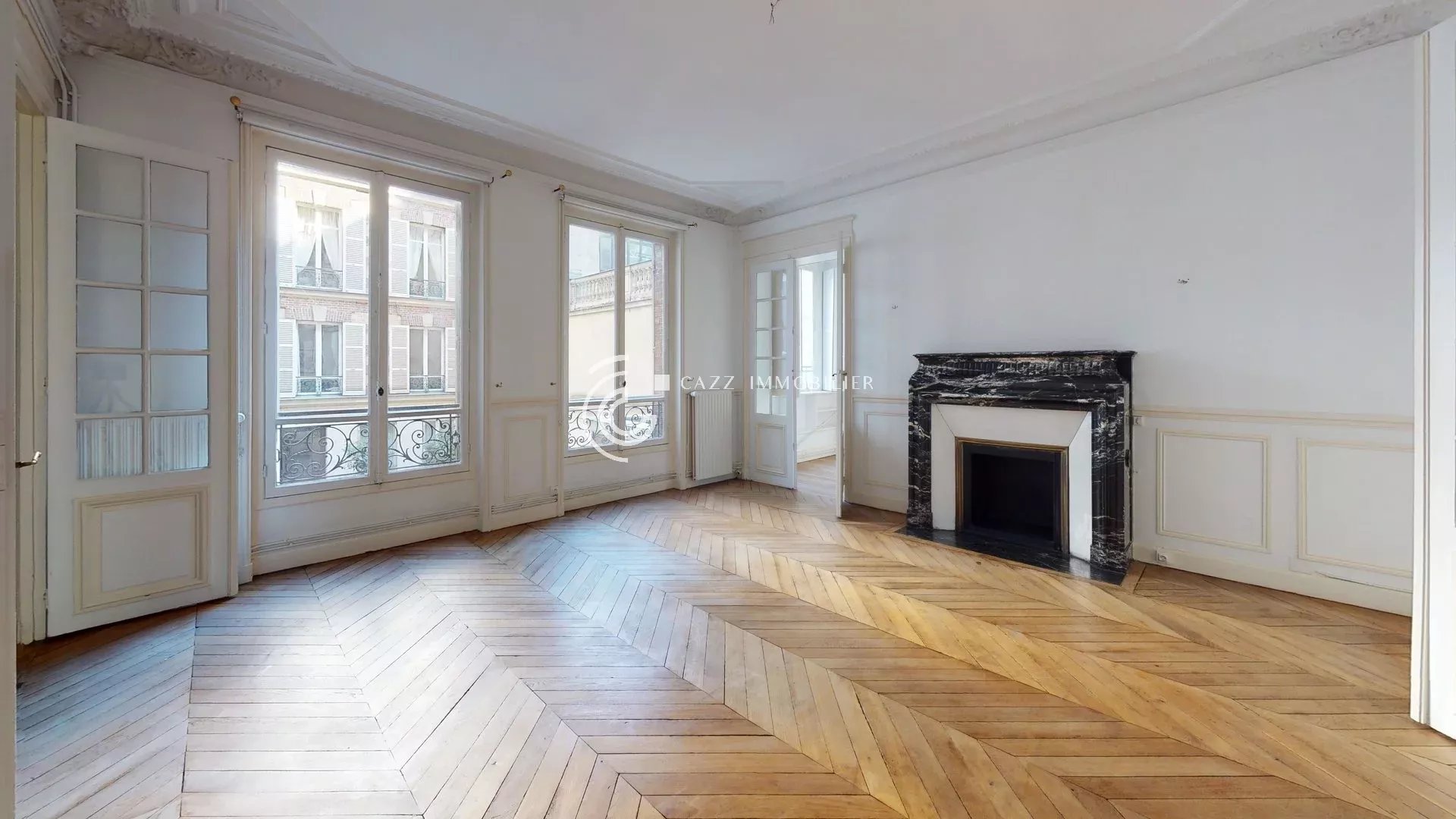 Plaine Monceau Superbe emplacement pour cet appartement de standing. Nous vous proposons un appartement familial de 6 pièces avec 4 ou 5 chambres possibles (cf plans réalisés par un architecte), un salon, une salle à manger et un bureau. Bien que situé au 1er étage exposé SUD EST , l'appartement est très lumineux. Le salon donne coté rue et les chambres coté cour. Cet appartement réunit tous les critères du standing parisien : Hauteur de plafond (3,12m), parquet en point de Hongrie, cheminées et moulures. A noter que les professions libérales sont acceptées dans l'immeuble. Confort supplémentaire, une cave est vendu avec.
