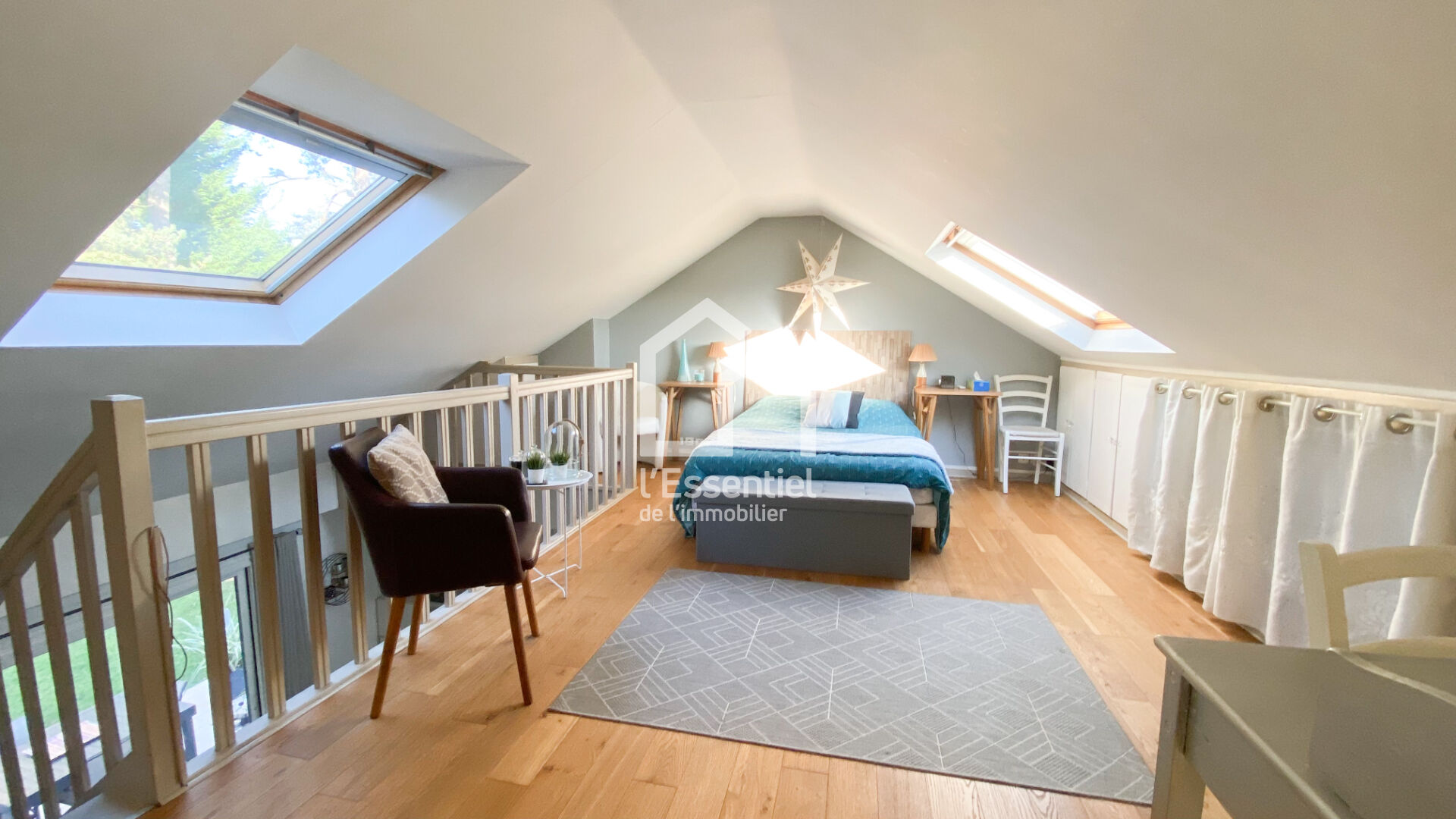 Charmante maison située dans un secteur arboré, calme et sans vis-à-vis, parfaite pour une vie de famille. Elle offre un bel espace de vie lumineux avec un séjour cathédrale agrémenté d'une cheminée, un salon-salle à manger convivial, ainsi qu'une cuisine entièrement équipée et fonctionnelle accompagnée d'une arrière-cuisine, d'une lingerie et d'un atelier. Au rez-de-chaussée, deux chambres, dont une suite parentale avec salle d'eau complétées par des WC séparés. L'étage propose une mezzanine accueillante, deux chambres, des rangements pratiques et une salle de bains avec WC. Les extérieurs sont soigneusement aménagés, avec une terrasse arrière, un carport, une cabane de jardin, et un jardin clos et arboré, parfait pour des moments de détente. Les prestations modernes, telles que le portail en aluminium, les fenêtres en PVC double vitrage, les volets roulants électriques et la fibre optique, ajoutent au confort et à la praticité. Cette maison bénéficie d'une localisation idéale, à quelques pas de la forêt pour des balades ressourçantes, ainsi que des écoles et de la gare des Clairières ( futur RER E ). Un véritable cocon familial, prêt à vous accueillir.