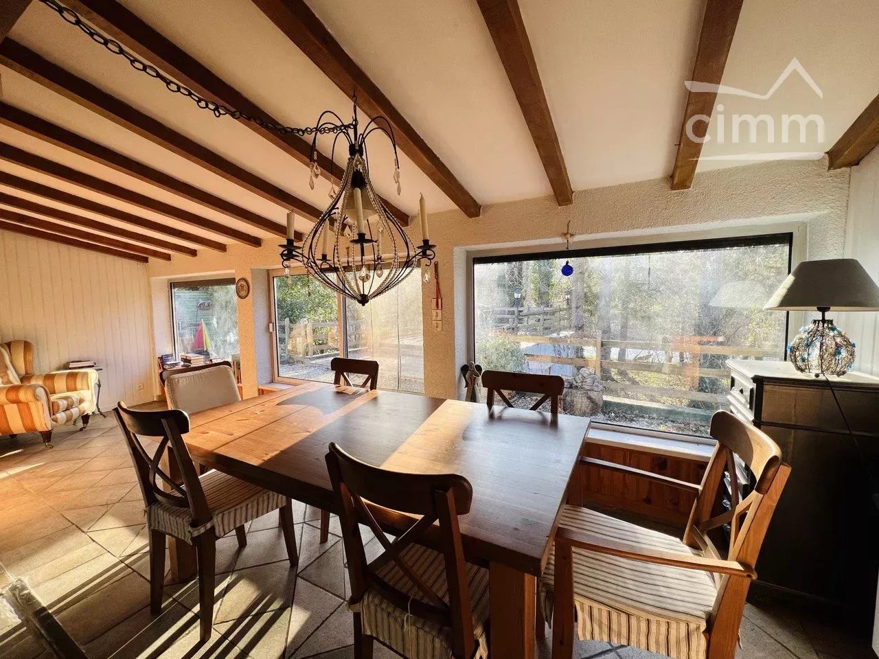 VENDU Notre agence vous propose cette charmante maison de configuration plain pied 4 faces en bord de rivière. Cette maison possède un terrain de 1500m2 arboré avec un accès privatif à l'Aude et une belle exposition sud est. La maison fait 72m2 et en sus vous avez un studio indépendant de 14 m2 ainsi qu'un chalet bois de 20m2 servant actuellement de local de stockage ( pouvant facilement être transformé en chambre supplémentaire). La maison s'ouvre sur une cuisine toute équipée ouverte sur le séjour- salle à manger baigné de lumière de par ses grandes baies vitrées. Elle dispose de 2 chambres dont une équipée d'un très grand placard de rangement. La salle de bain est toute neuve avec douche à l'italienne et toilette. Le séjour donne sur une grande terrasse en bois avec un espace pour manger et un coin spa extérieur. En sus il y a un barbecue. En rez de jardin , un studio indépendant et lumineux de 14 m2 avec une salle de bain attenante et moderne s'ouvre directement sur le jardin et la rivière à 20m. Mode de chauffage: électrique et insert bois DPE: D Foncier: 539€/an Travaux effectués: toiture refaite en 2011 , salle de bain et chauffe eau électrique neuf Travaux à prévoir: double vitrage et fosse sceptique ( elle à été contrôlée et est fonctionnelle mais trop ancienne selon les nouvelles normes). Muret jardin et véranda à consolider. Parking gravillonné pour plusieurs véhicules y compris un camping car. Emplacement idéal au calme et en nature, tout étant à 5 minutes de tous commerces et services ( supermarché, école, pharmacie, médecin..) Le mot de notre agence: un bien rare Honoraires à la charge du vendeur - RCS 40834475202440 - Caisse de garantie QBE 500000 EUR L'immobilier vous intéresse, contactez-moi