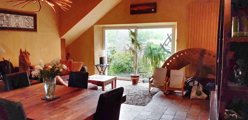 A VENDRE 890 000EUR FAI ÉCURIES : 35 BOXES, 17 ha et 193 m2 d'HABITATION SYLVAINS-LES-MOULINS (EURE) I.- INSTALLATIONS ÉQUESTRES o35 boxes avec douche, sellerie, WC et stockage foin oRond de longe de 18 m oManège Bomaco éclairé oSurface foncière de 17 hectares de prés clôturés oCarrières de sable oAncien moulin restauré avec sa roue à aube : II.- HABITATIONS oRDC : bureau, salon, cuisine équipée, chambre avec salle de bain et WC oA l'étage : 4 chambres, 2 salles d'eau et WC oDeux-pièces de 33 m 2 : séjour, chambre, salle d'eau avec WC oGarage double III. CONDITIONS FINANCIÈRES oPrix : 890 000 EUR FAI oTaxe foncière : à venir oCommission d'agence incluse : 45 000 EUR TTC