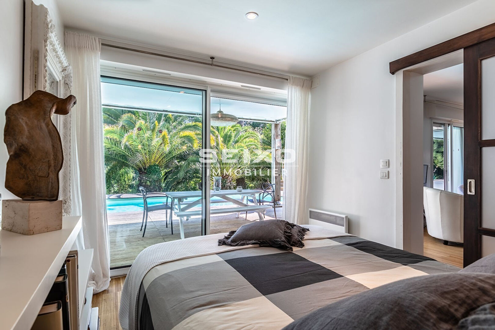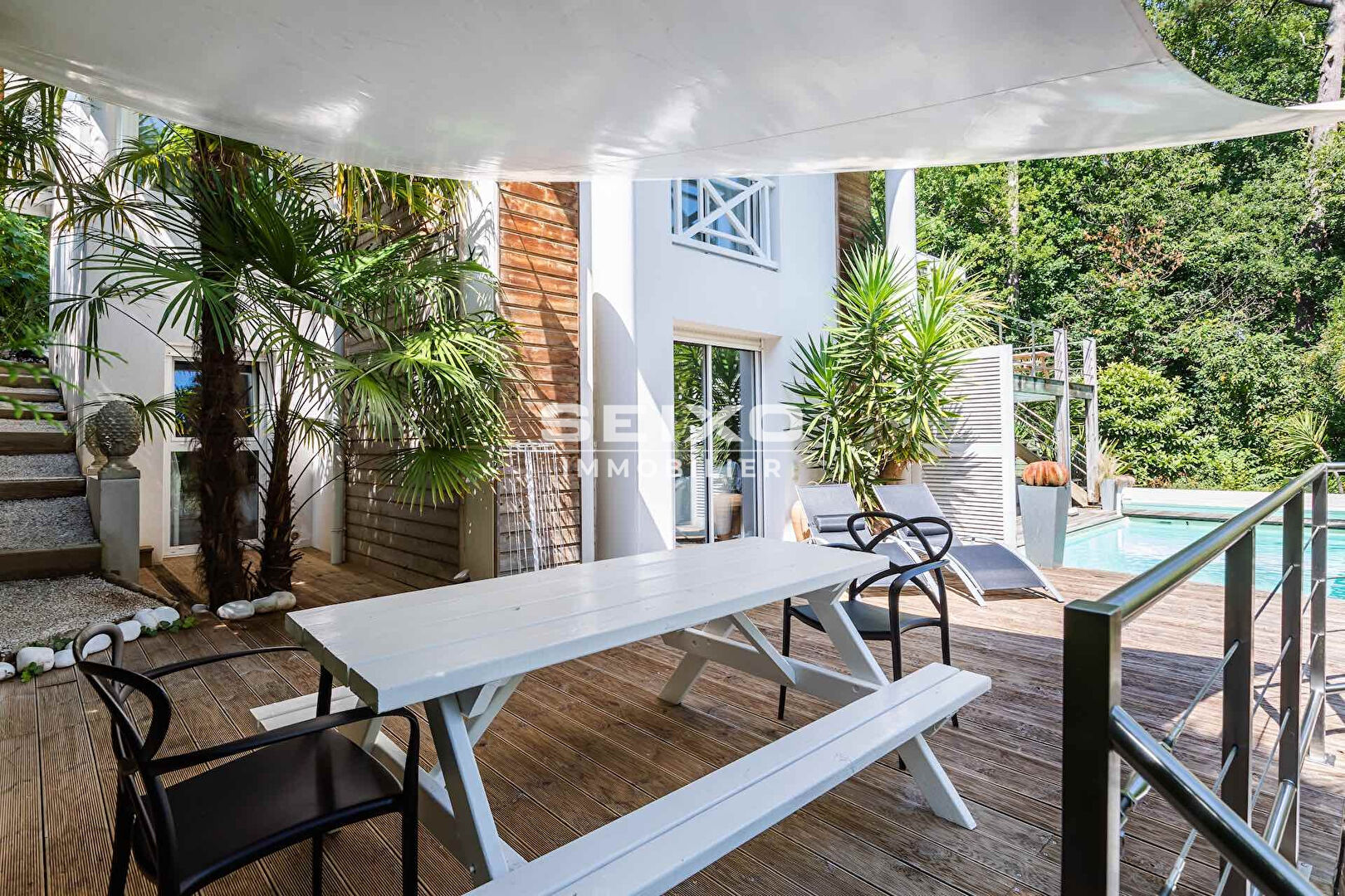 En exclusivité à Anglet - Au sein d'un environnement calme et paysagé - Profitez de la vue dégagée sur la canopée et sur l'étang de Brindos - Les plages et le golf de Biarritz sont juste à 10 minutes. L'agence Seixo immobilier vous présente cette ravissante villa contemporaine vendue avec trois appartements indépendants pour un total de 239m² habitable et un terrain clos et paysagé de 1000m². La villa comprend une entrée avec penderie, un salon spacieux (avec cheminée) donnant sur une terrasse plein Sud qui surplombe la piscine en contrebas, une cuisine américaine entièrement aménagée et équipée, deux suites parentales avec dressing et salle de bain, WC avec lave main. Les appartements T2 sont loués meublés pendant la période estivale. Pour finir un grand garage pour rentrer trois voitures. Les plus: Excellent rapport locatif - La possibilité de recevoir de la famille ou des amis avec un accès indépendant aux appartements. L'accès à l'autoroute, l'aéroport et la gare sont à proximité immédiate. Rare sur le secteur. A saisir! Réf: 0067